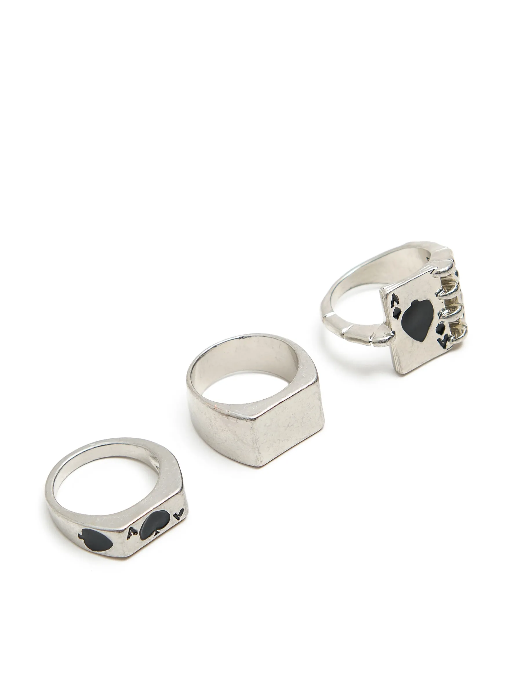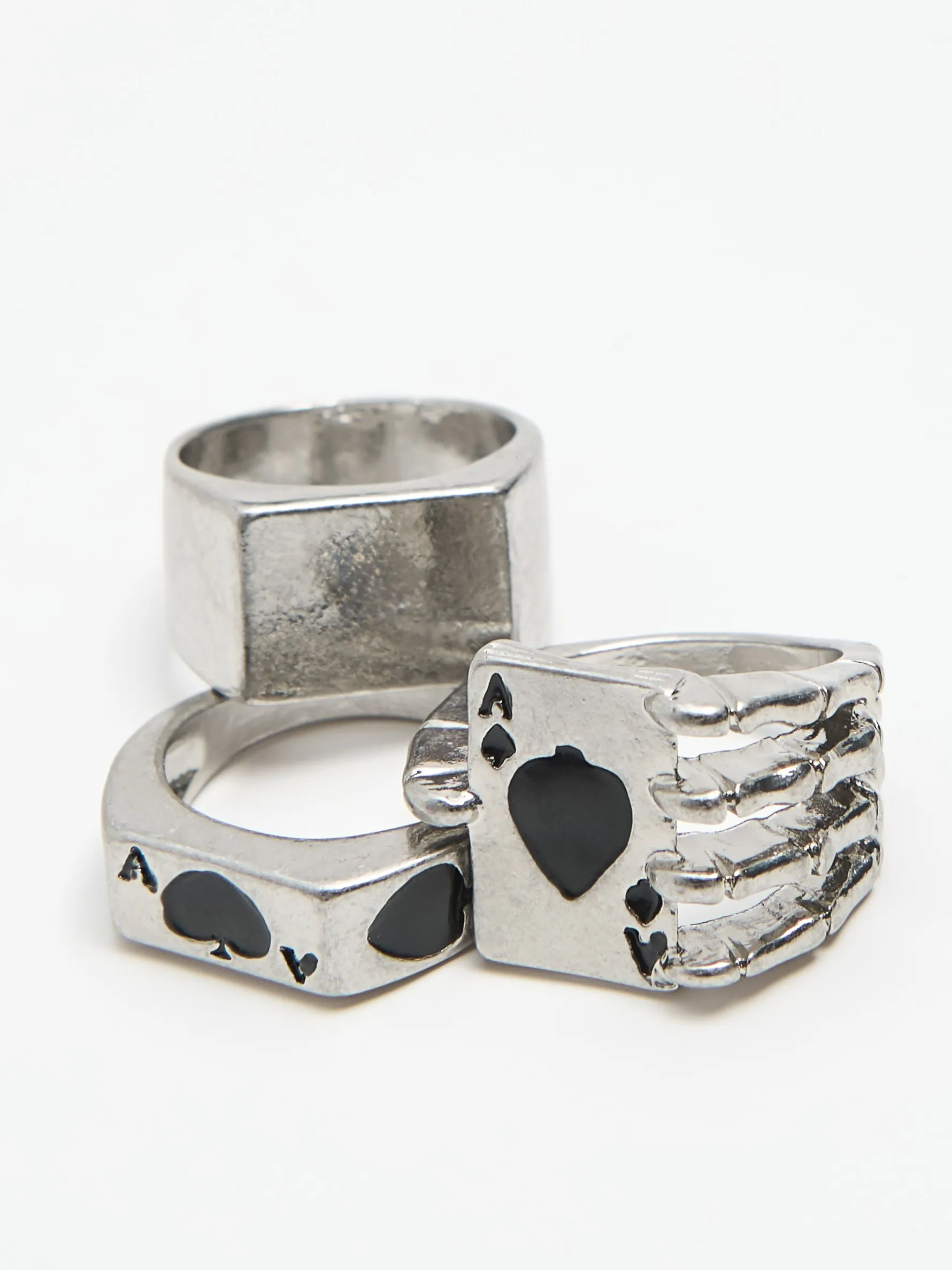 Zestaw 3 pierścionków w kolorze srebrnym, w tym jeden gładki i dwa z motywem karcianym.