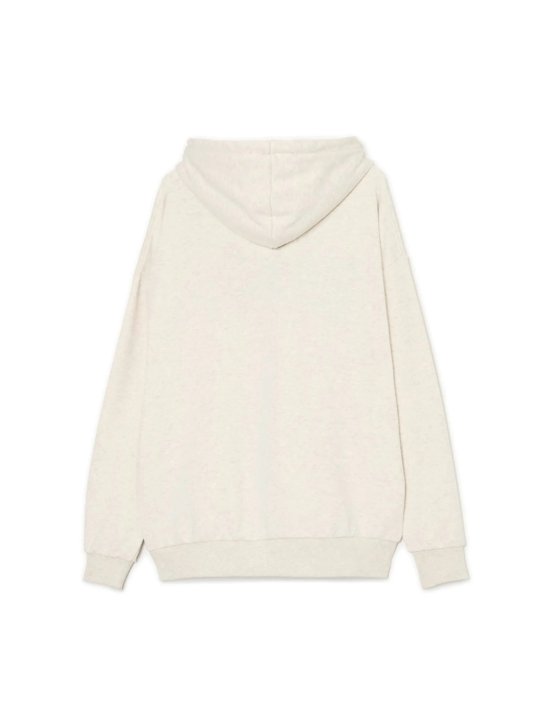 Jasna męska bluza z kapturem, uszyta z dzianiny zawierającej bawełnę. Komfortowy fason nie krępuje ruchów, a naszywki na przodzie z miękkiego pluszu dodają unikatowego looku. uszyta z miękkiej dzianiny z bawełną luźny fason z obniżoną linią ramion szeroki kaptur z regulacją obwodu kieszeń kangurka na przodzie dół i rękawy wykończone prążkowanym ściągaczem aplikacja z przodu