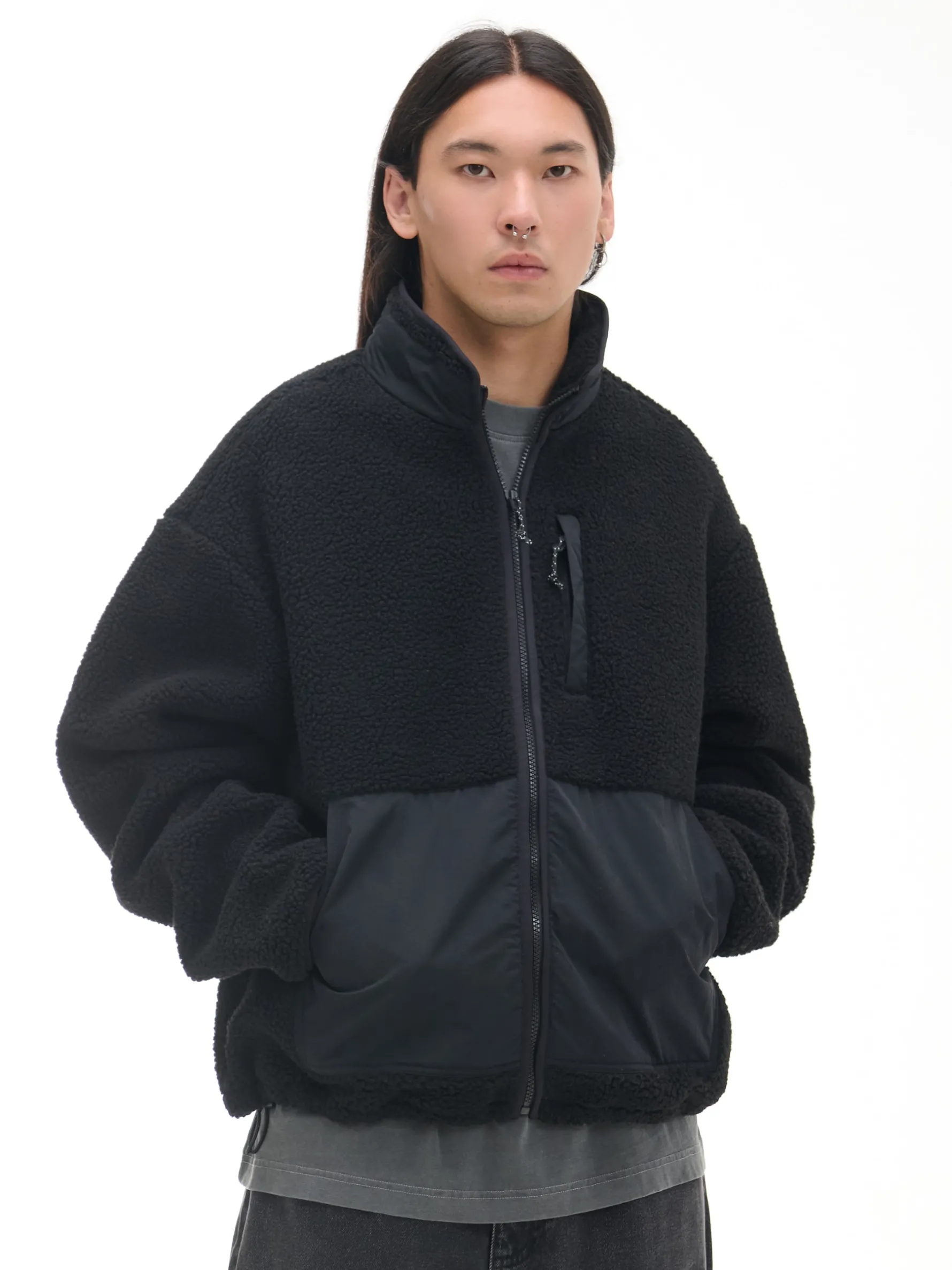 Męska bluza polarowa wykonana z przyjemnej w dotyku dzianiny typu sherpa. Wyposażona w praktyczne kieszenie okryte trwałą tkaniną. Ściągacze na dole ze stoperami dopasują model do Twojej sylwetki i ochronią Cię przed wiatrem. bluza typu sherpa o regularnym kroju miękka polarowa poszewka zapinana na zamek na całej długości wysoka stójka długie rękawy zakończone gumką otwarte kieszenie po bokach dodatkowa kieszeń zewnętrzna z zapięciem na zamek na dole ściągacz ze stoperem