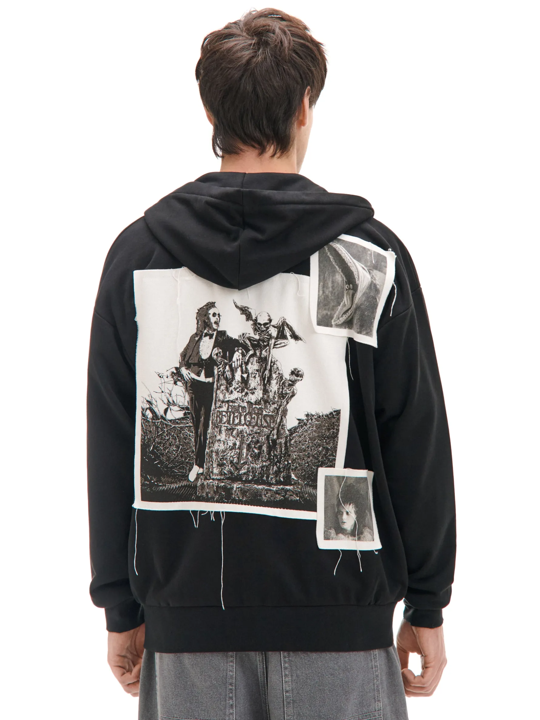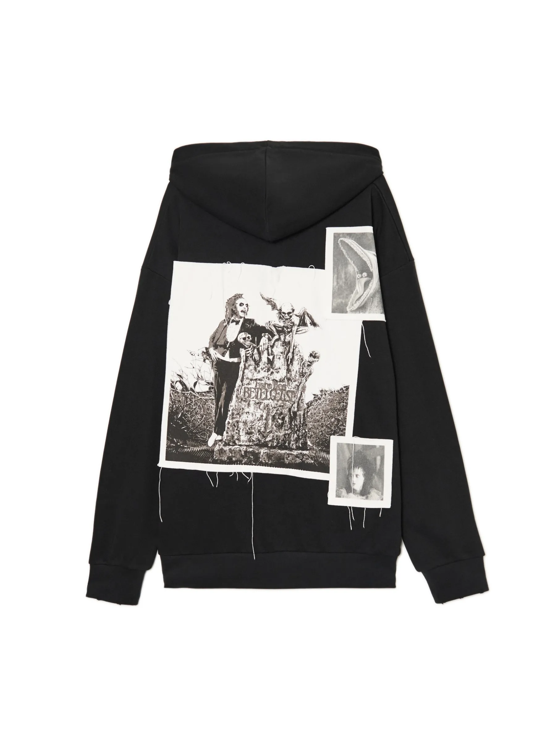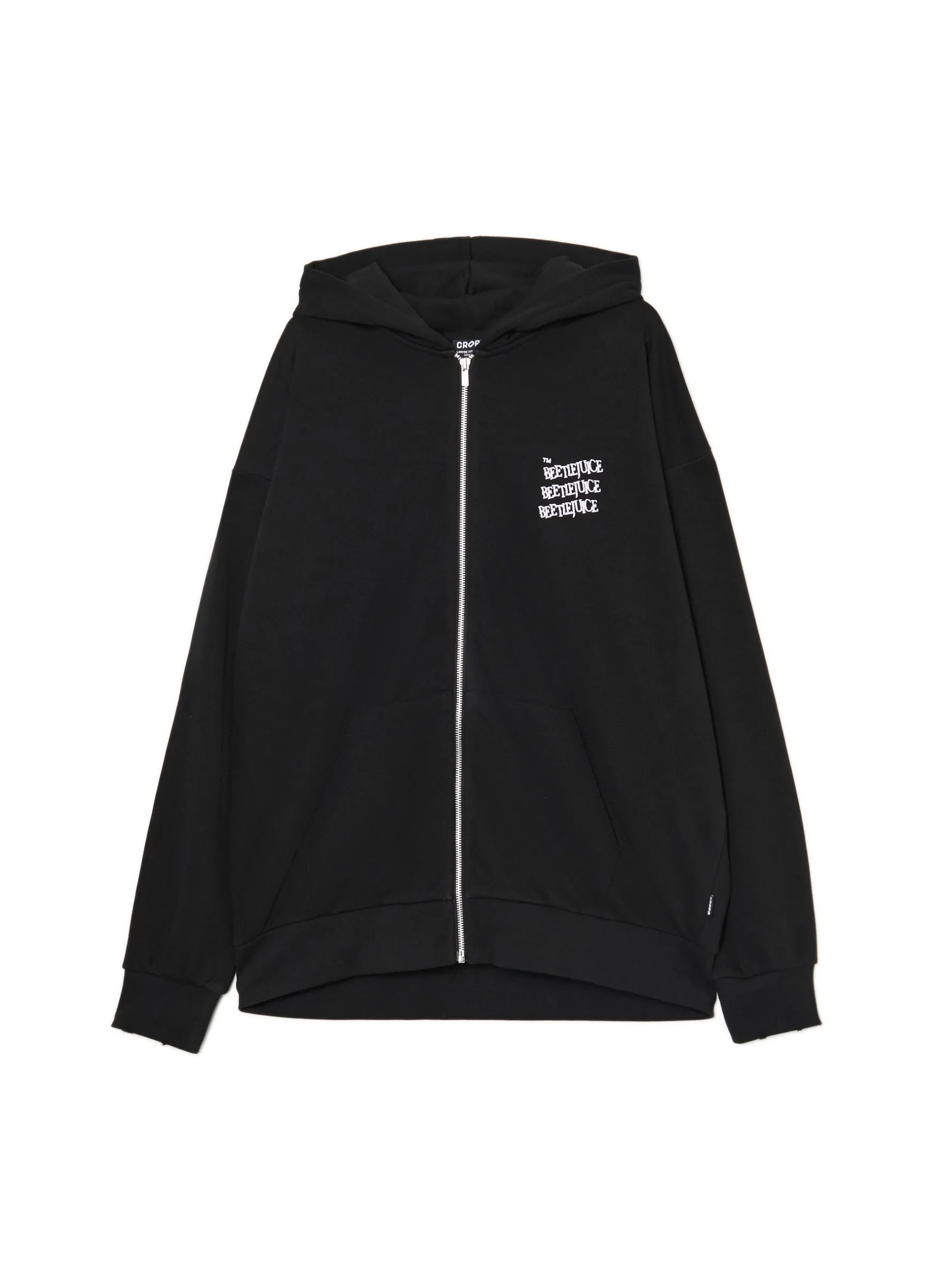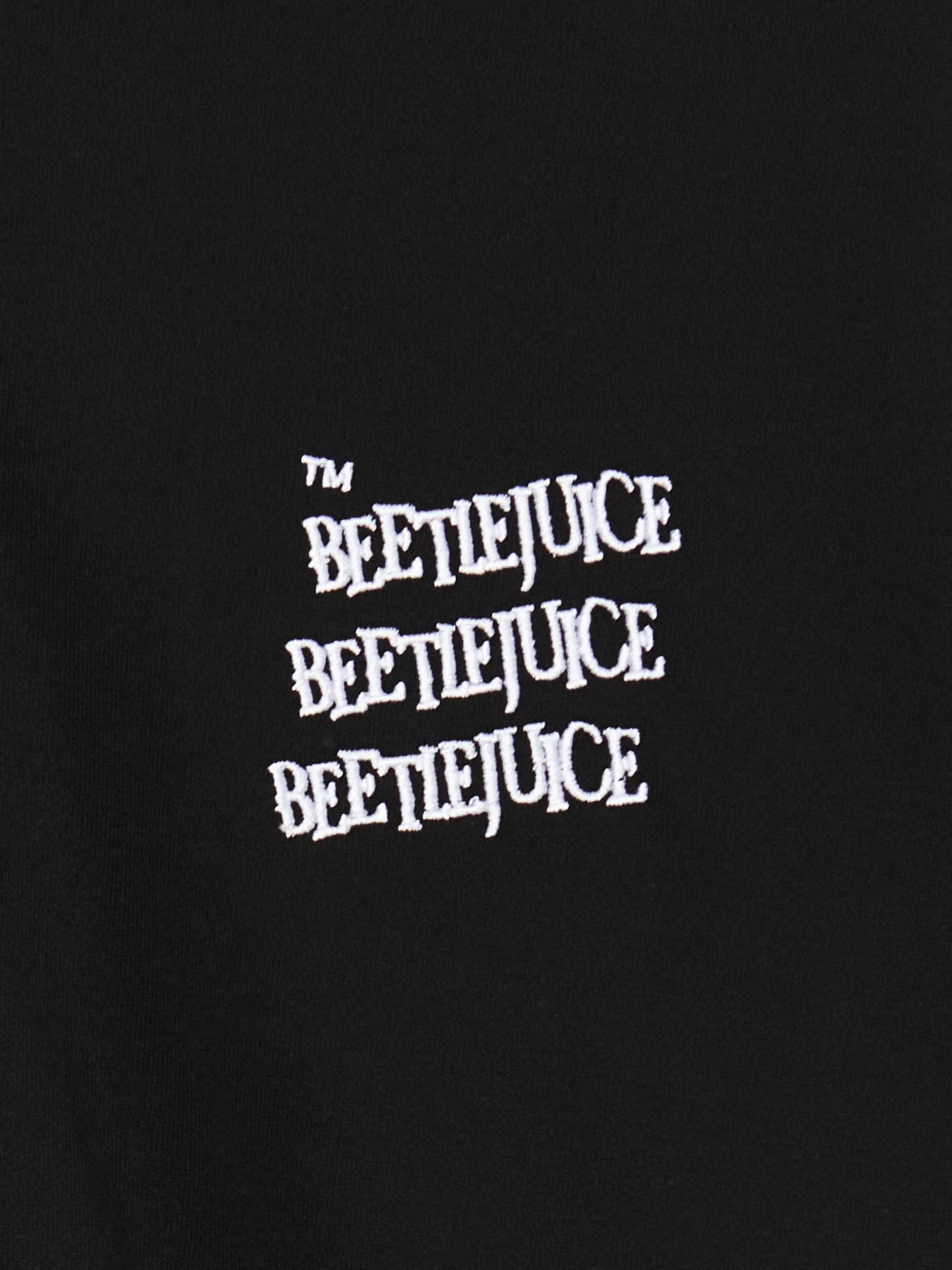 Rozpinana męska bluza typu hoodie w kolorze czarnym. Na przodzie nadruk tekstowy z imieniem głównego bohatera kinowego hitu – Beetlejuice. Na plecach zdjęcia z filmowym motywem i cała prawda o jego pochodzeniu. dzianinowy materiał z bawełną dodatek miękkiej i trwałej bawełny french terry swobodny, luźny krój zapięcie na metalowy zamek miękki kaptur długie rękawy z obniżoną linią ramion dwie kieszenie po bokach nadruk z motywem Halloween BEETLEJUICE BEETLEJUICE and all related characters and elements © & TM WBEI. (s24)