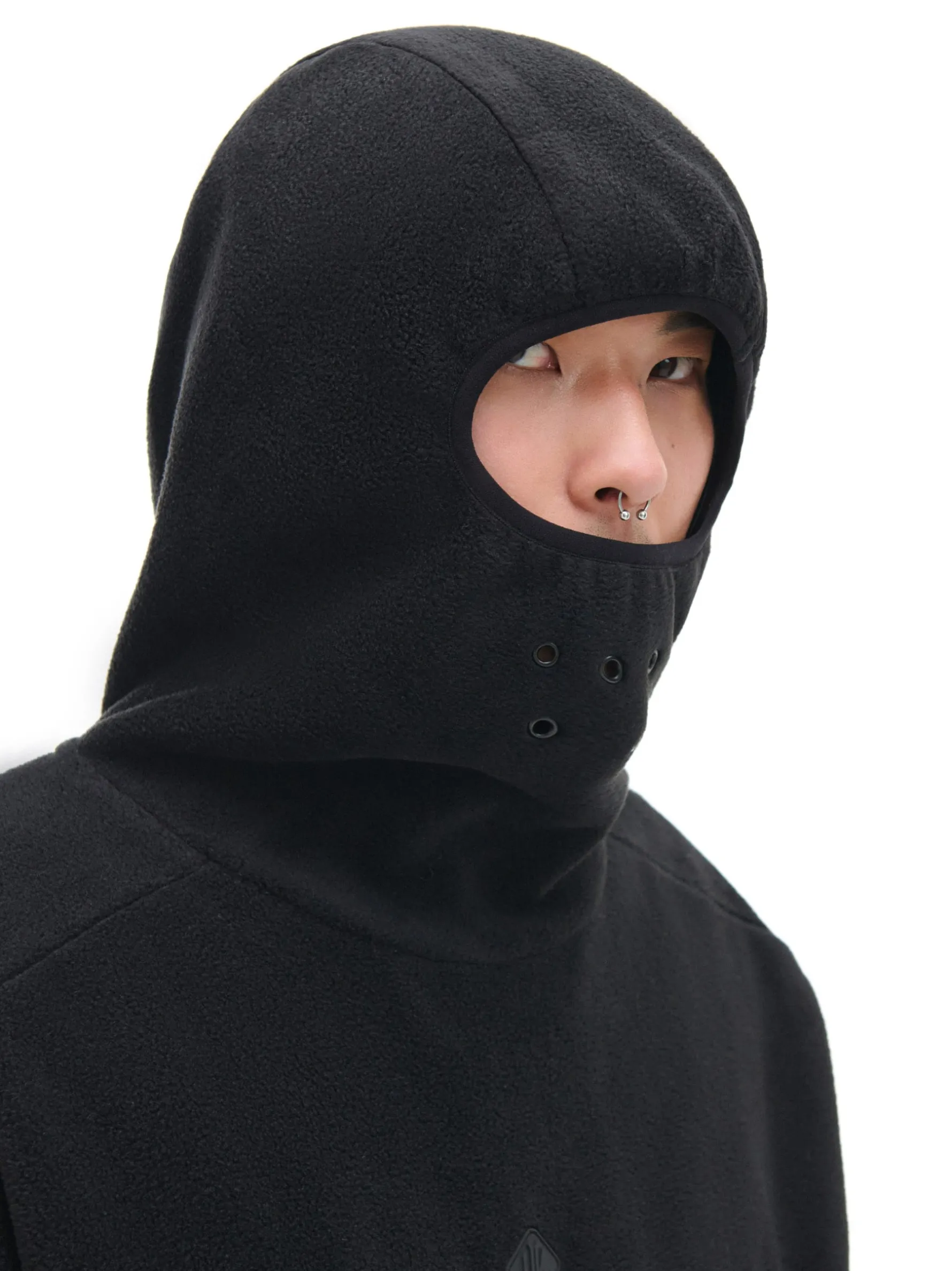 Bluza i czapka w jednym? Czemu nie! Przedstawiamy praktyczną i wygodną hoodie uszytą z przyjemnego w dotyku polaru. Posiada otulający głowę kaptur z otworem na oczy. Item gotowy do zadań specjalnych! uszyta z polarowej dzianiny swobodny, luźny krój miękki kaptur z otworem na oczy przelotki usprawniające przepływ powietrza długie rękawy zakończone gumką obniżona linia ramion kieszenie boczne z zamkami dół wykończony elastyczną gumą naszywka Cropp