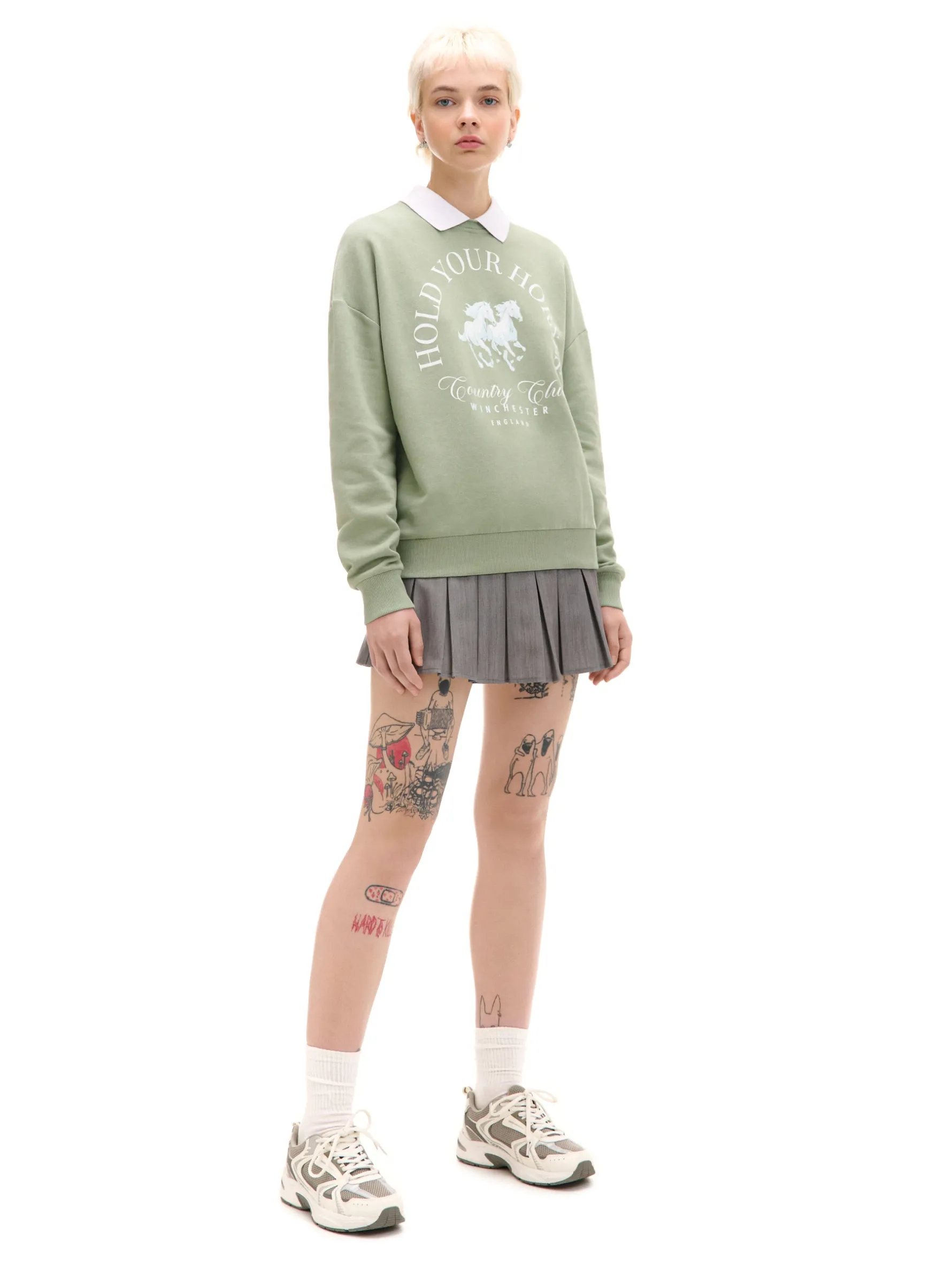 Damska bluza uszyta z mieszanki dzianin zawierającej miękką bawełnę french terry. Idealny casual na wyjątkowe okazje z kołnierzykiem i nadrukiem w angielskim stylu. dzianinowy materiał z bawełną swobodny, luźny krój klasyczny kołnierzyk długie, proste rękawy obniżona linia ramion dół i rękawy wykończone prążkowanym ściągaczem z przodu nadruki tekstowe i fotoprinty