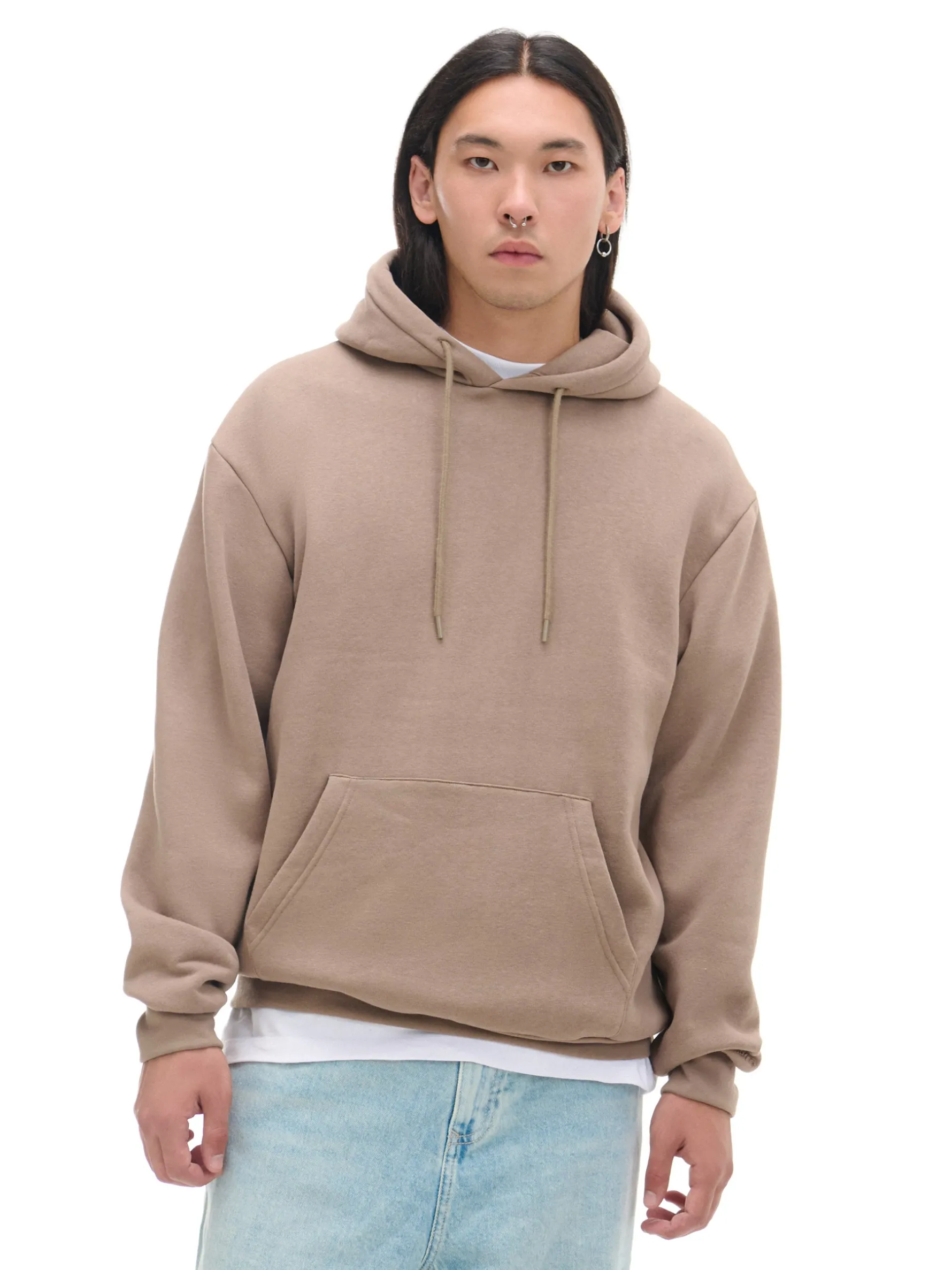 Gładka męska bluza z kapturem o regularnym kroju, uszyta z mieszanki dzianin o wysokiej zawartości bawełny. Casual, który warto mieć pod ręką! uszyta z gładkiej, bawełnianej dzianiny regularny krój miękki kaptur z troczkami swobodne rękawy z obniżoną linią ramion dół i rękawy wykończone ściągaczem z przodu duża kieszeń typu kangurka