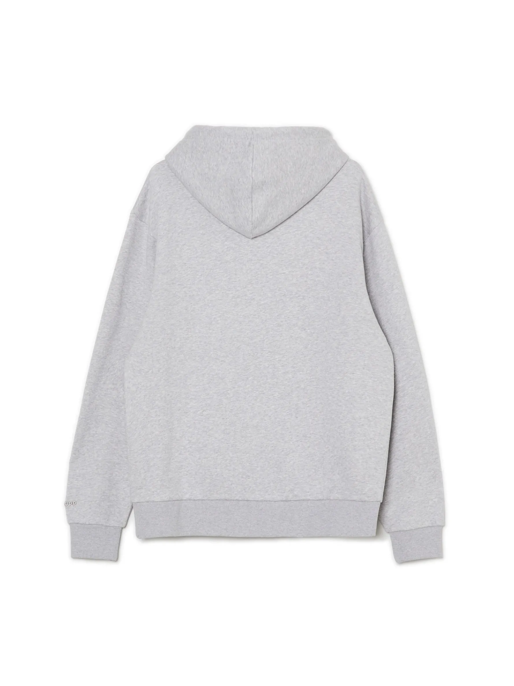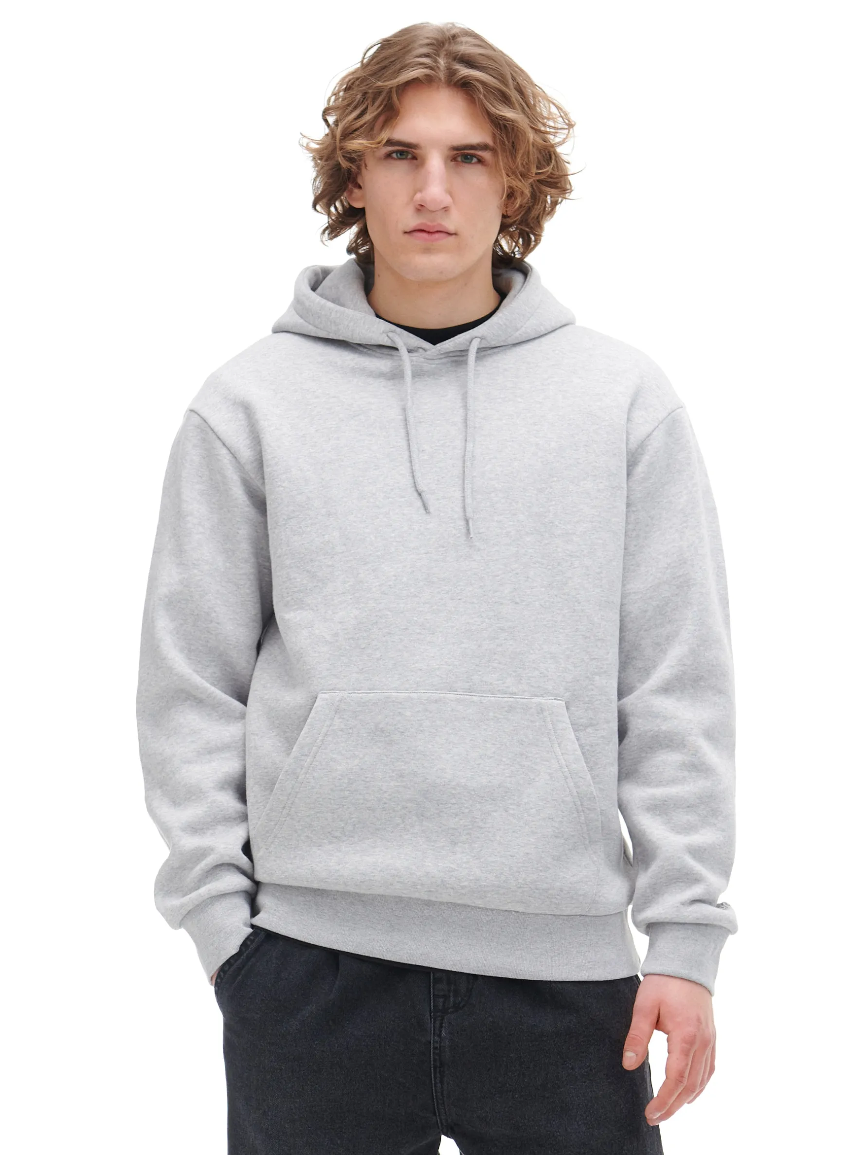 Szara bluza z kapturem w stylu basic, uszyta z dzianiny o wysokiej zawartości bawełny. regularny krój kaptur regulowany sznurkiem rękawy i dół zakończoe ściągaczem kieszeń kangurka