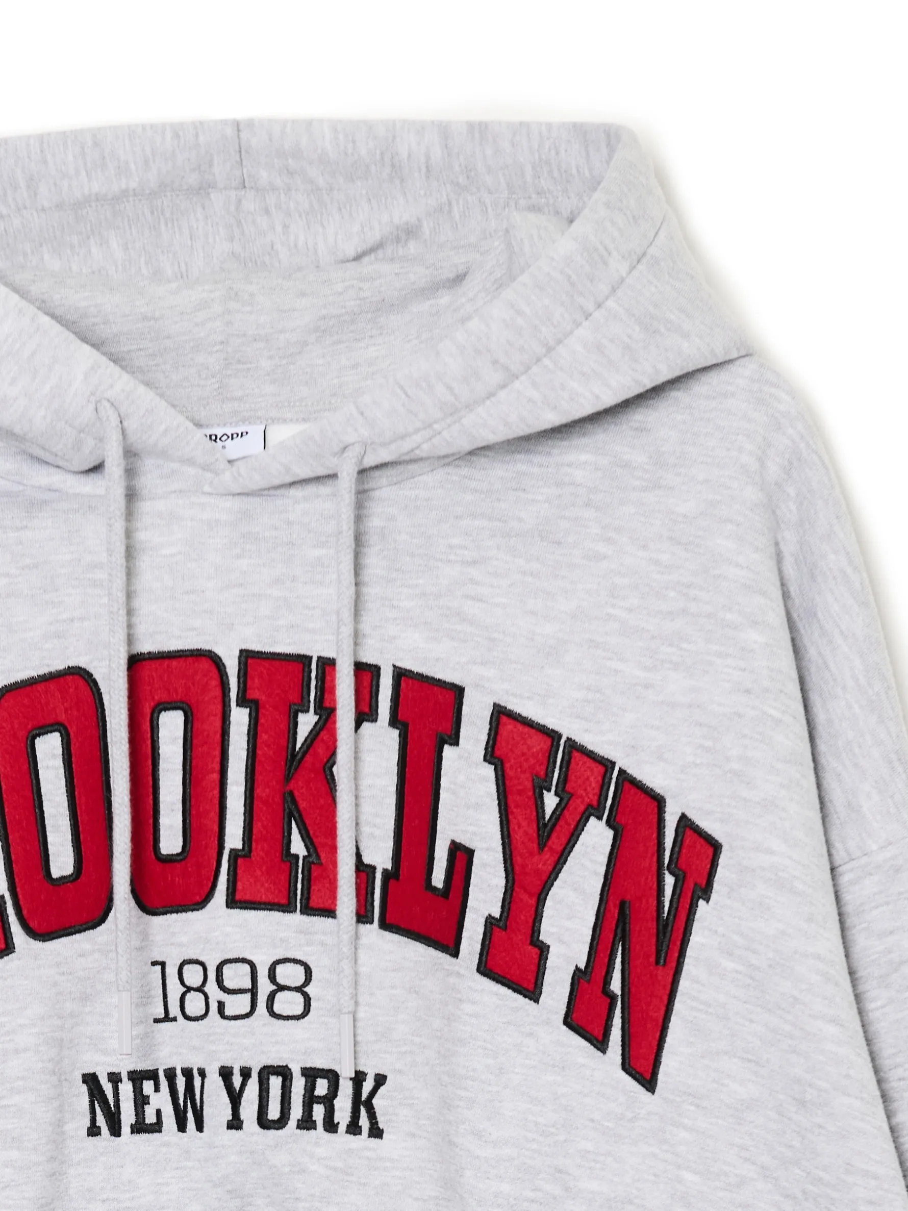 Szara damska bluza z kapturem, uszyta z miękkiego i trwałego materiału z dodatkiem bawełny fleecy. Wygodny, krótszy krój i wyraziste napisy na przodzie to wyróżniki tego modelu. dzianinowy materiał z bawełną krótki krój miękki kaptur z troczkami dół i rękawy wykończone ściągaczem z przodu nadruki tekstowe Tworzy zestaw z modelem 609AR-09M .
