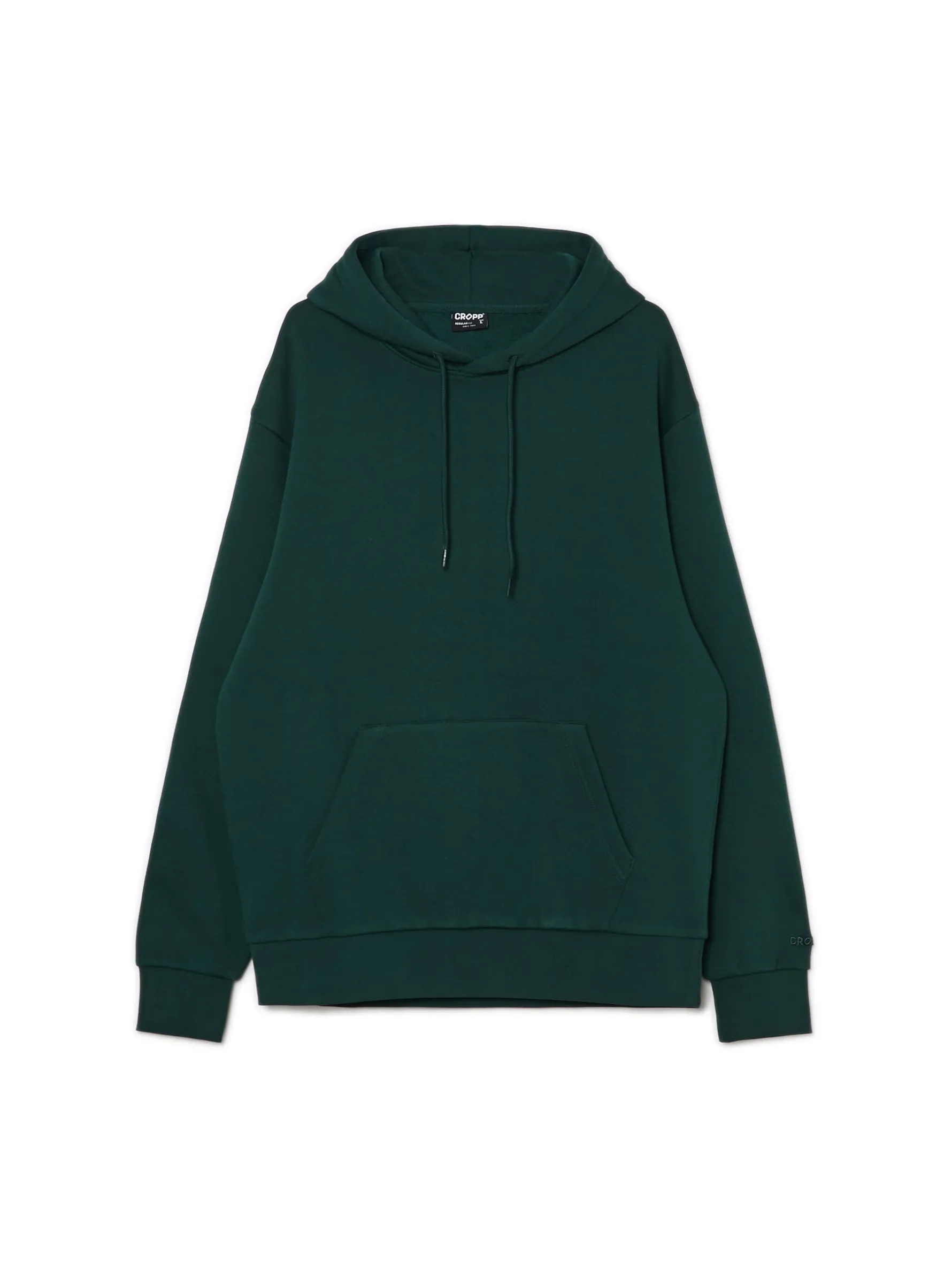 Zielona bluza z kapturem w stylu basic, uszyta z dzianiny o wysokiej zawartości bawełny. regularny krój kaptur regulowany sznurkiem rękawy i dół zakończoe ściągaczem kieszeń kangurka