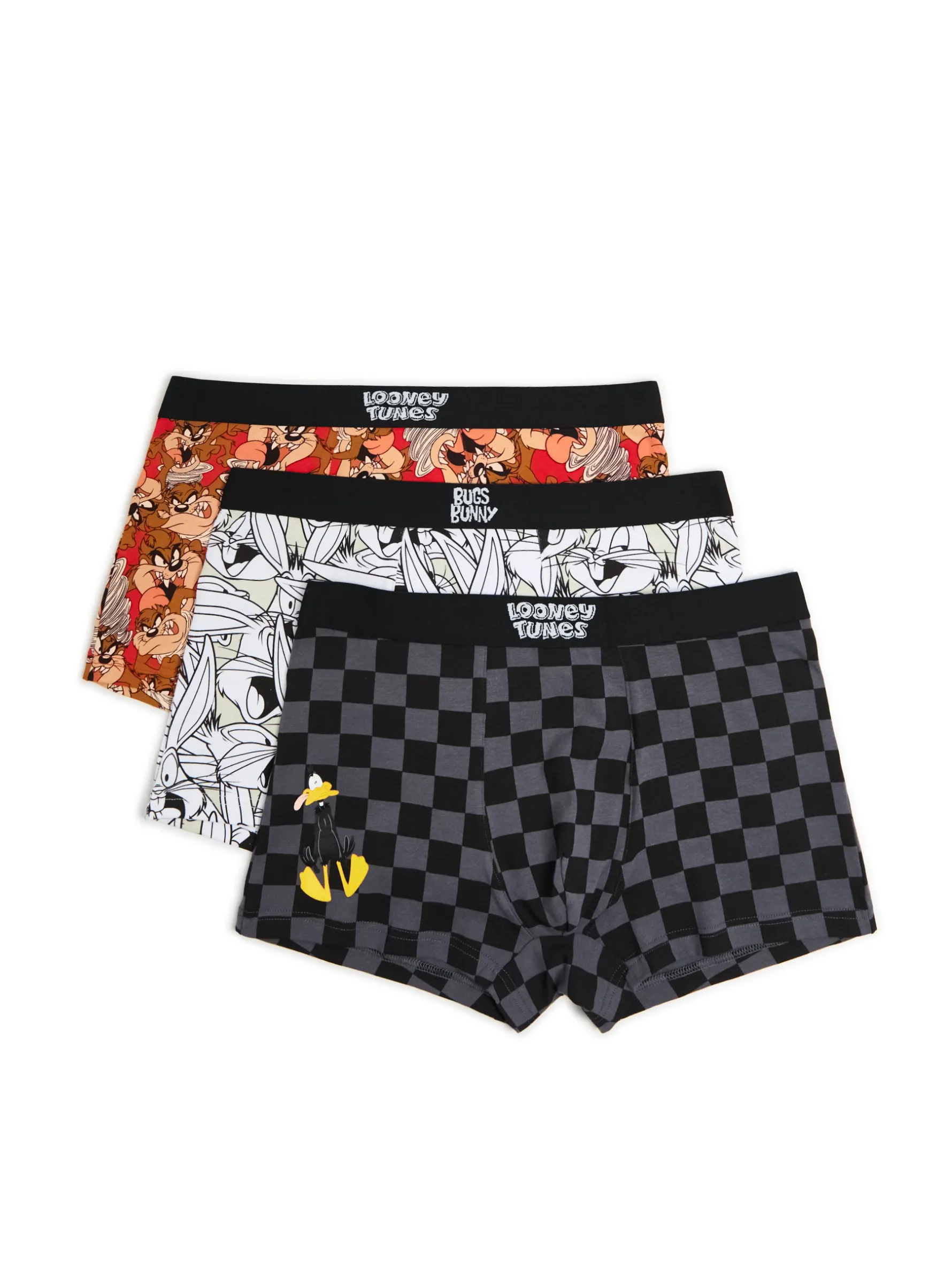 Zestaw 3 par męskich majtek typu bokserki, uszytych z mieszanki dzianin. Na całej powierzchni nadruki z postaciami z serii Looney Tunes. bawełna z dodatkiem elastycznych włókien regularny stan elastyczna gumka w pasie nadruk all over z bohaterami kreskówek Looney Tunes LOONEY TUNES and all related characters and elements © & ™ WBEI. (s24)