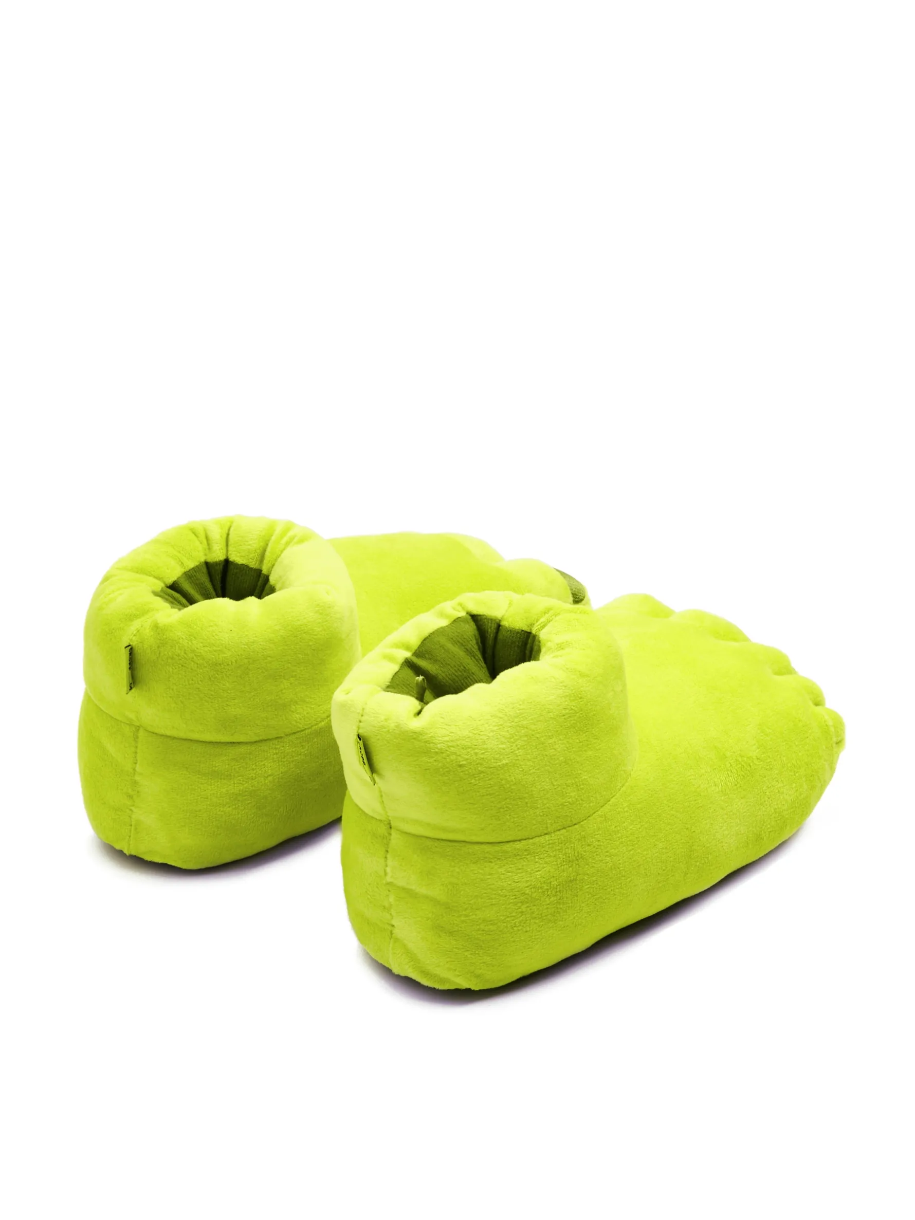 Cebula ma warstwy, ogry mają warstwy – męskie domowe kapcie w kształcie stóp Shreka warstw nie mają. Możesz uratować w nich księżniczkę z samotnej wieży, strzeżoną przez ziejącą ogniem Smoczycę, albo chillować przed telewizorem na swoim bagnie. uszyte z miękkiego materiału płaska podeszwa z napisem „What the Shrek?” miękka cholewka za kostkę Dobierz do nich piżamę onesie z tym samym motywem: 692CH-88X . Dreamworks Shrek © DreamWorks Animation LLC. All Rights Reserved.