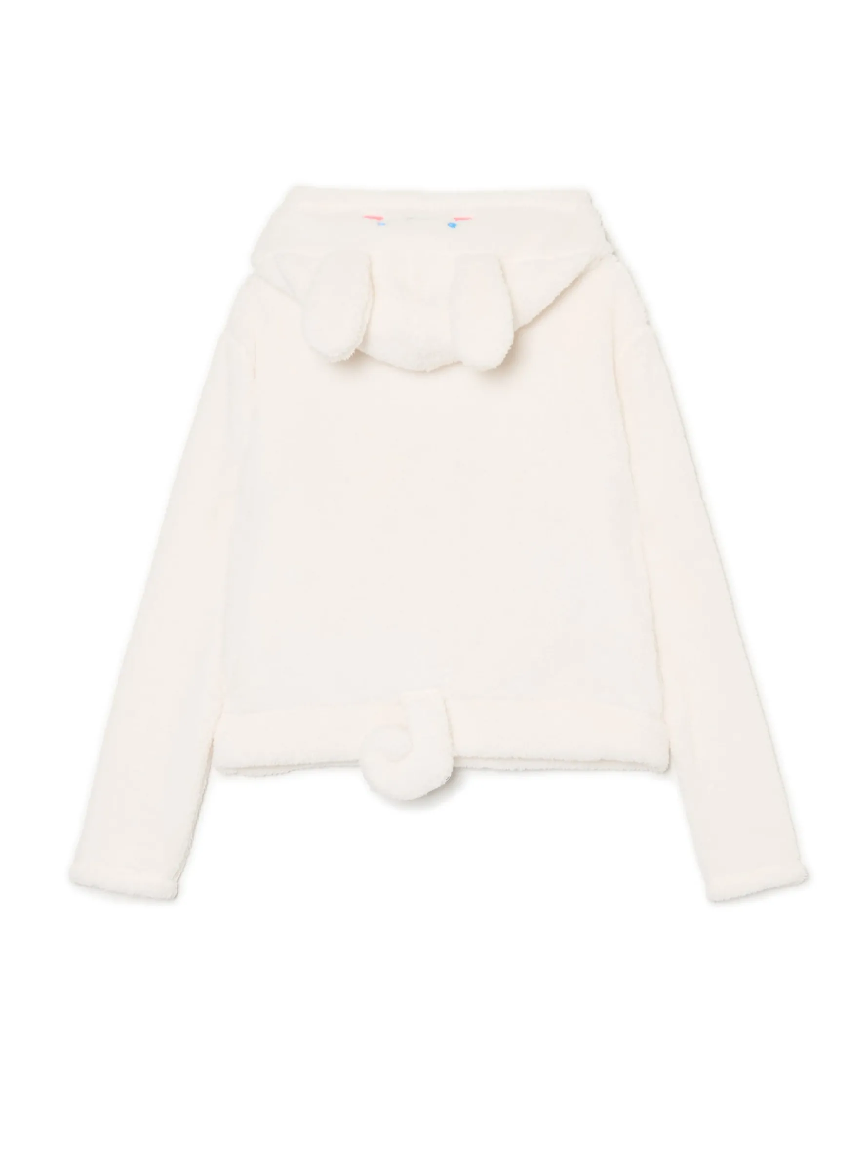 Cozy damska piżama uszyta ze sztucznego baranka. Zestaw zawiera krótkie spodenki i bluzę hoodie z kieszenią typu kangurka na wieczorne snacki. Ozdobą jest uroczy ogonek i kolorowy napis z imieniem bohatera serii Sanrio – Cinnamorollem. wykończenie na podszyciu ze sztucznego baranka swobodny, luźny krój kaptur z uszami długie rękawy duża kieszeń typu kangurka z przodu dekoracyjny ogon szorty z naszywką na tyle elastyczna guma w pasie Tworzy zestaw z modelem: 222AU-00X . © 2024 SANRIO CO., LTD.
