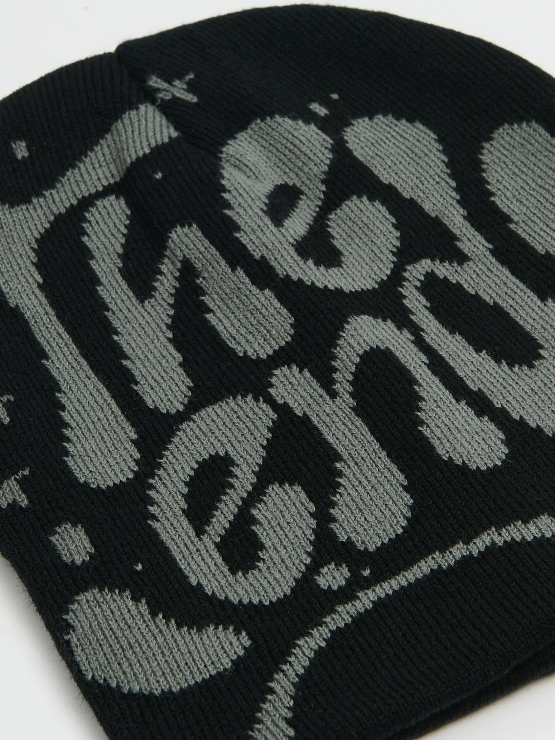 Basicowa męska czapka typu beanie, uszyta z przyjemnej w dotyku mieszanki dzianin o wysokiej zawartości bawełny i domieszką elastycznych włókien. Na całości duży, kontrastowy napis „The End” na spontaniczne wypady, nie tylko do kina. dzianinowy materiał z bawełną prosty krój nadruk all over
