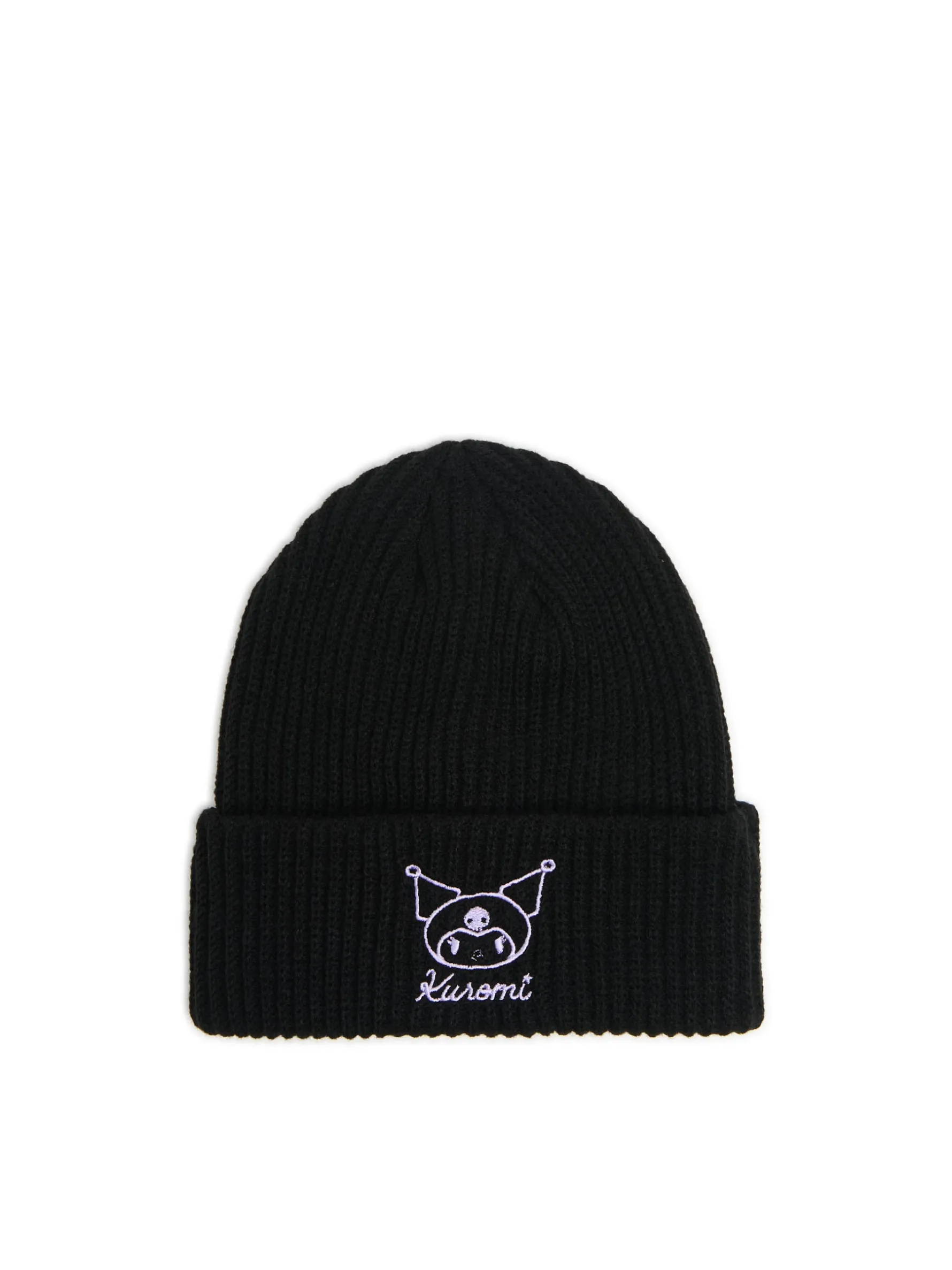 Idealny dodatek zimowych stylizacji – dzianinowa czapka z ilicencjonowaną naszywką Kuromi na przodzie. Bierz póki ciepła! elastyczna, prążkowana dzianina prosty krój na środku dekoracyjny haft z motywem Kuromi Tworzy zestaw z modelem: 539AU-99X . © 2024 SANRIO CO., LTD.