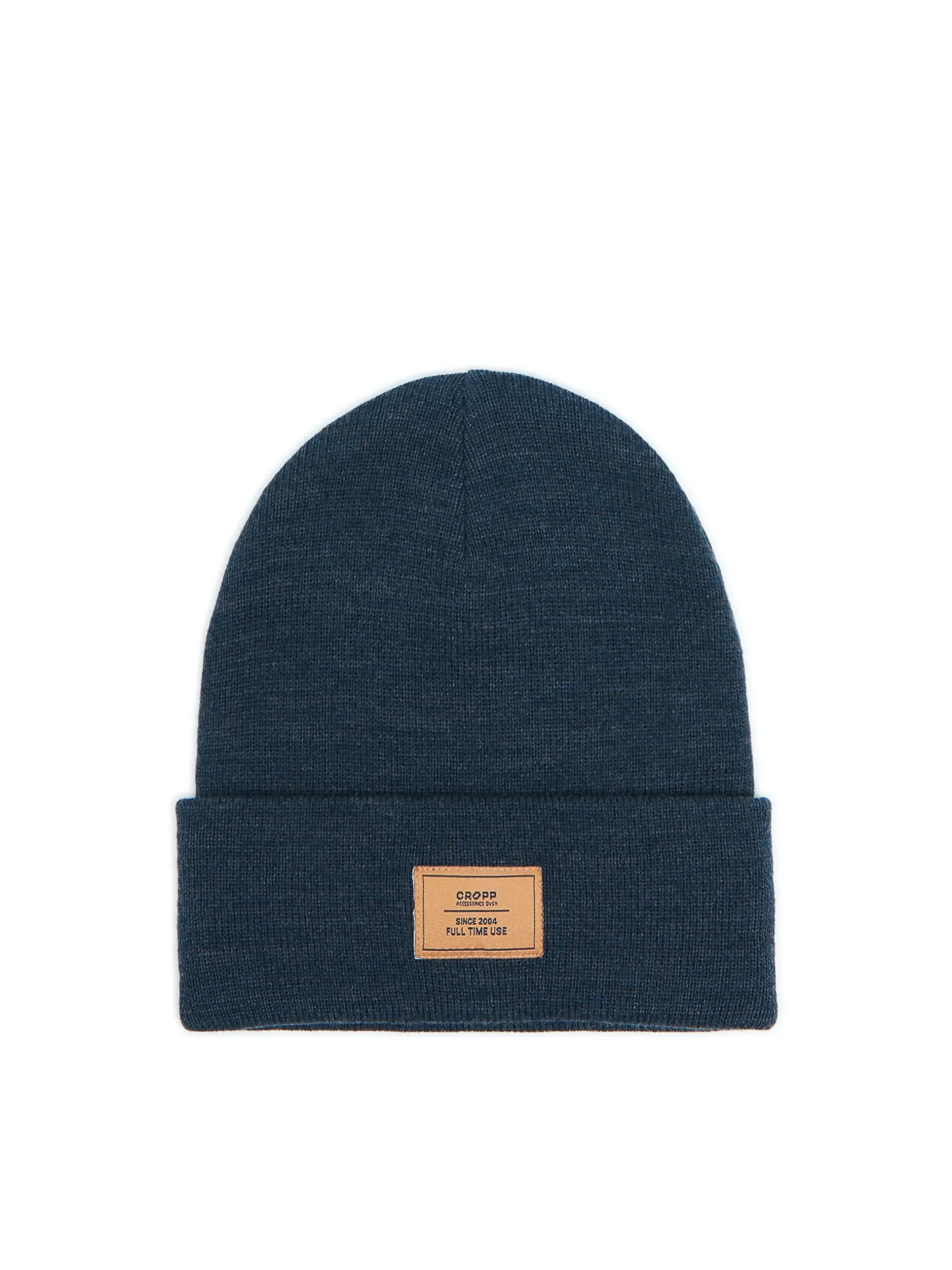 Basicowa czapka męska typu beanie, uszyta z dzianiny. Z przodu ozdobna metka z napisem. Dostępne różne warianty kolorystyczne.
