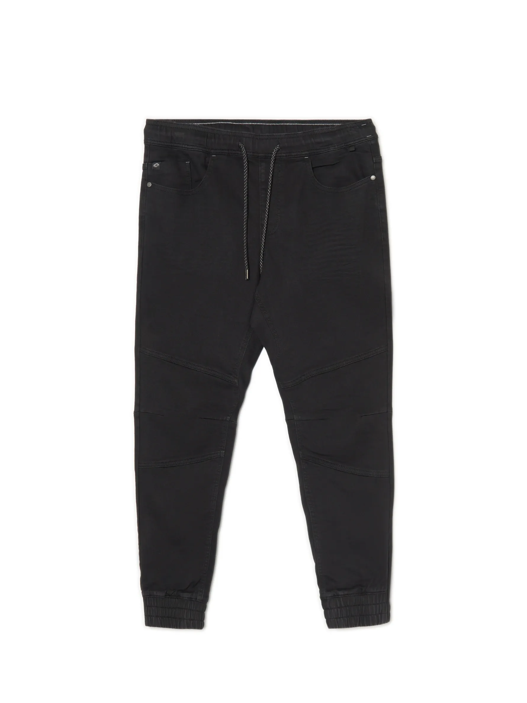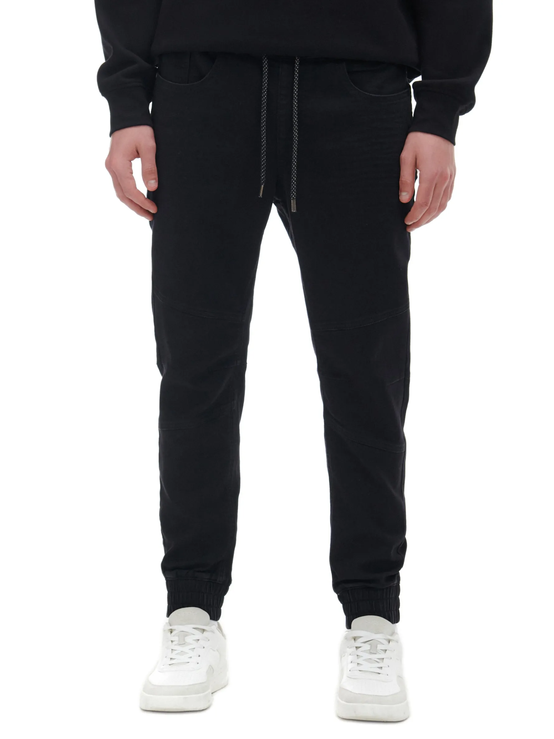 Męskie spodnie jeansowe typu jogger, uszyte z miękkiej, elastycznej tkaniny o wysokiej zawartości bawełny. w pasie gumka i sznurek do regulacji 5 kieszeni nogawka ze ściągaczem i technicznymi cięciami dostępne inne warianty kolorystyczne