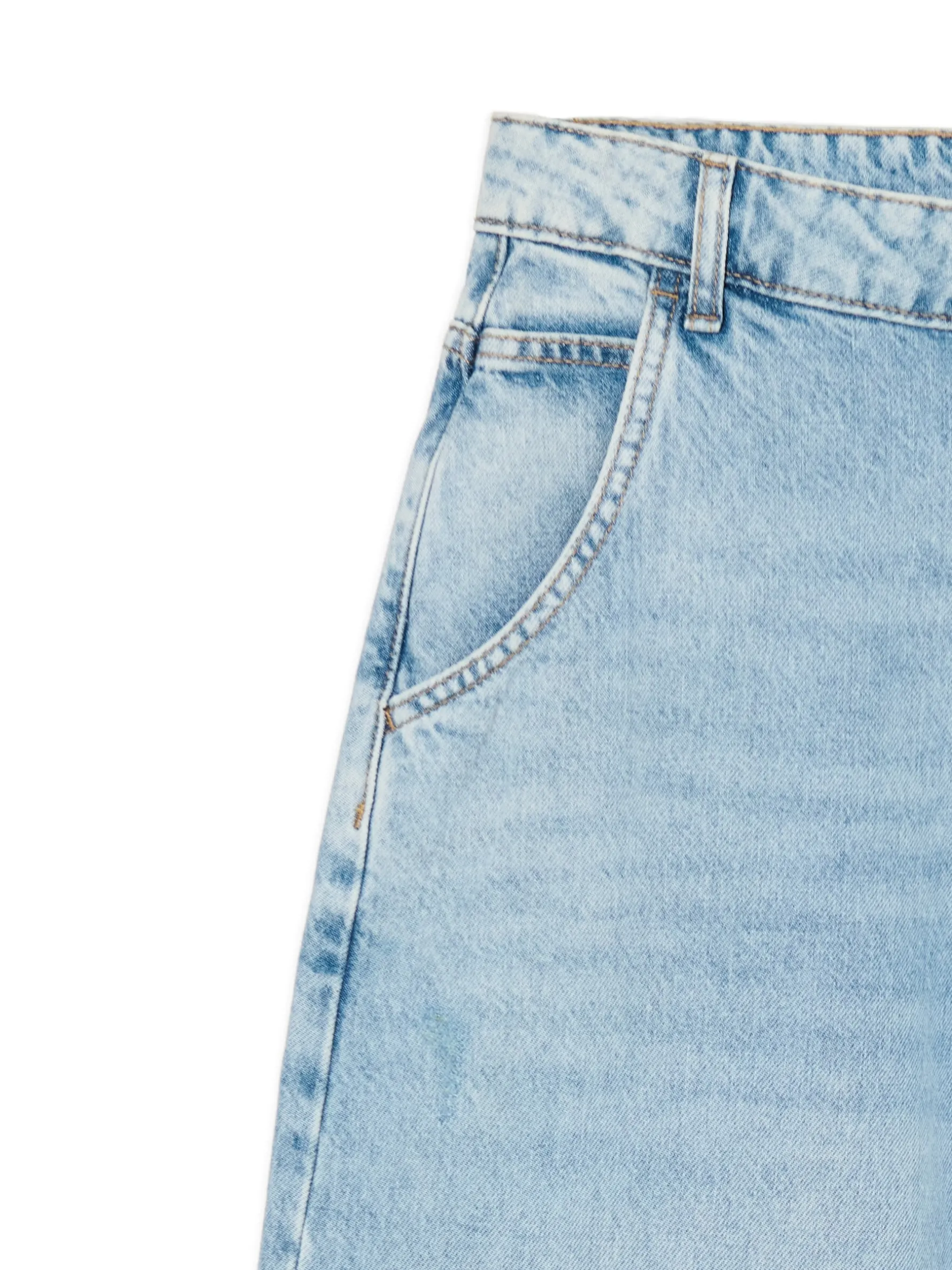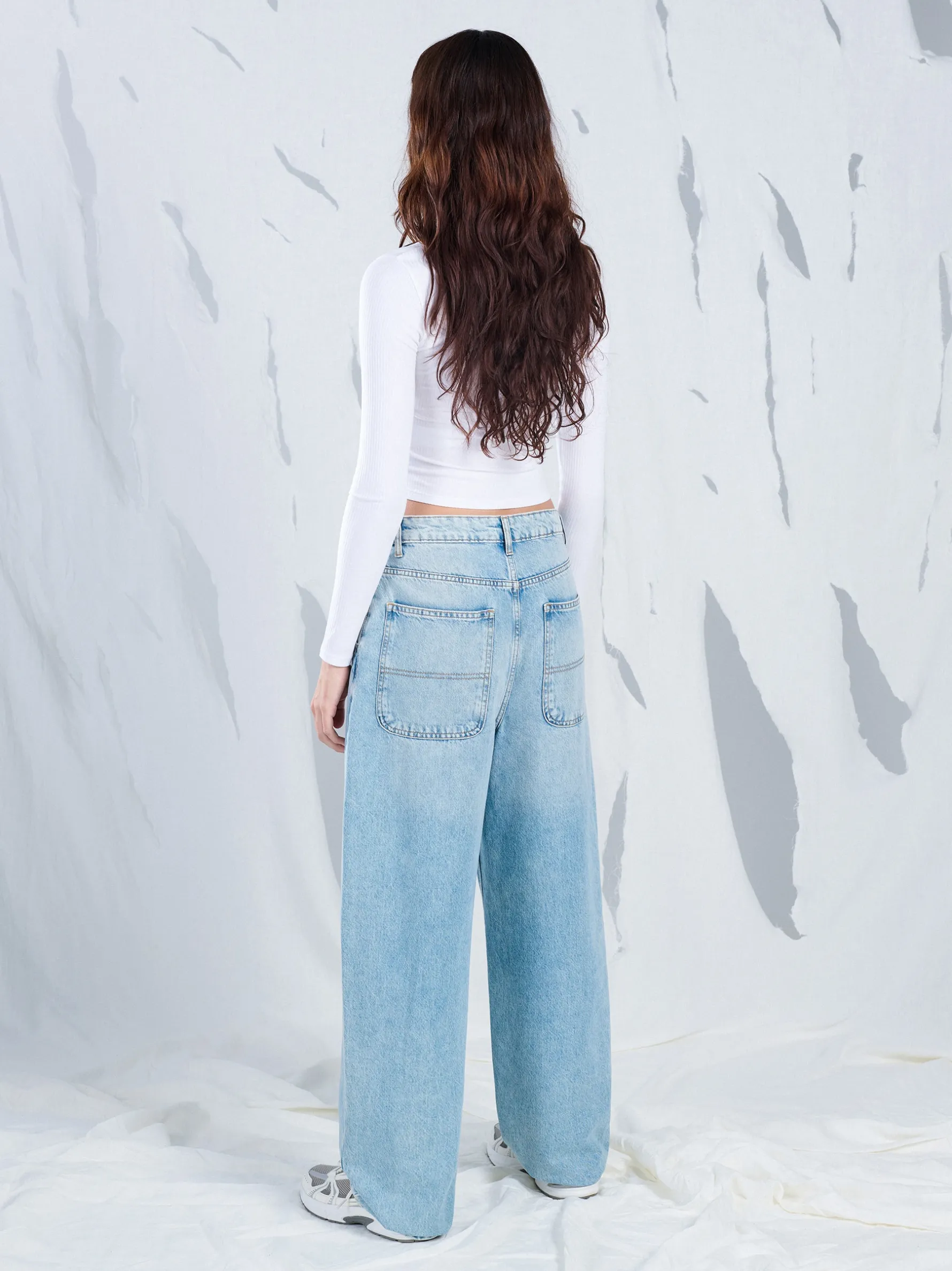 Damskie spodnie jeansowe typu skater, uszyte z bawełny. Luźne nogawki i dopasowana talia zapewnią komfort podczas aktywnego spędzania czasu. Dostępne inne wersje kolorystyczne. 100% bawełny krój skater zapięcie na suwak i guzik szlufki na pasek długie, szerokie nogawki dwie kieszenie z przodu, dwie z tyłu mała kieszeń na monety delikatny efekt sprania
