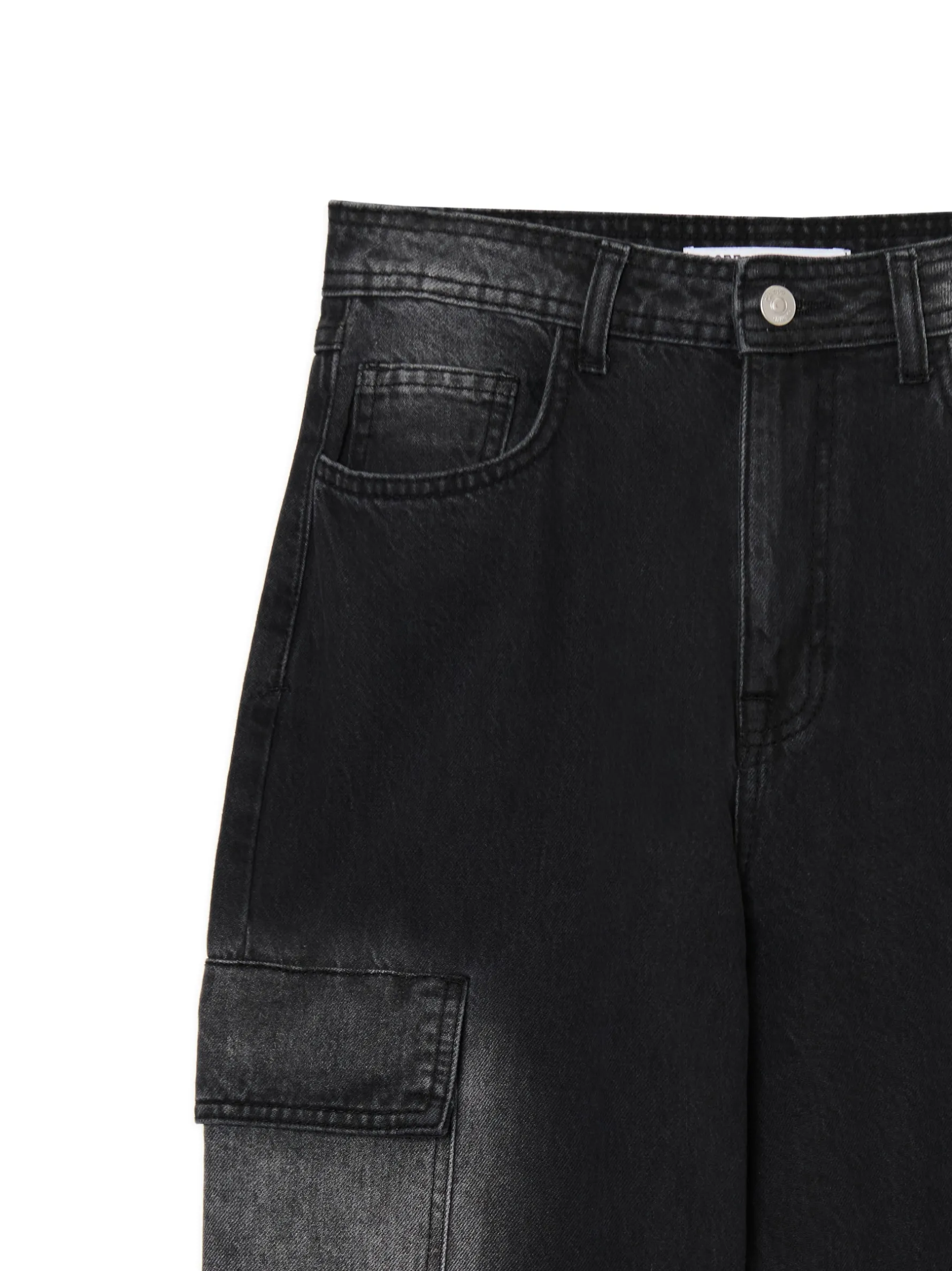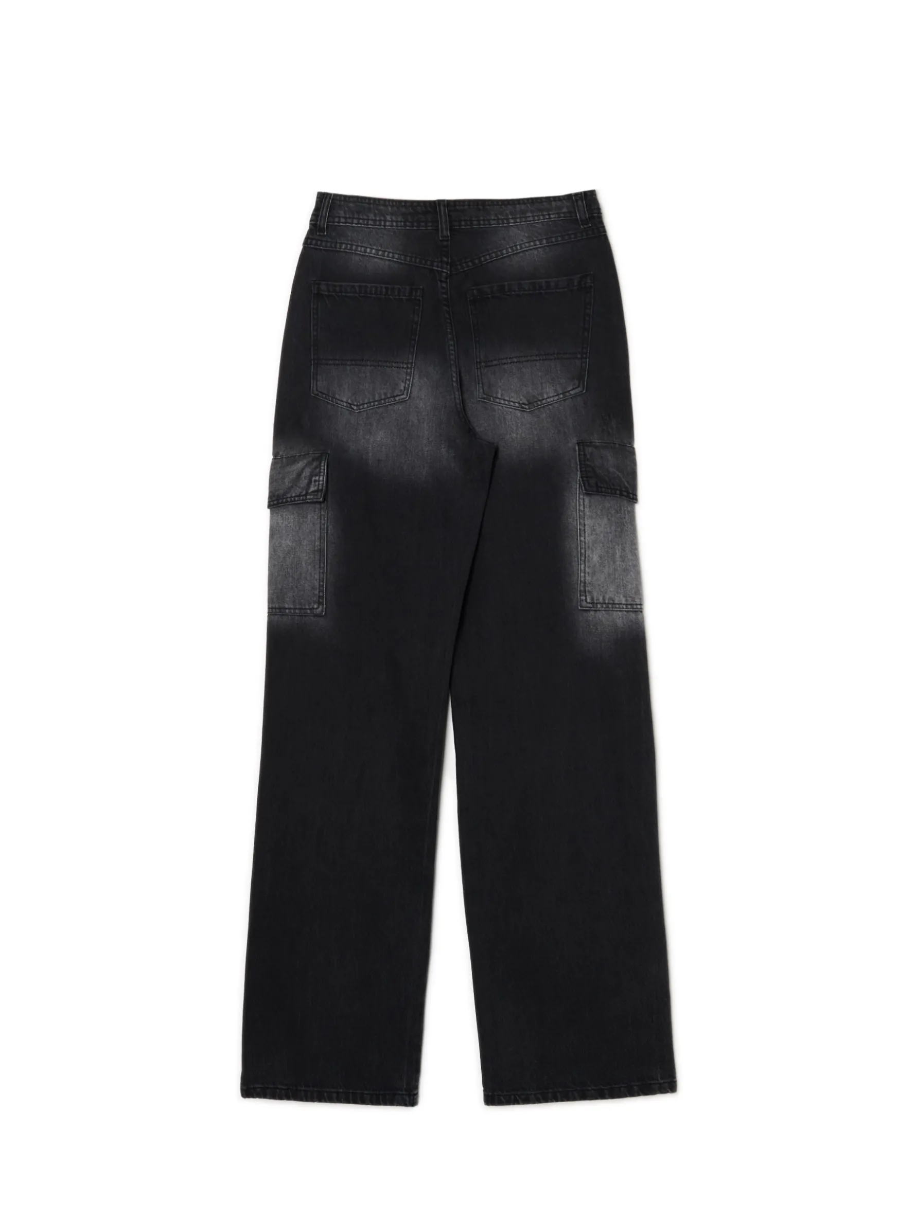 Ciemne damskie spodnie jeansowe uszyte z bawełnianej tkaniny. Praktyczne kieszenie, wygodne zapięcie i efekt sprania w różnych miejscach. Casual, który warto mieć awaryjnie w szafie! 100% bawełny obszerny krój baggy model tall – nogawka dłuższa niż standardowa zapięcie na zamek i guzik pięć kieszeni dodatkowe kieszenie cargo na nogawkach efekt sprania w kilku miejscach Potrzebna Ci wersja petite? Jest tu: 745AQ-99M . Czekasz na wersję regular? Już jest: 733AQ-99M .