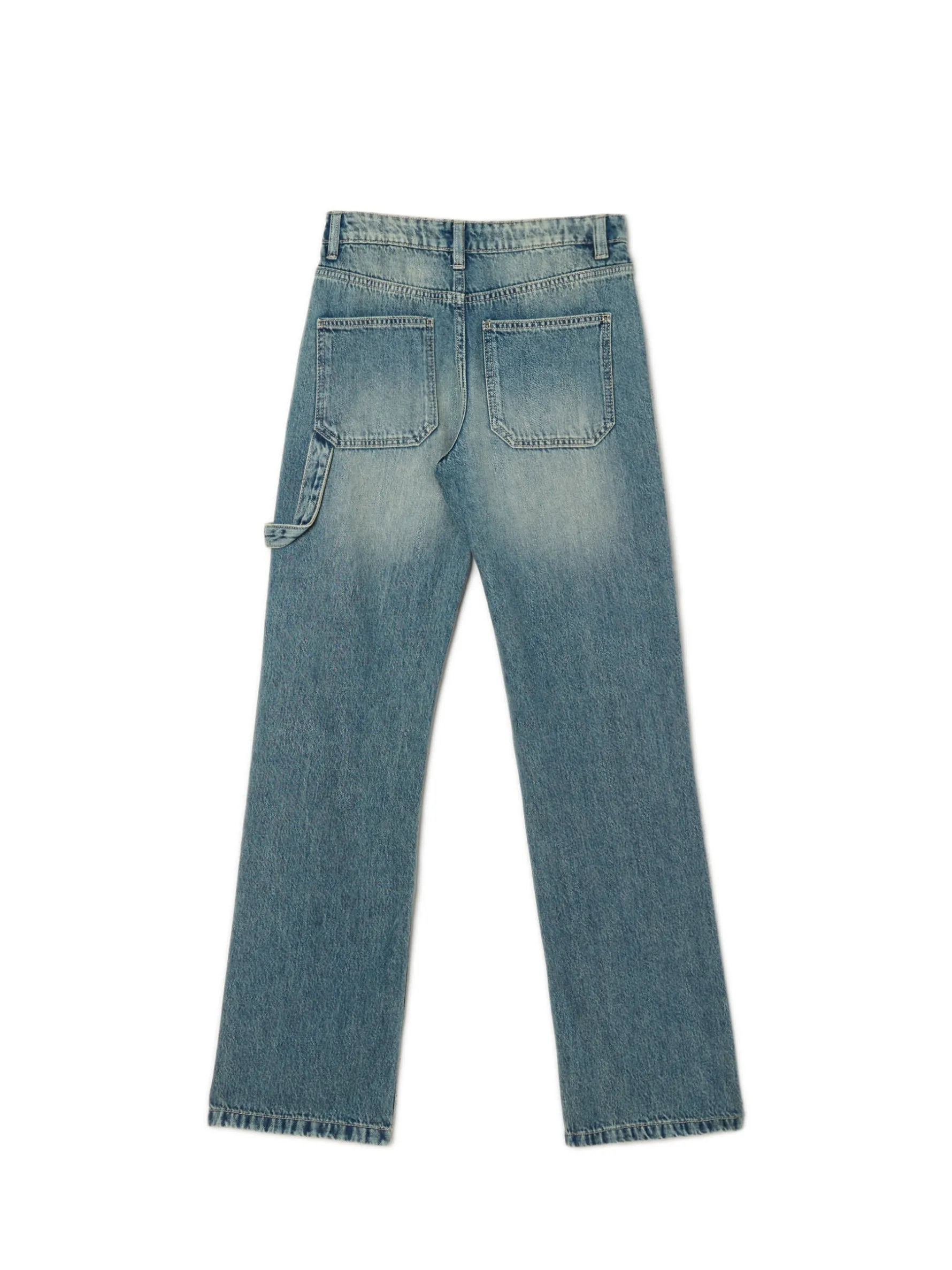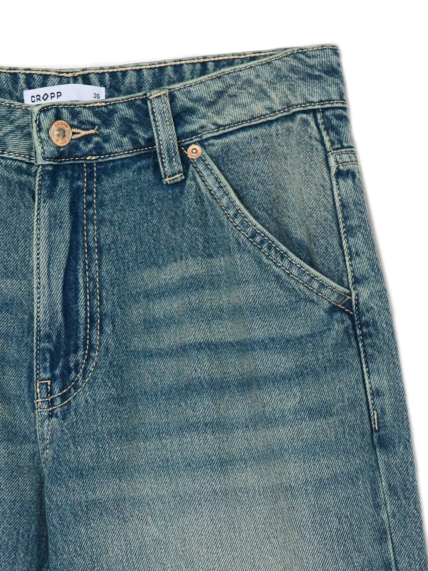 Mamy dla Ciebie wyjątkowe denimowe damskie spodnie z prostymi nogawkami. Randomowy efekt sprania nadaje im oryginalny, oldschoolowy styl. 100% bawełny długie, proste nogawki zapięcie na zamek i guzik skośne kieszenie z przodu naszywane kieszenie z tyłu jedna mała kieszeń na drobniaki szlufki na pasek hammer loop na lewej nogawce lekki efekt sprania na udach i pośladkach