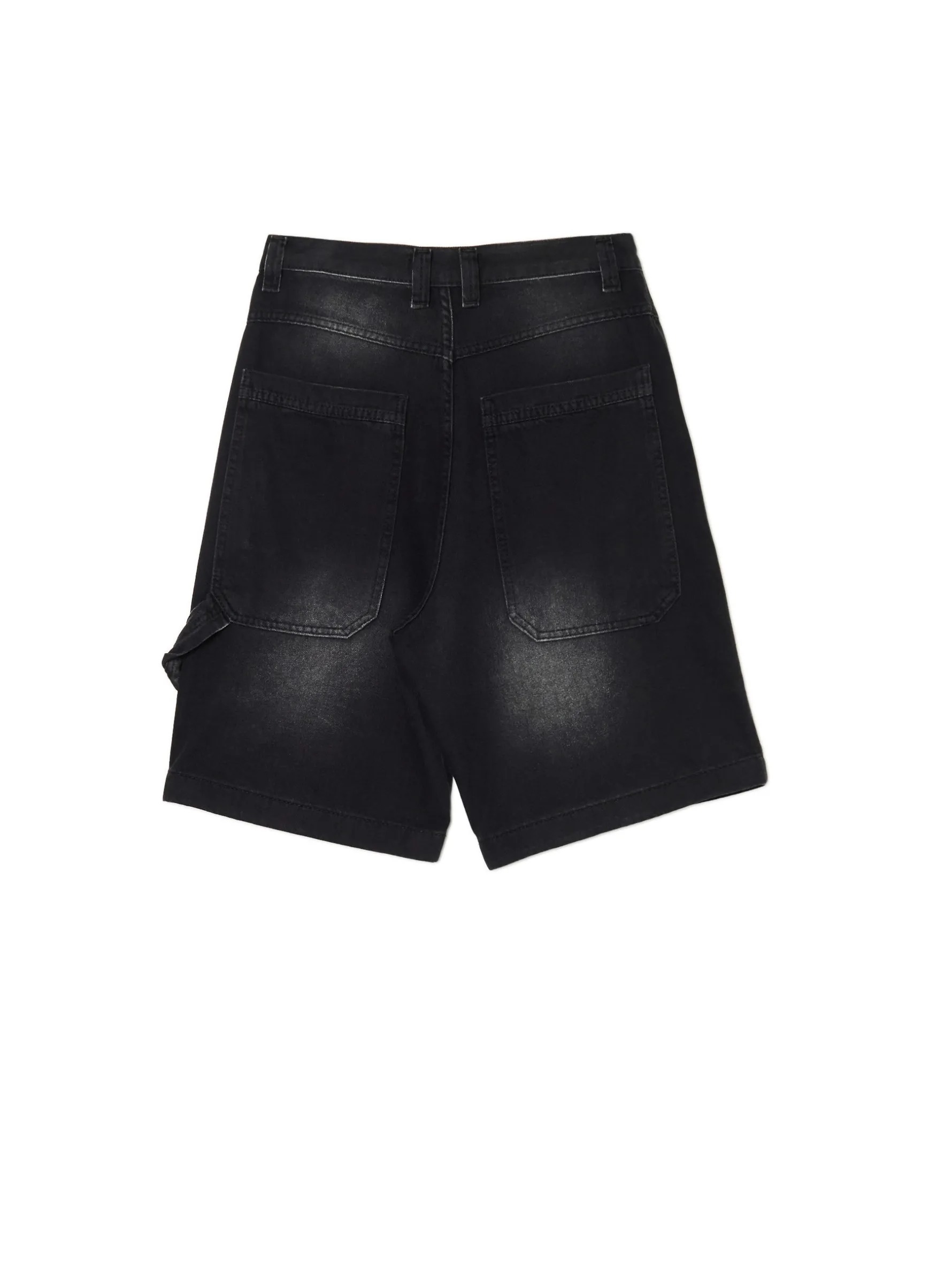 Damskie luźne bermudy uszyte z denimu. Dobierz do nich ulubione topy i w drogę! 100% bawełny luźny, swobodny krój zapięcie na suwak i guzik dwie kieszenie z przodu dwie naszyte kieszenie tylnie hammer loop na lewej nogawce ozdobne nity i pinezki Wzrost modelki: 172 cm