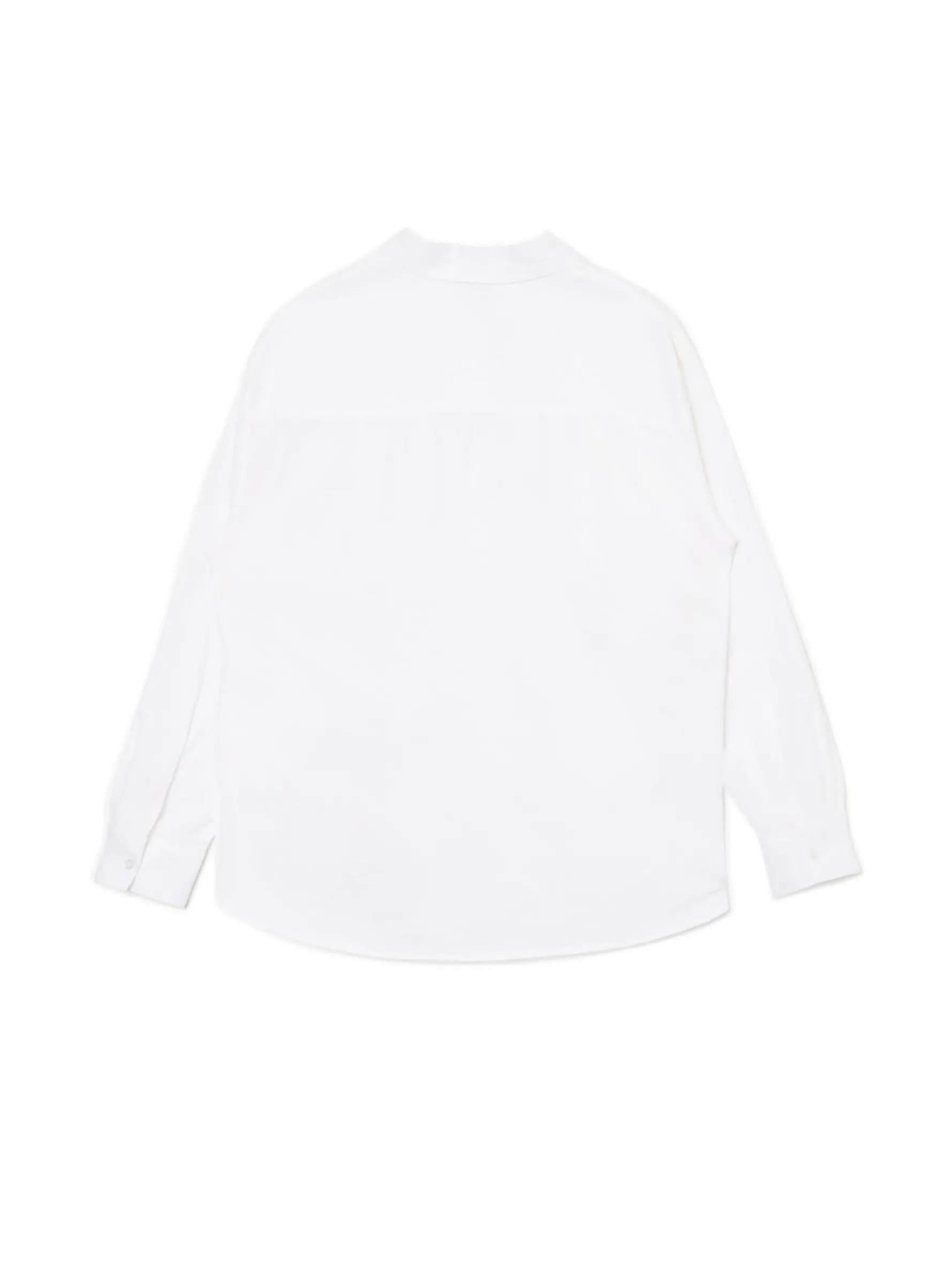 Damska koszula o kroju oversize, uszyta z bawełny w białym kolorze. Klasyk w swobodnej formie, czyli idealny dodatek do bardziej casualowych stylizacji. 100% bawełny krój oversize zapięcie na jednorzędowe guziki długie rękawy zakończone mankietem z guzikiem klasyczny kołnierzyk