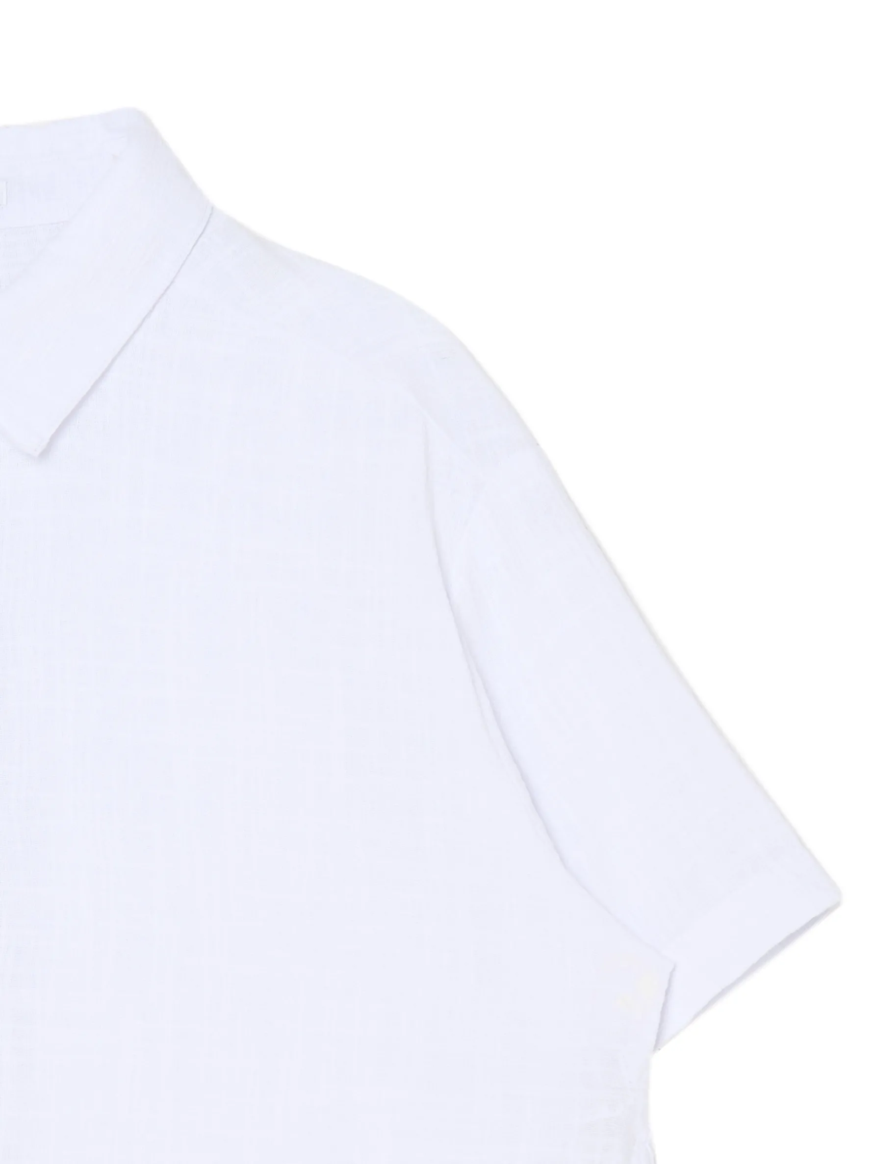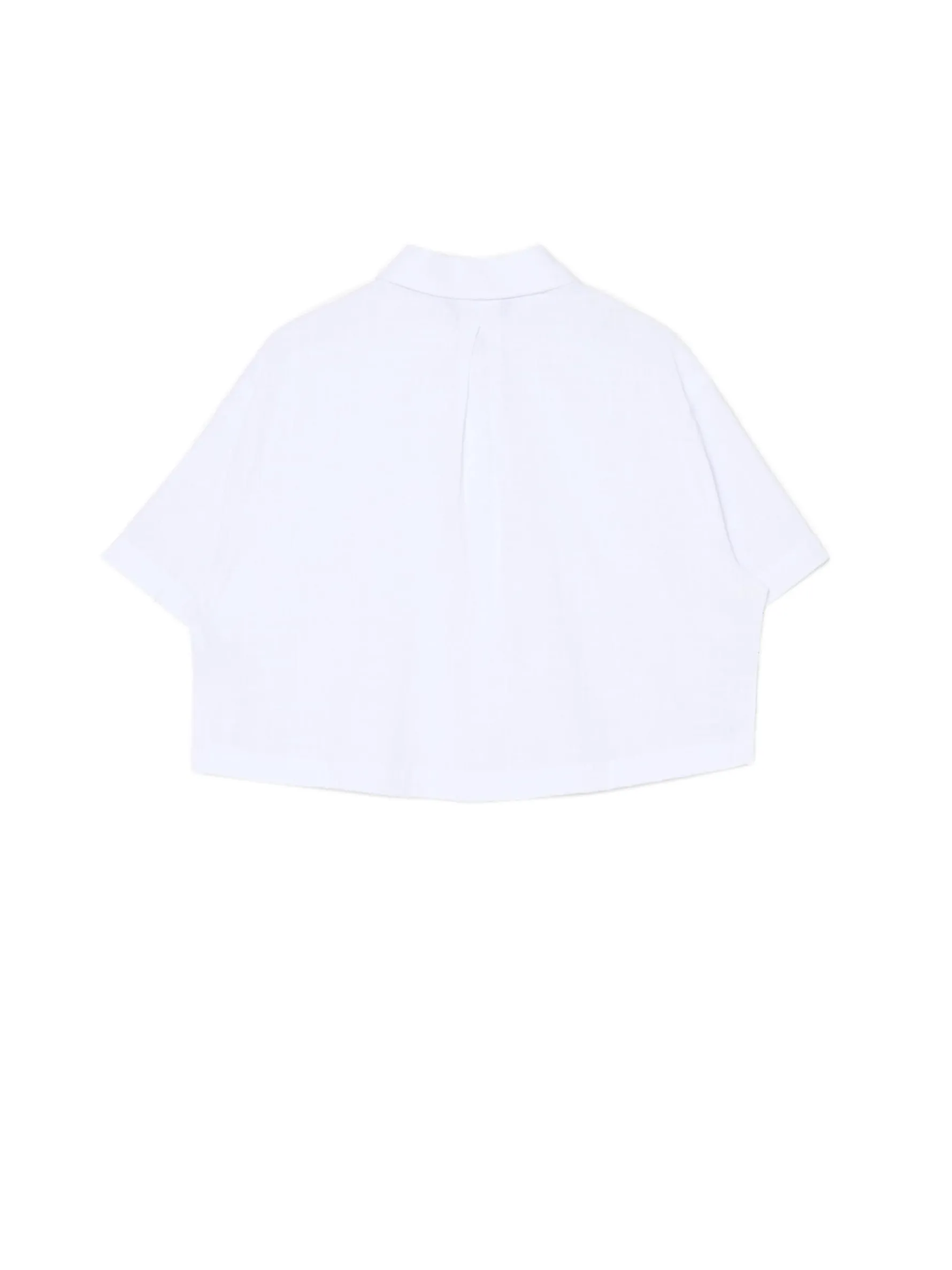 Damska luźna koszula, uszyta z bawełnianej tkaniny o wyjątkowej fakturze. krótki, obszerny krój oversize krótkie, luźne rękawy zapięcie na drobne guziki klasyczny kołnierzyk Wzrost modelki: 177 cm
