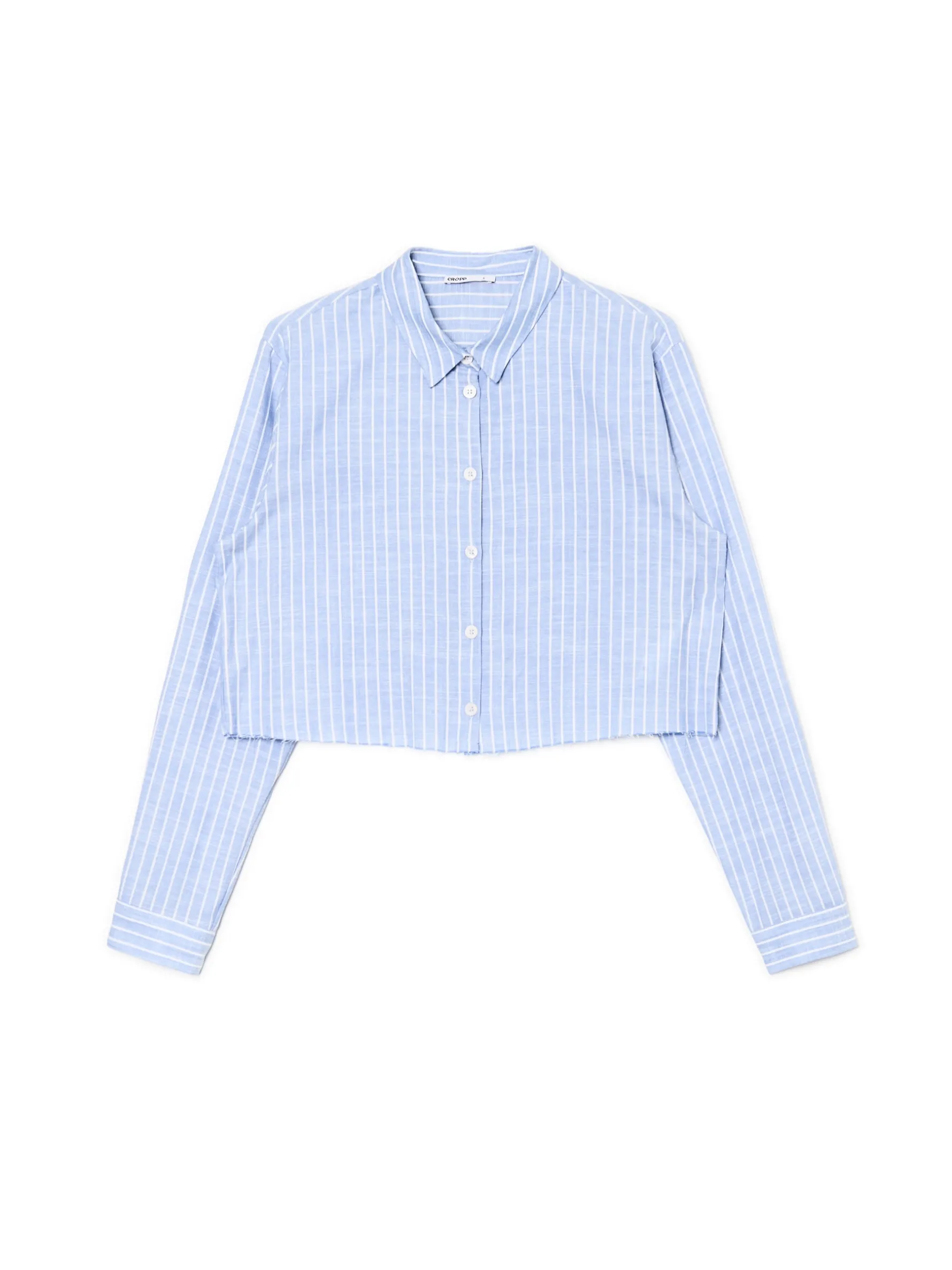 Cropp Koszule, Bluzki*Niebieska krótsza koszula w pionowe paski błękitny
