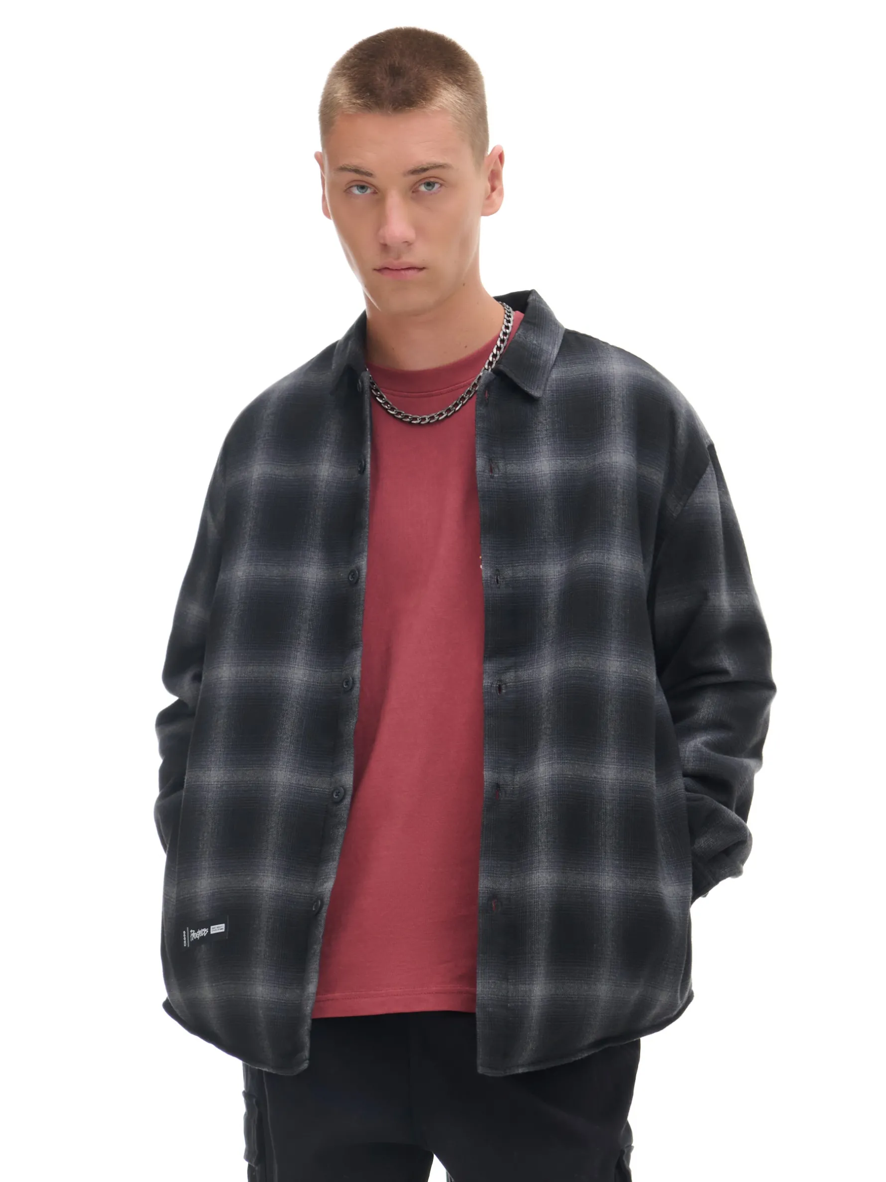 Ocieplana koszula męska, uszyta z mieszanki tkanin z dodatkiem wiskozy. Miękkie wykończenie, wzór w kratę na całości i ozdobne hafty, to sztosowe rozwiązania tego modelu. uszyta z tkaniny w kratę wygodny krój comfort z przodu jednorzędowe zapięcie na guziki kołnierz z wąskimi klapami długie rękawy zapinane na guziki autorskie hafty na całości Wzrost modela: 185 cm