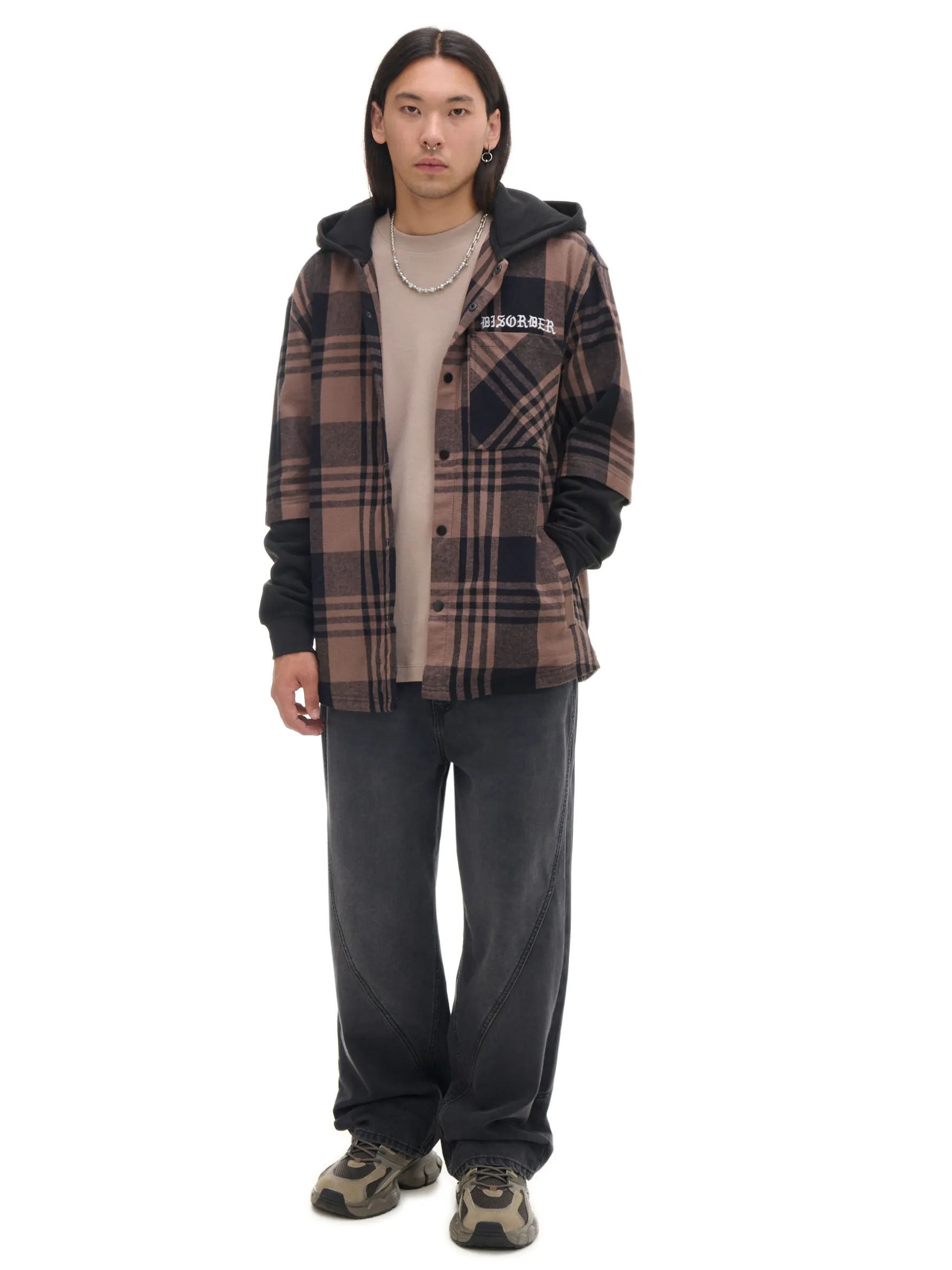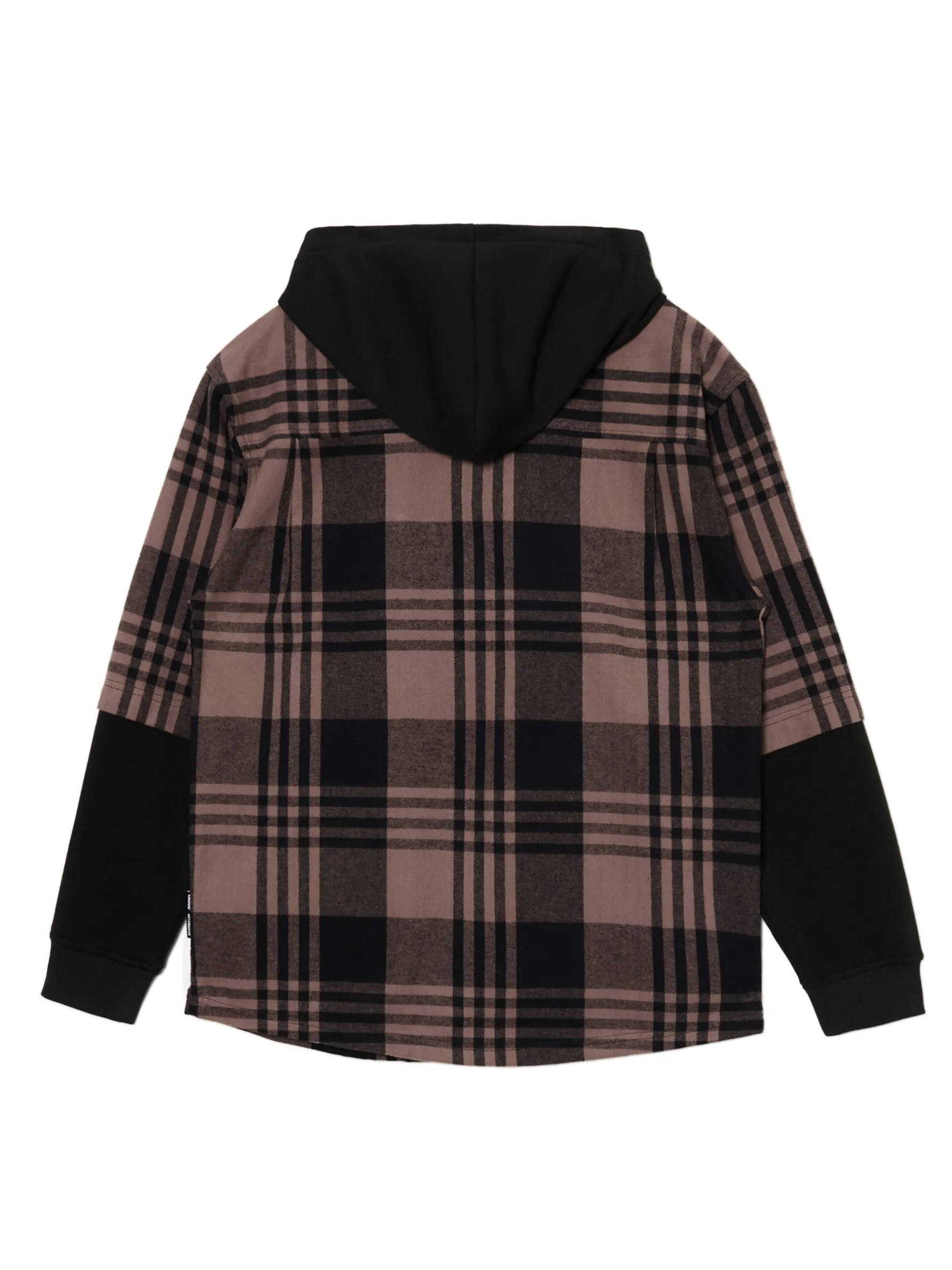 Męska koszula uszyta z grubszej tkaniny z rękawami i kapturem charakterystycznymi dla bluz typu hoodie. Look & vibe! uszyta z tkaniny z dodatkiem wiskozy swobodny, luźny krój praktyczne zapięcie na zatrzaski obszerny kaptur długie rękawy wykończone ściągaczami skośne kieszenie po bokach naszywana kieszeń na piersi ozdobne wstawki niewielki haft z przodu wzór w kratę