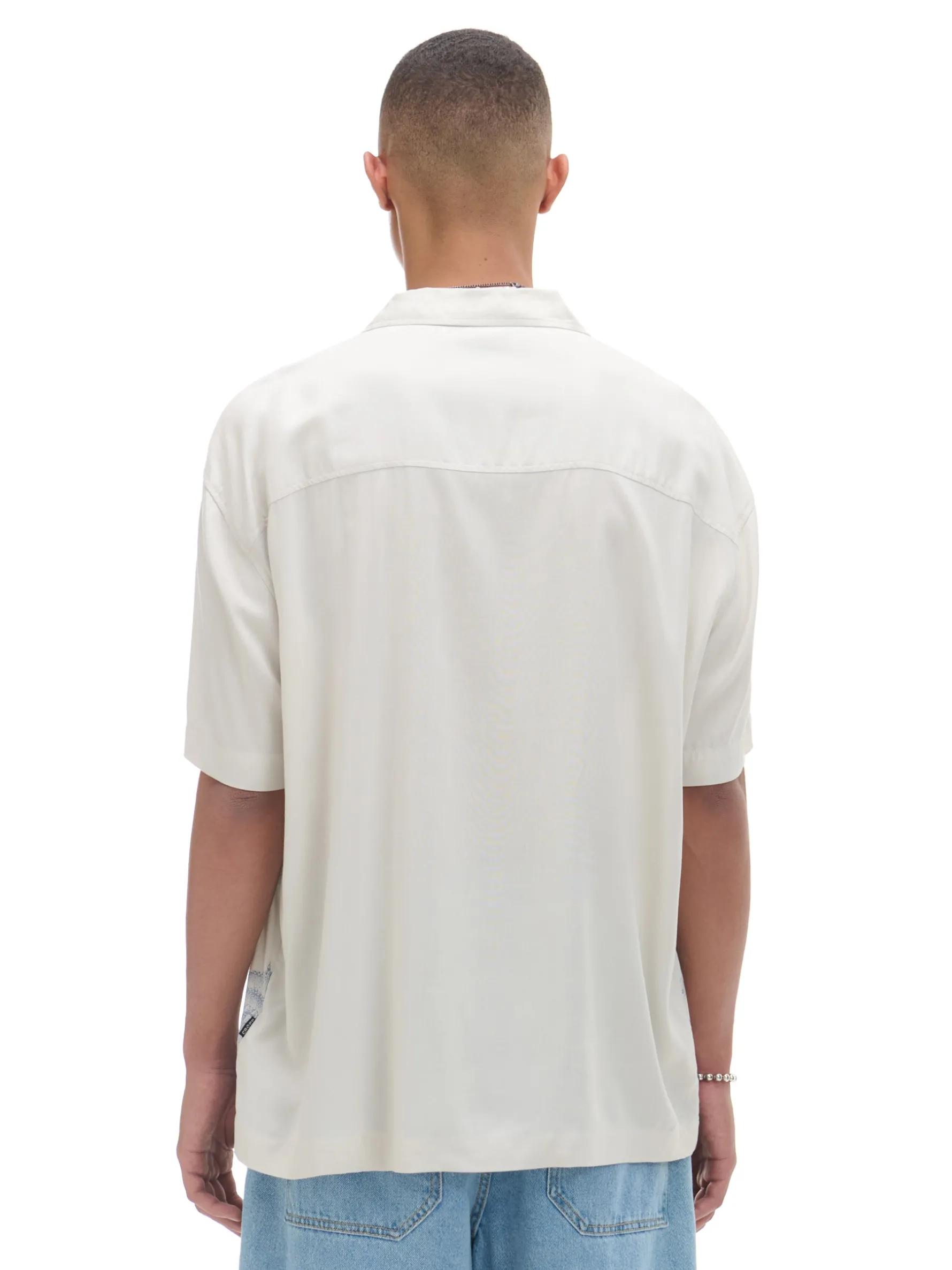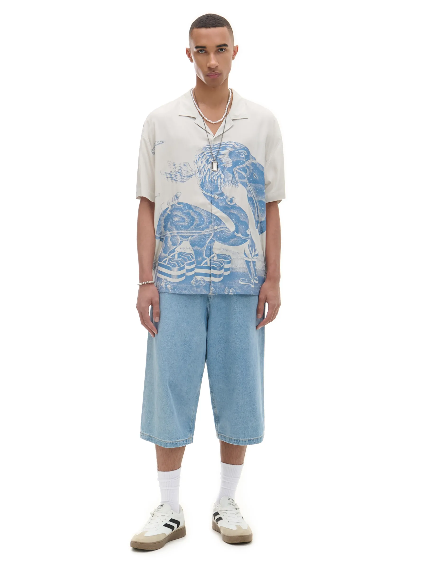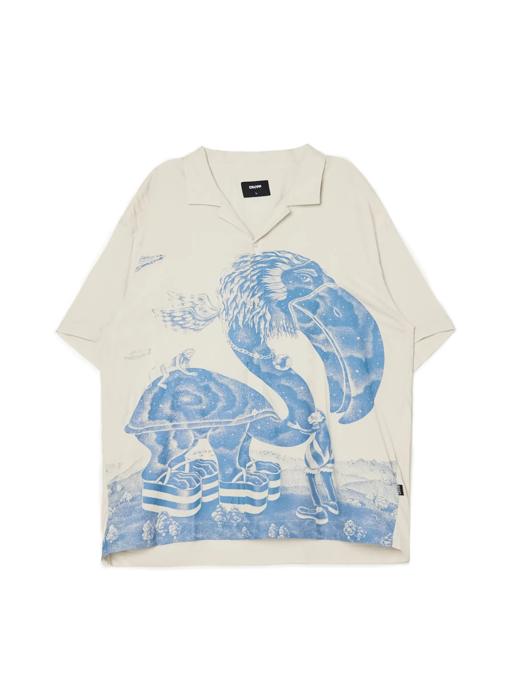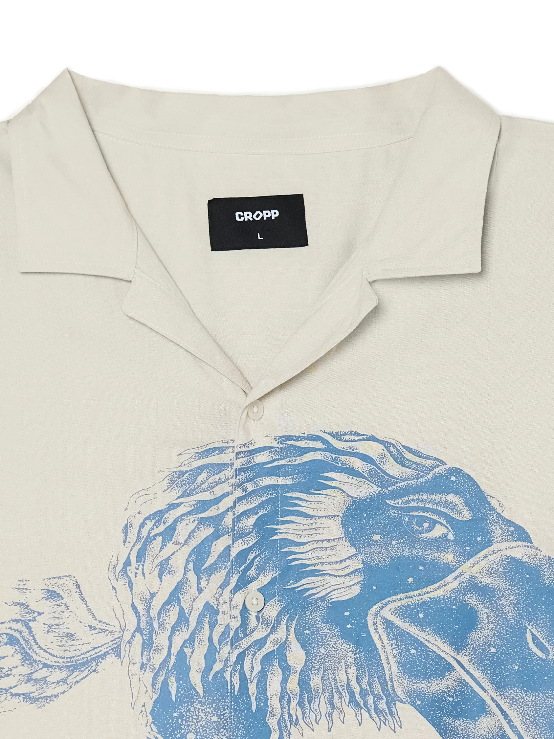 Męska koszula uszyta w 100% z wiskozy w regularnym kroju. Nadruk na przodzie inspirowany pracami Dimy Kashtalyana. 100% wiskozy krótkie, swobodne rękawy kołnierzyk z otwartymi, wąskimi klapami z przodu nadruk z motywem zwierzęcym Wzrost modela: 185 cm Ten produkt powstał w ramach kolaboracji Cropp x DIMA. Sprawdź jego inne prace: @dkashtalyan i zainspiruj się twórczą energią!