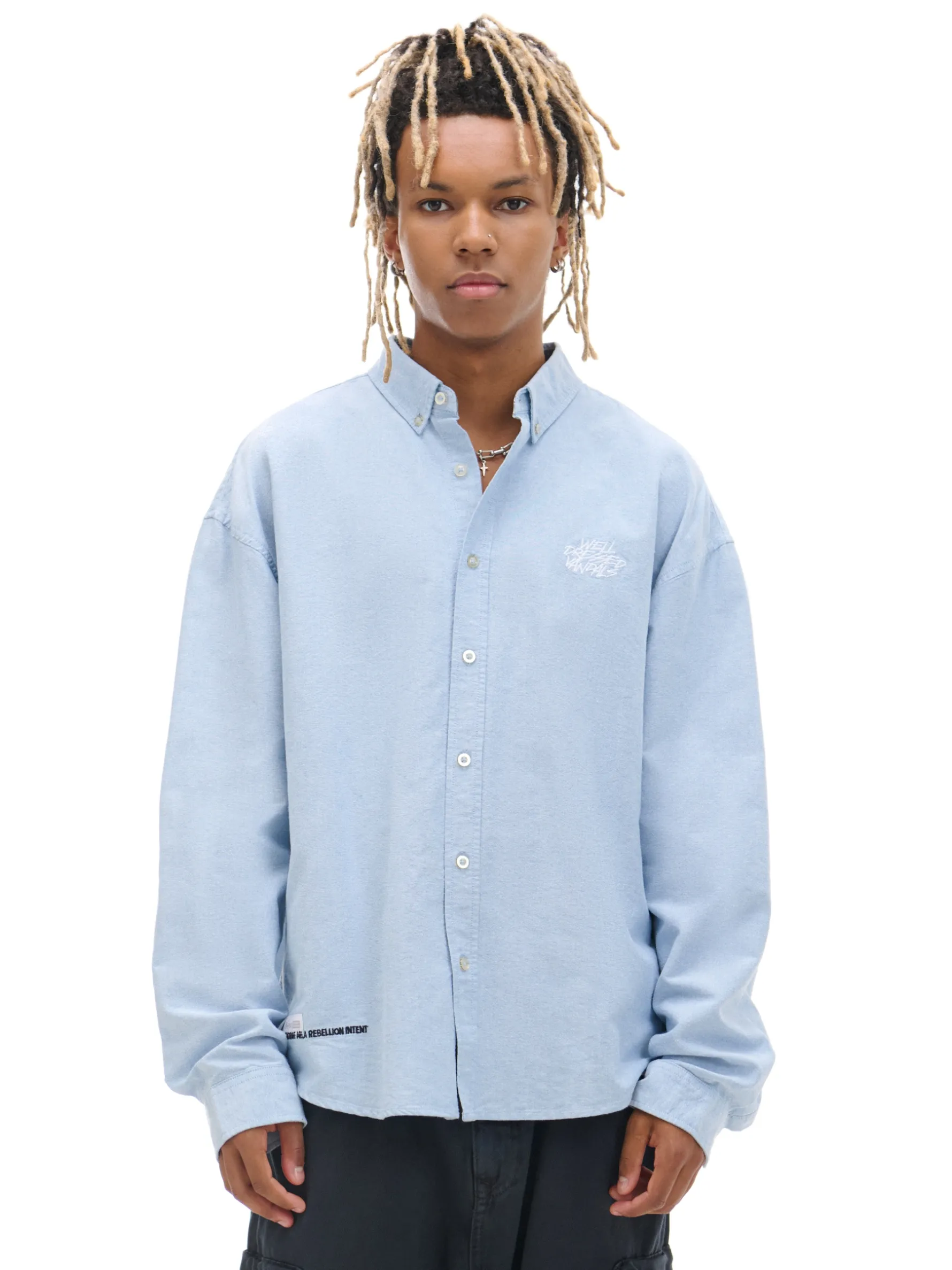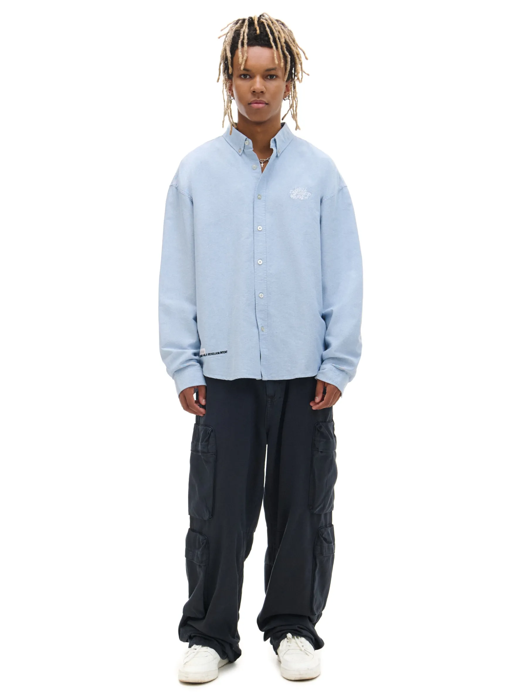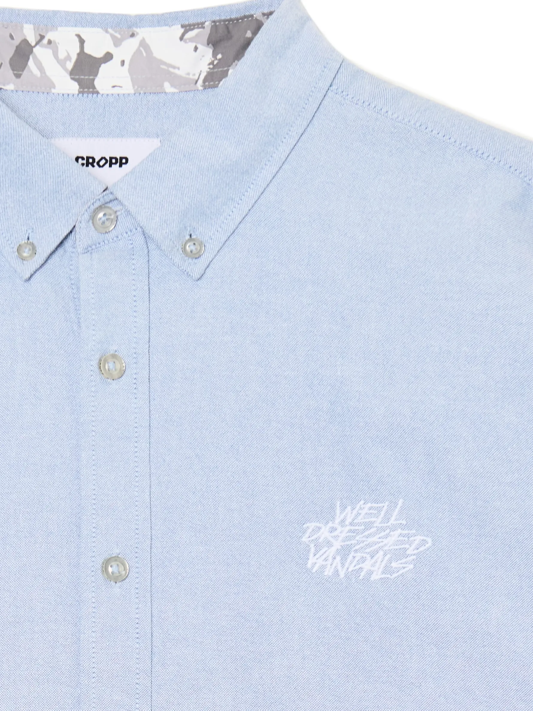 Gładka męska koszula o kroju comfort z kołnierzykiem, uszyta z bawełnianej tkaniny typu oxford. Ozdobne nadruki i naszywki nadają jej casualowego stylu. 100% bawełny wygodny krój comfort jednorzędowe zapięcie na guziki klasyczny kołnierzyk długie rękawy zakończone mankietem z guzikami ozdobne naszywki i nadruki
