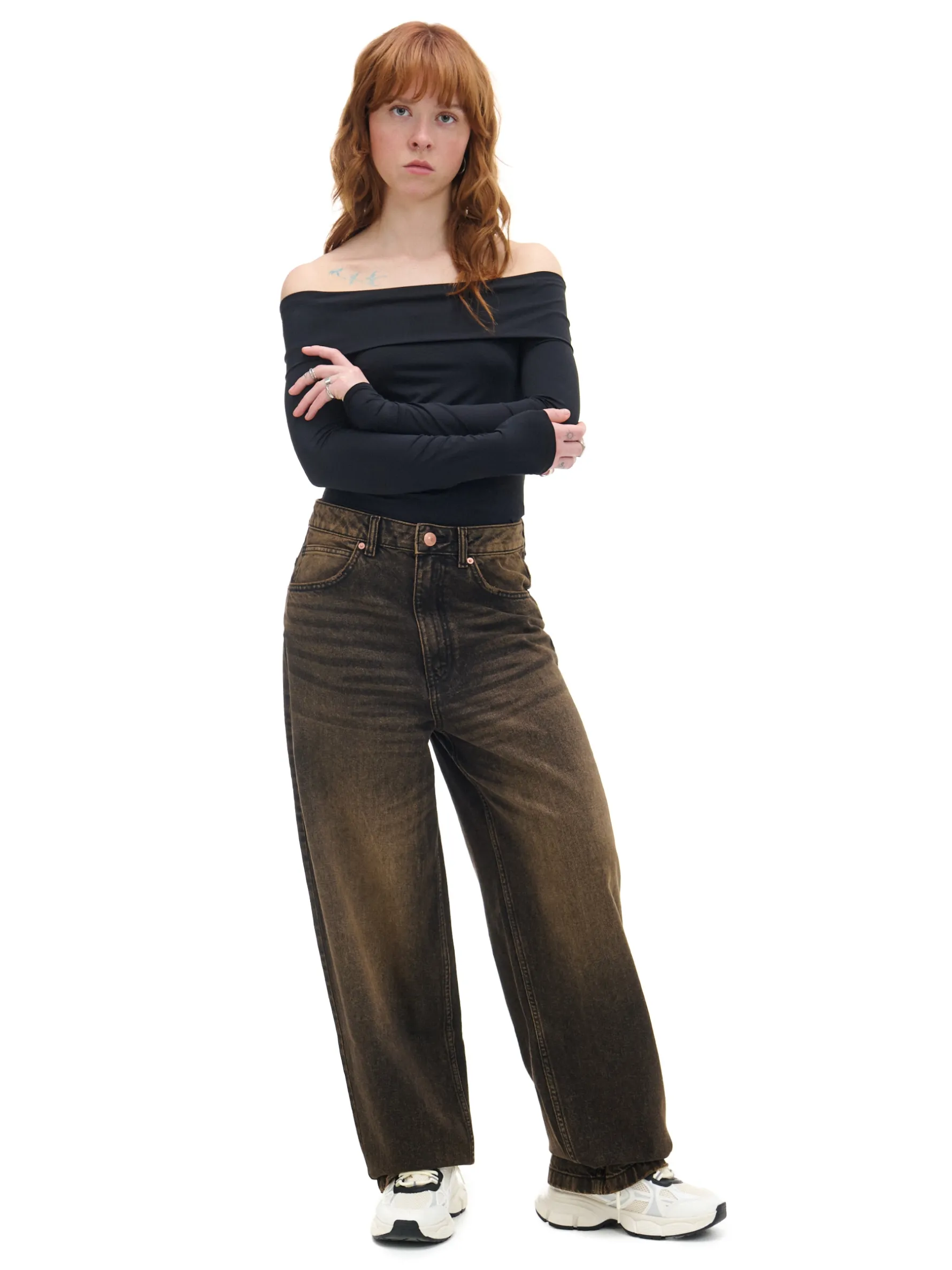 Cropp Koszulki, Topy*Czarna bluzka z odkrytymi ramionami czarny