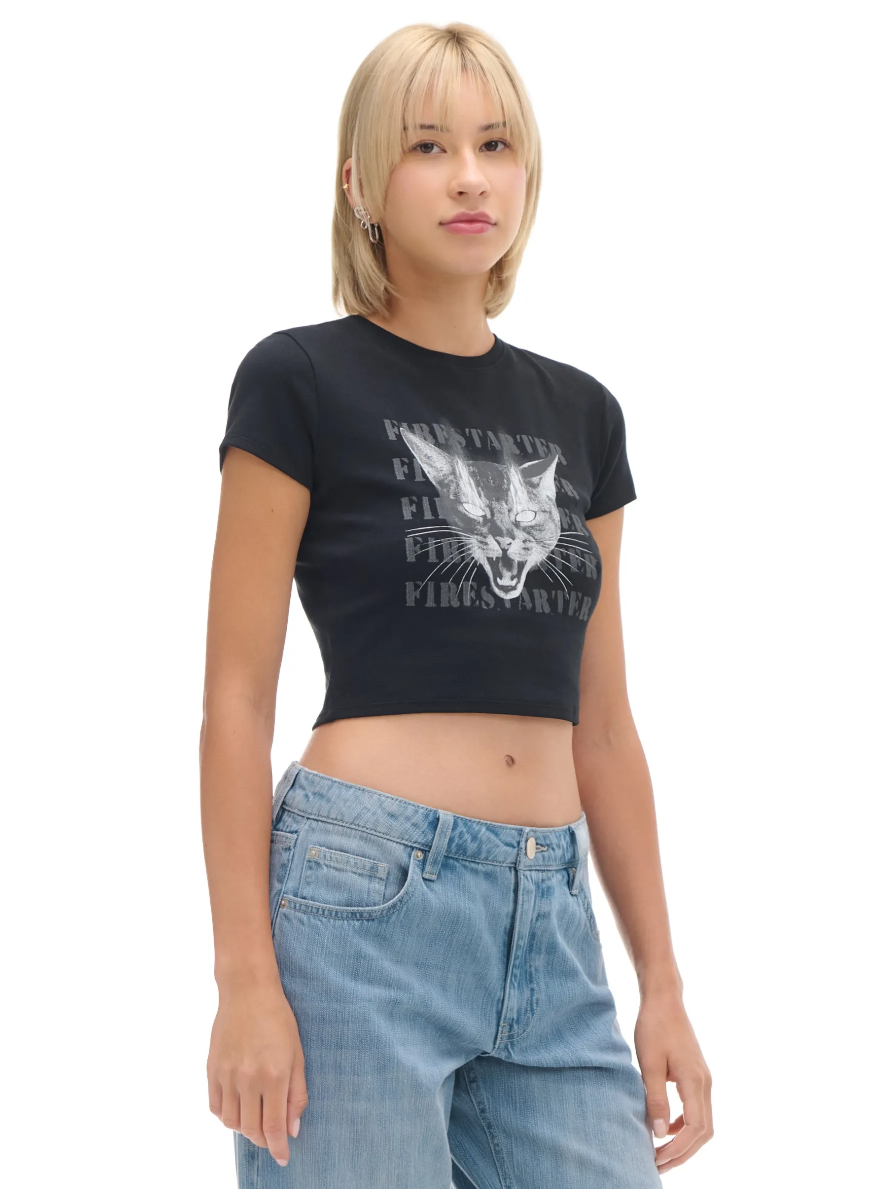Cropp Koszulki, Topy*Koszulka z nadrukiem kota czarny