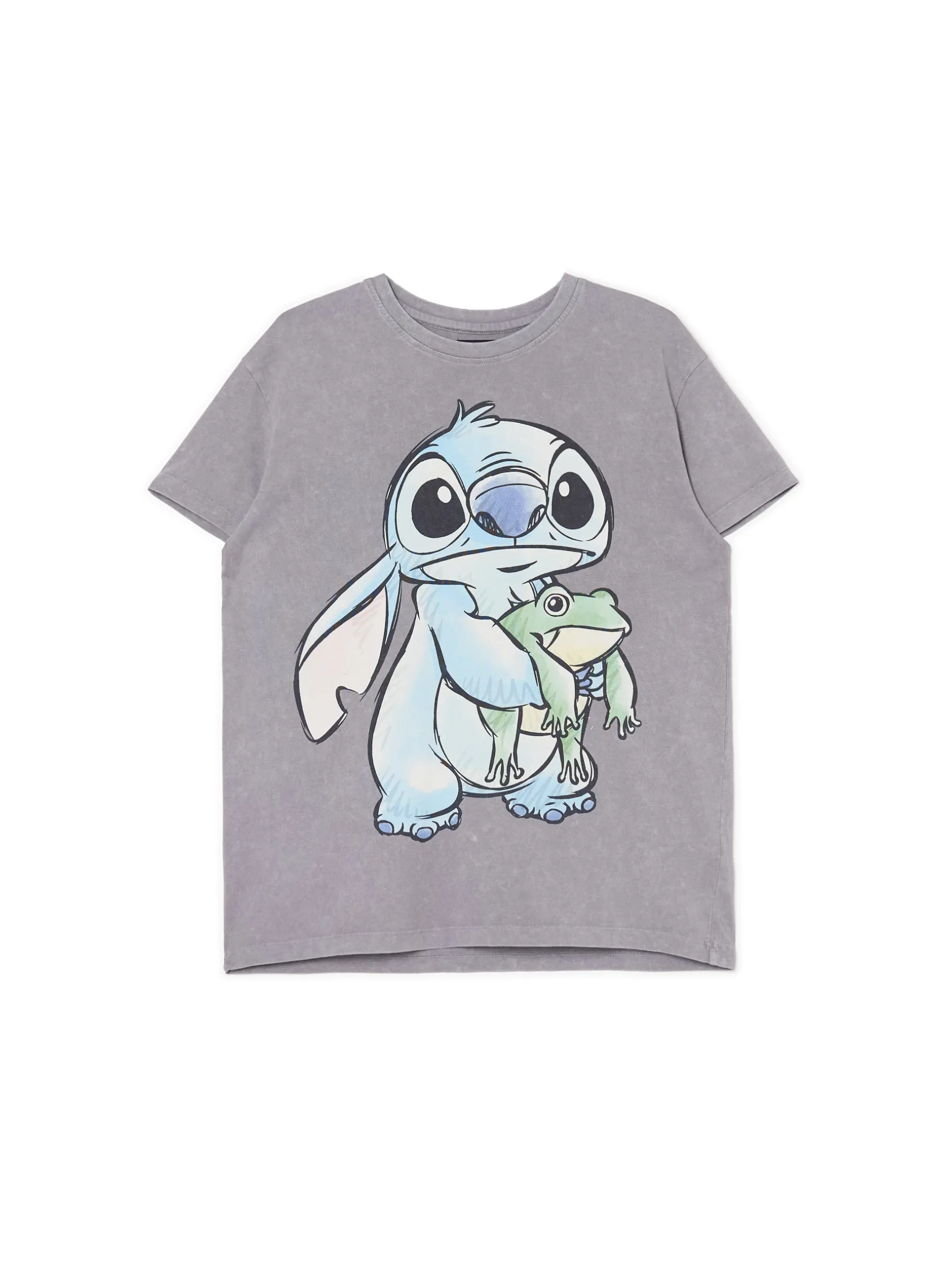 Damski szary T-shirt uszyty w 100% z bawełny o kroju oversize z krótkim rękawem. Na przodzie podobizna disneyowego Stitcha z filmu Lilo & Stitch. Czy można mu się oprzeć? Wzrost modelki: 168 cm © Disney, ©Disney / Pixar, © Disney Based on the „Winnie the Pooh” works by A. A. Milne and E. H. Shepard