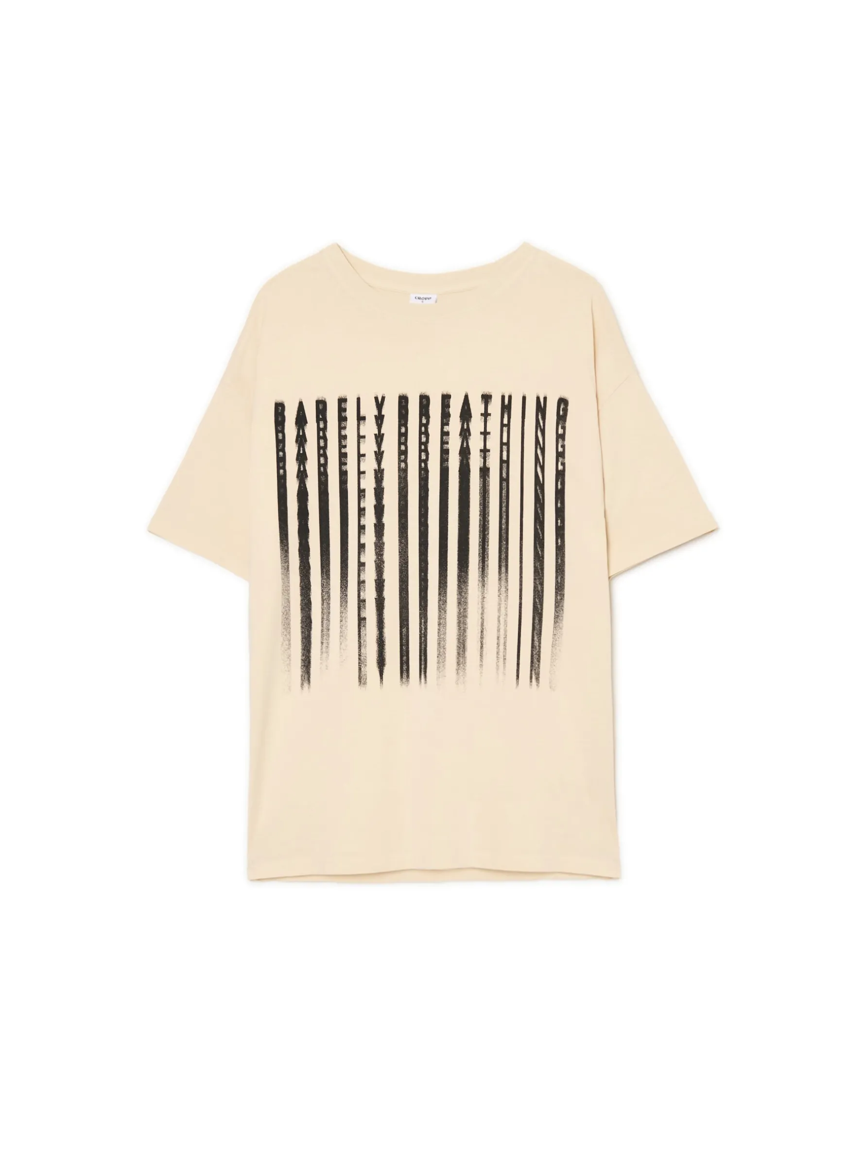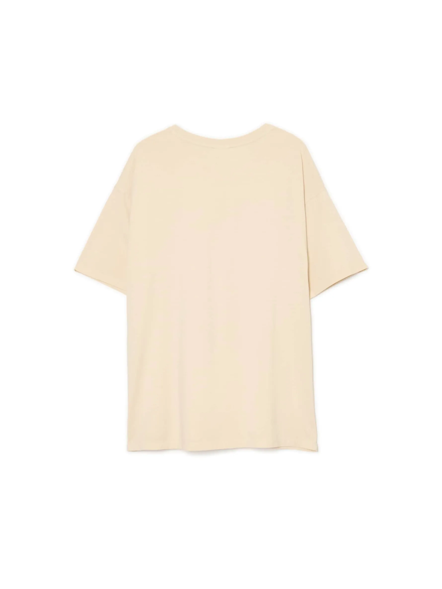 Cropp Koszulki, Topy*Kremowa koszulka oversize z nadrukiem kremowy