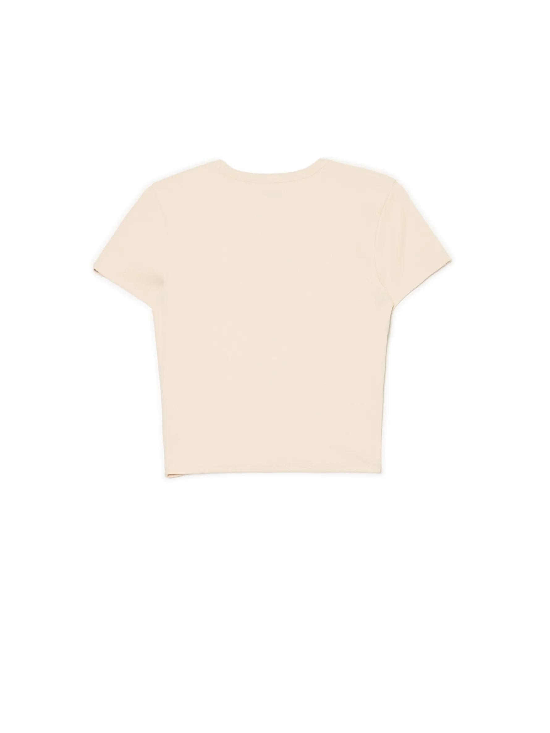 Cropp Koszulki, Topy*Kremowa koszulka z nadrukiem kremowy