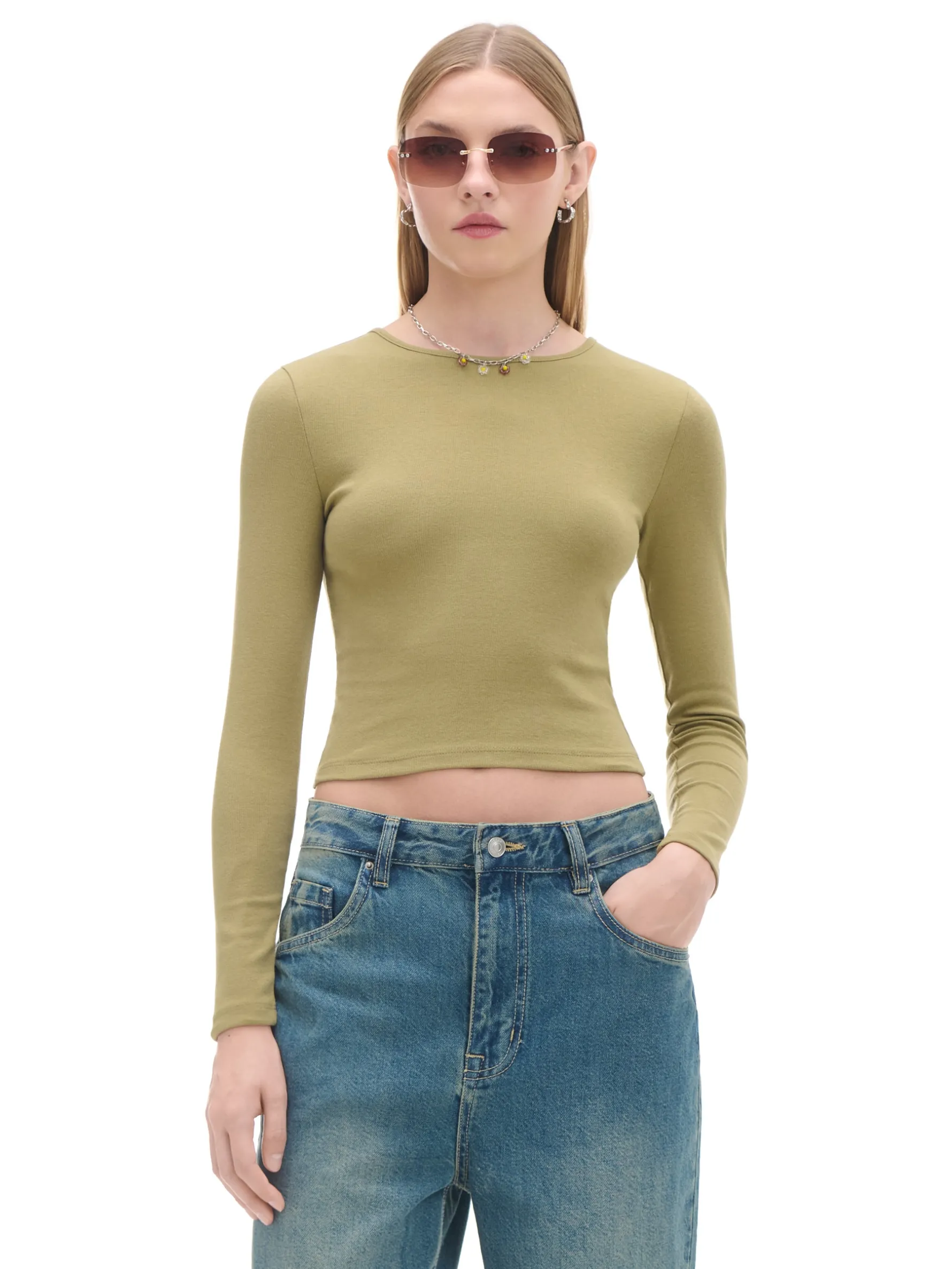 Cropp Koszulki, Topy*Oliwkowa koszulka z długim rękawem zielony