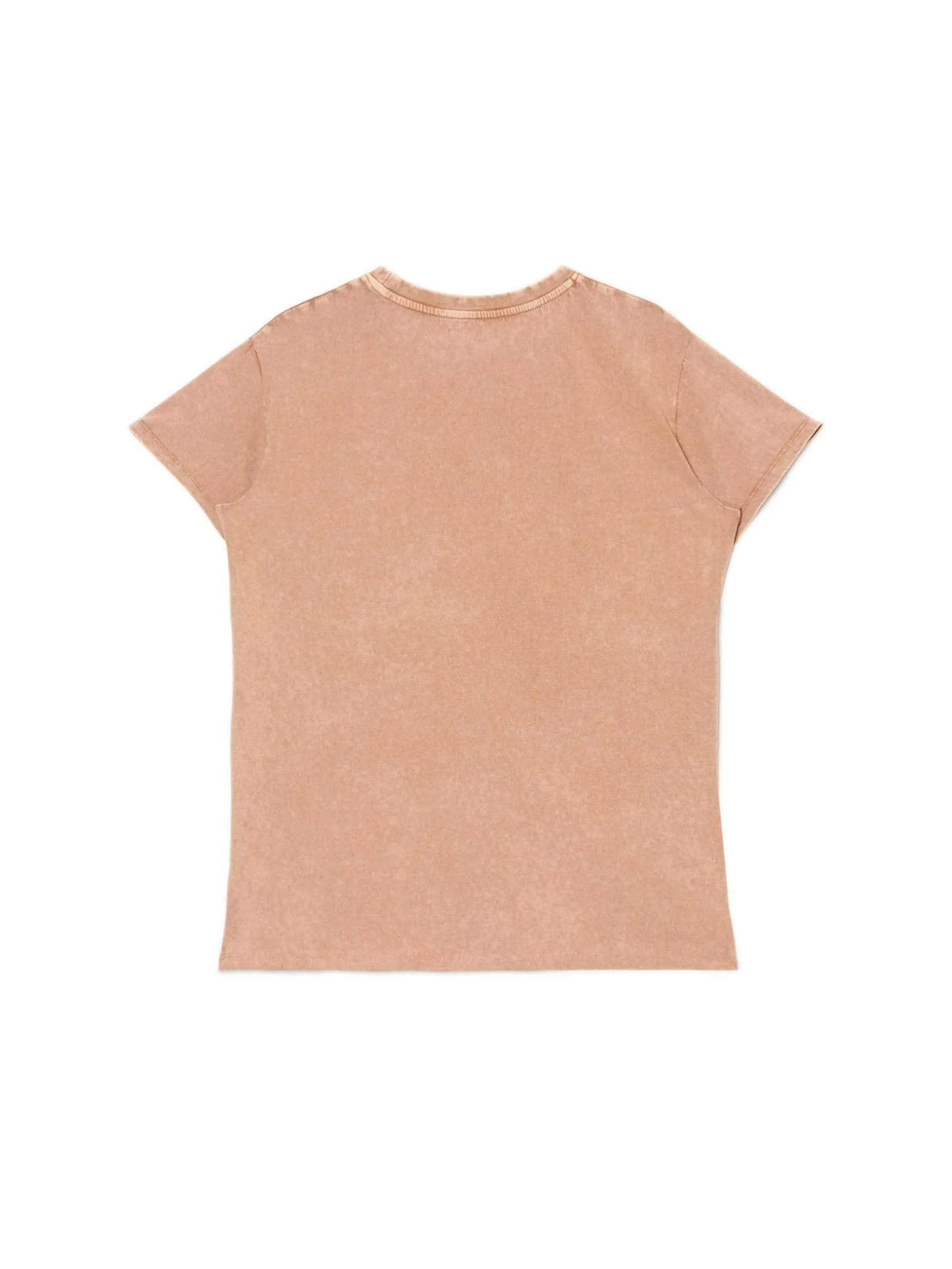 Damski t-shirt oversize, uszyty w 100% z bawełny. obszerny, luźny krój krótkie rękawy z przodu nadruk Wzrost modelki: 177 cm