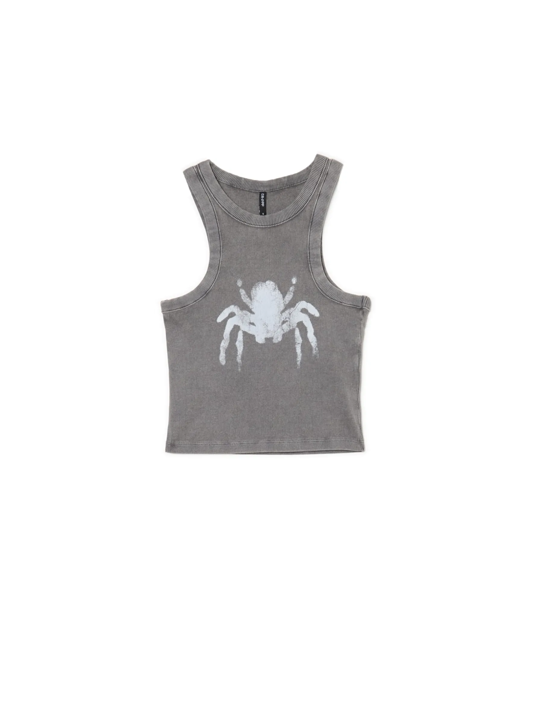 Cropp Koszulki, Topy*Prążkowany top z pająkiem szary