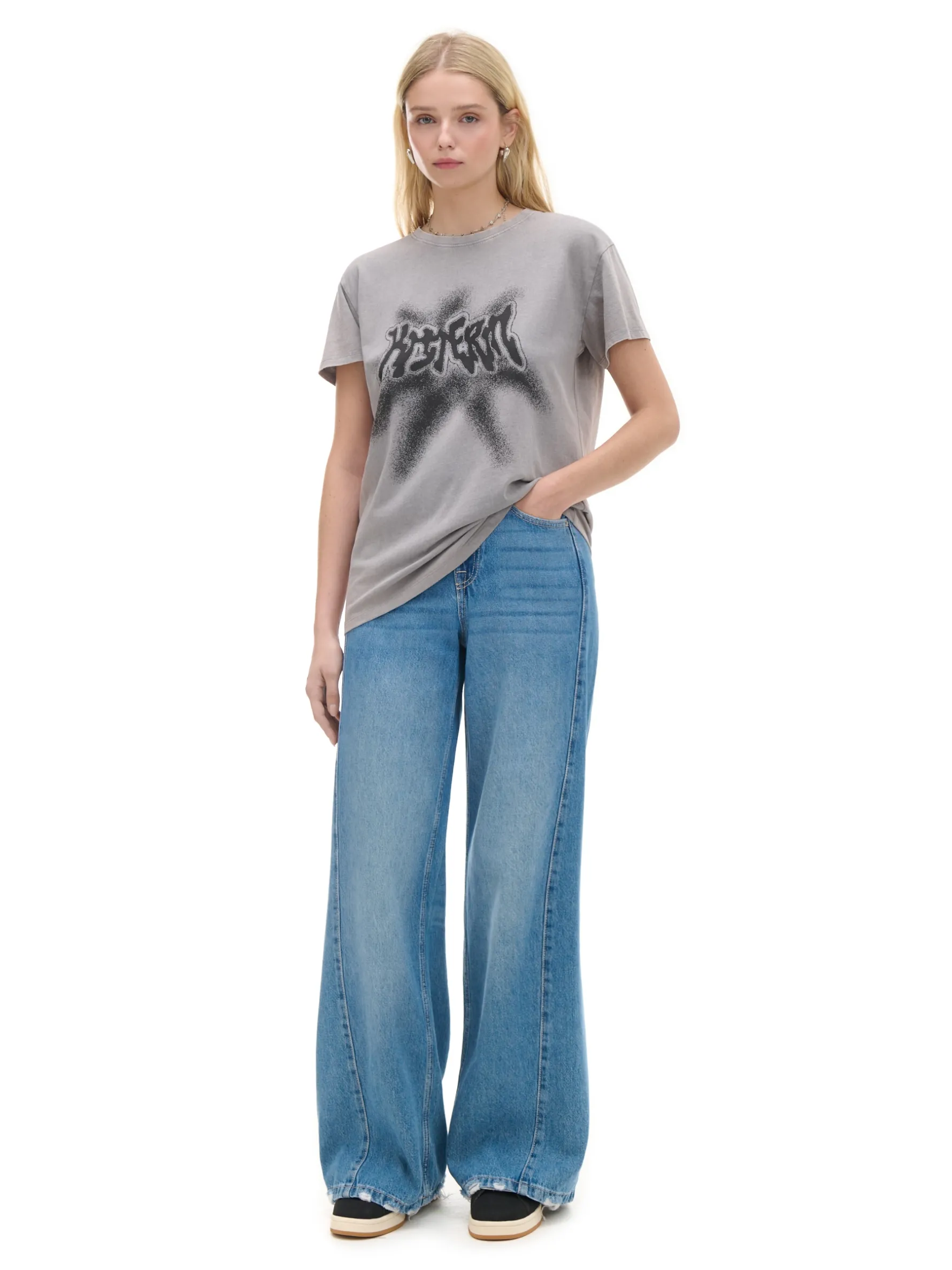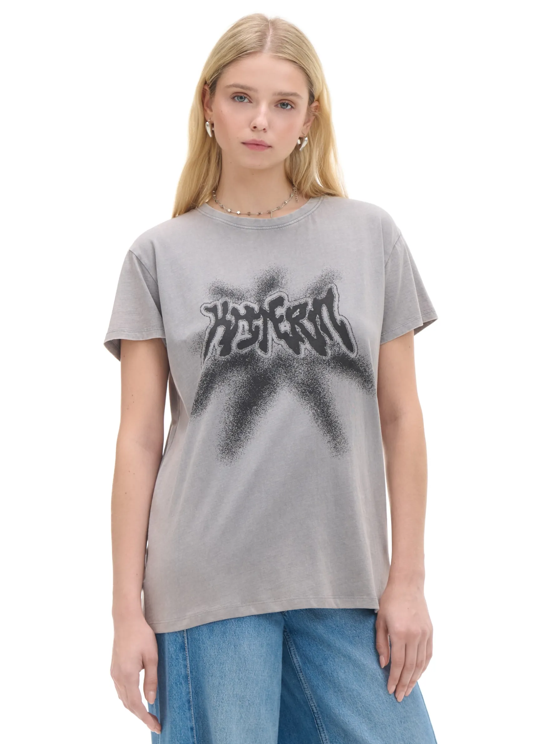 Damski t-shirt oversize, uszyty w 100% z bawełny. obszerny, luźny krój krótkie rękawy z przodu nadruk