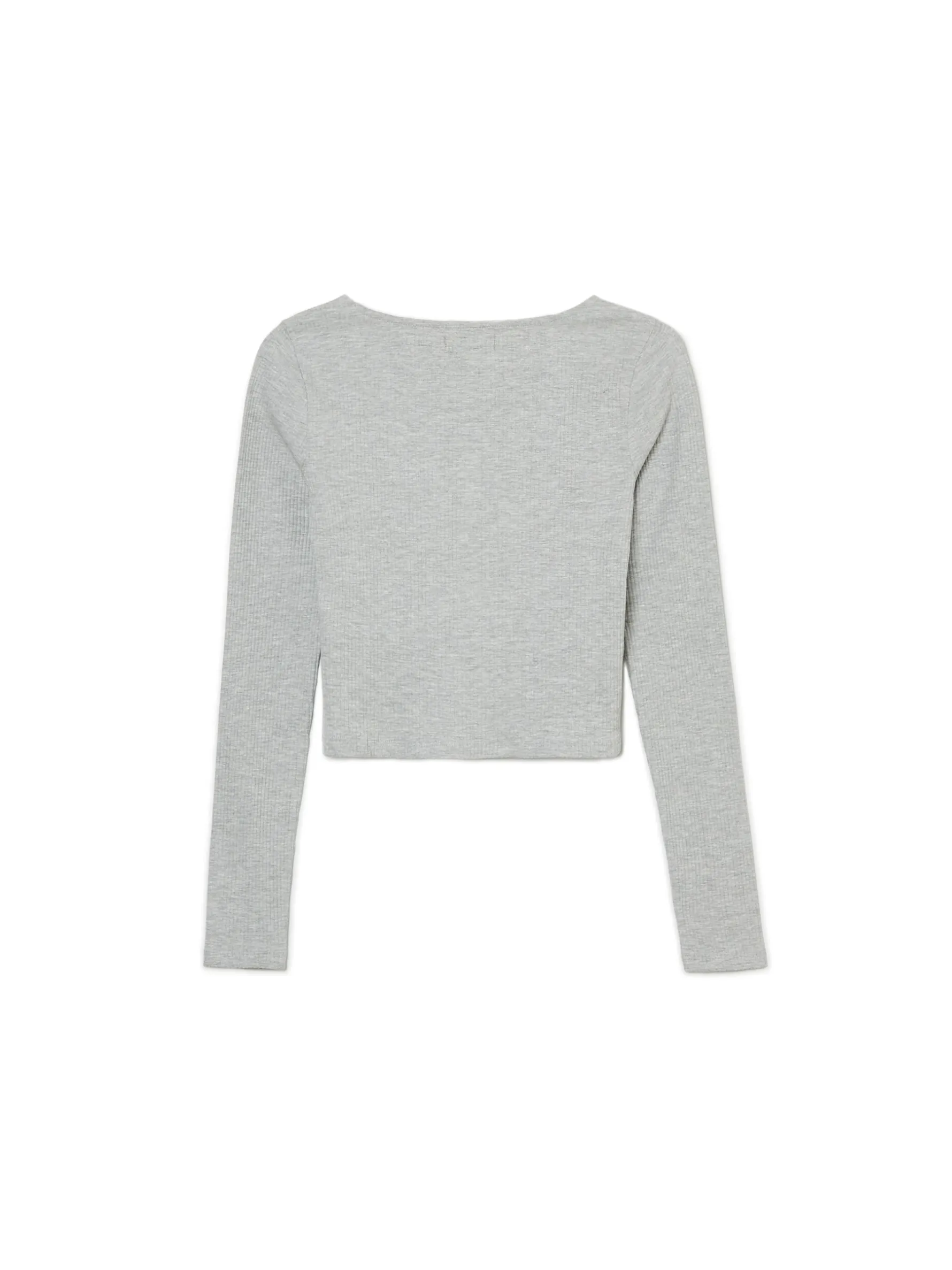 Cropp Koszulki, Topy*Szara prążkowana bluzka na napy jasnyszary