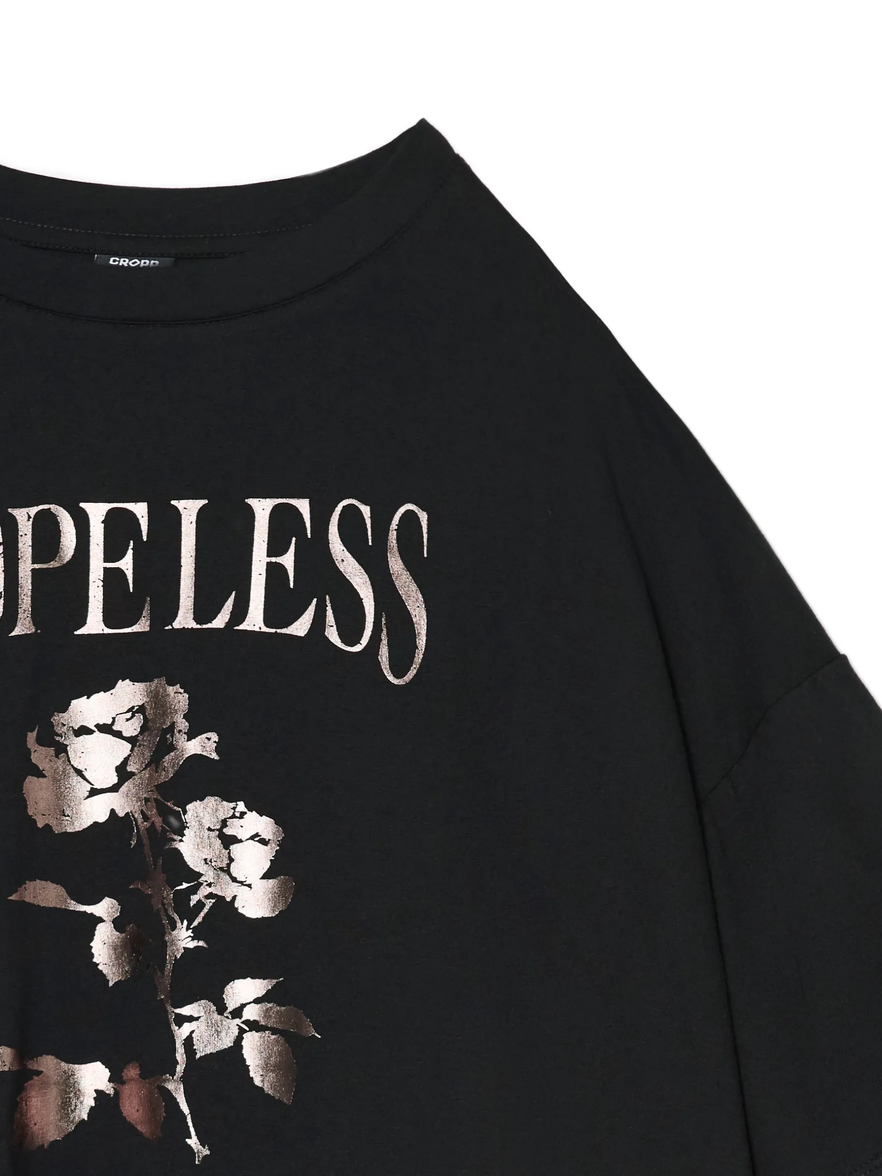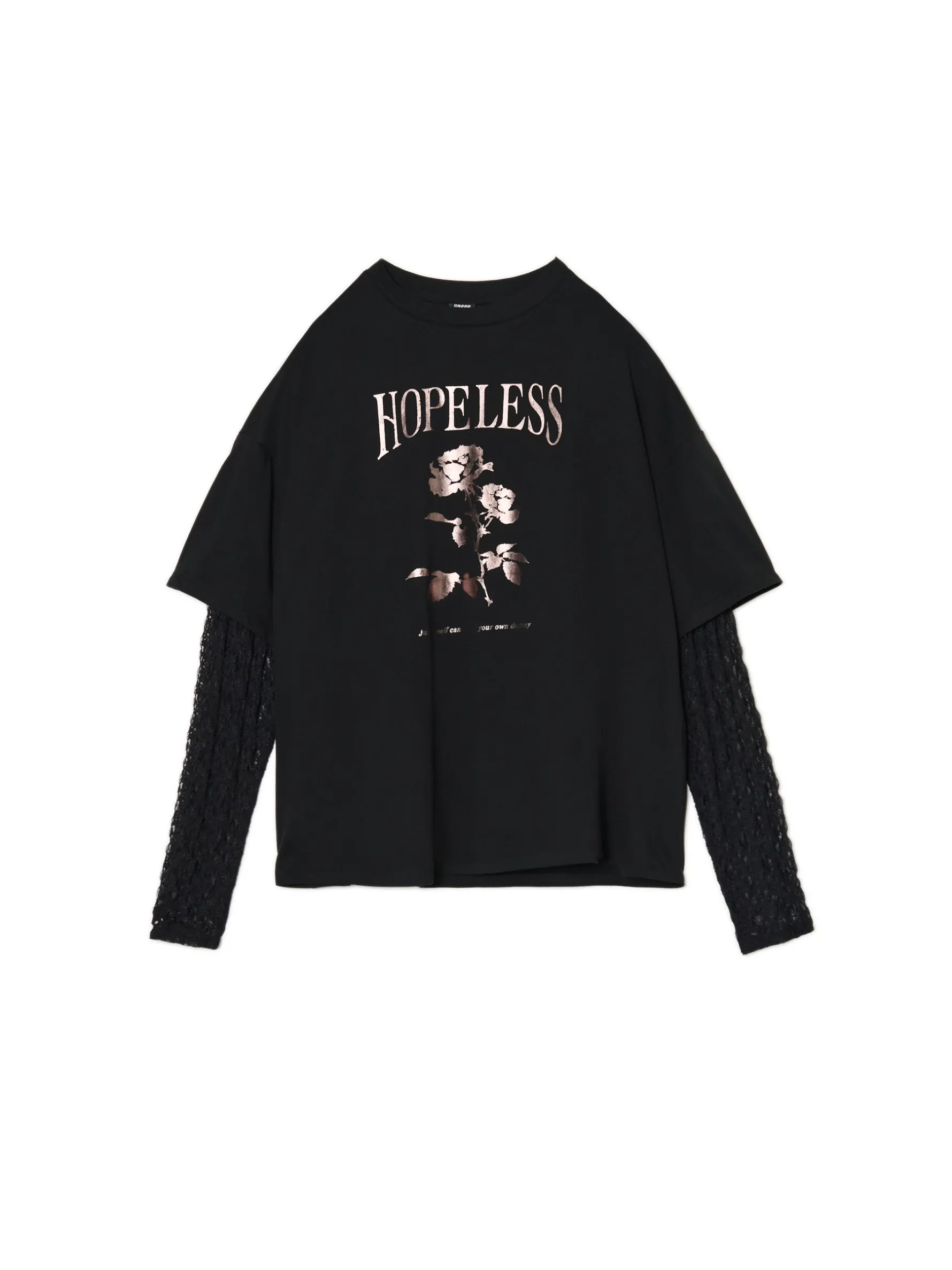 Damska koszulka z ażurowymi, długimi rękawami zakończonymi elastyczną gumką zapobiegającą unoszeniu się materiału. Na przodzie print z roślinnym motywem i nadruki tekstowe. Klasyczny look w nowoczesnym designie, sprawdź! 100% bawełny krój oversize okrągły dekolt z lamówką lekko obniżona linia ramion elastyczne gumy przy mankietach duży nadruk z przodu