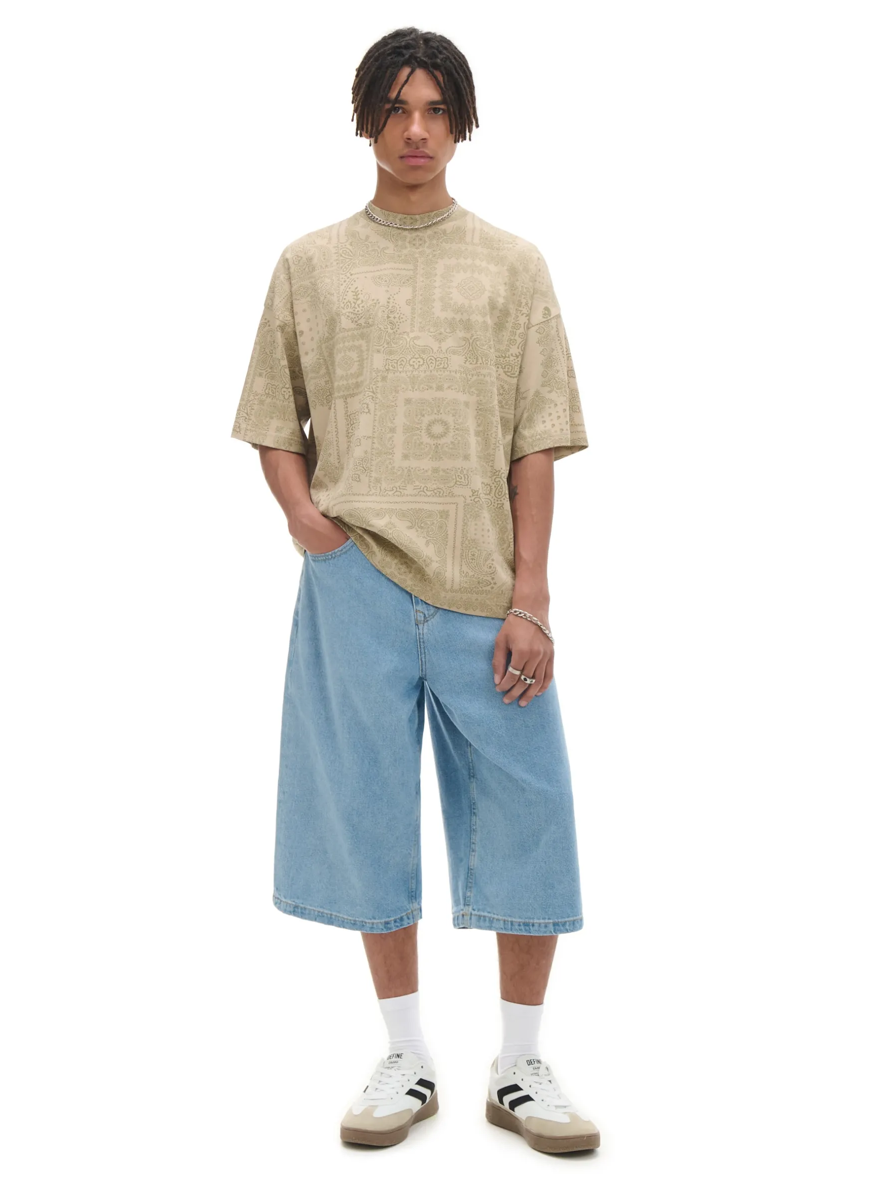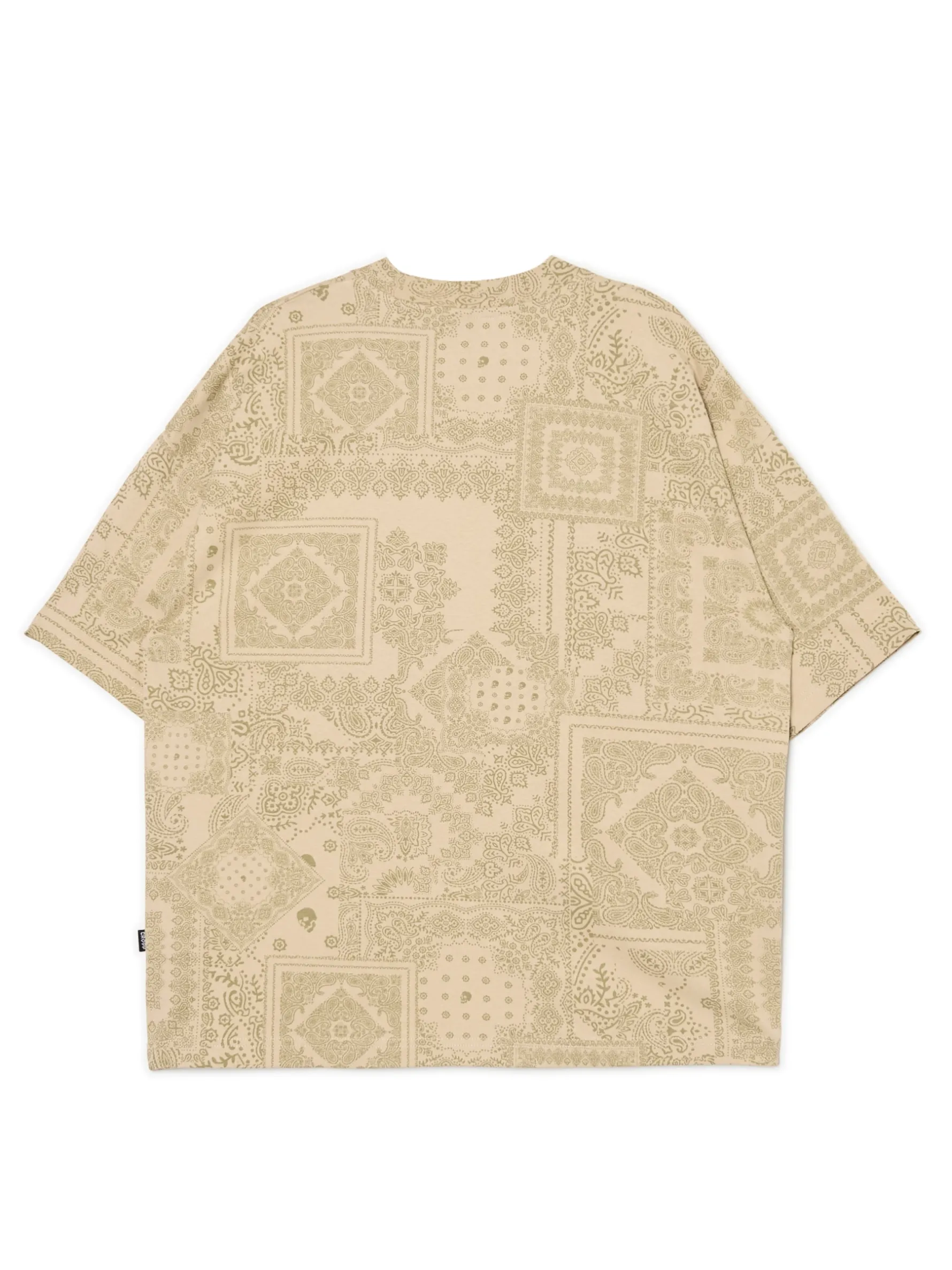 Bawełniany męski t-shirt w kroju comfort z krótkim rękawem. Ozdobą tego modelu jest charakterystyczny nadruk na całym materiale. 100% bawełna wygodny krój comfort krótkie, szerokie rękawy efektowny, malarski nadruk paisley na całości