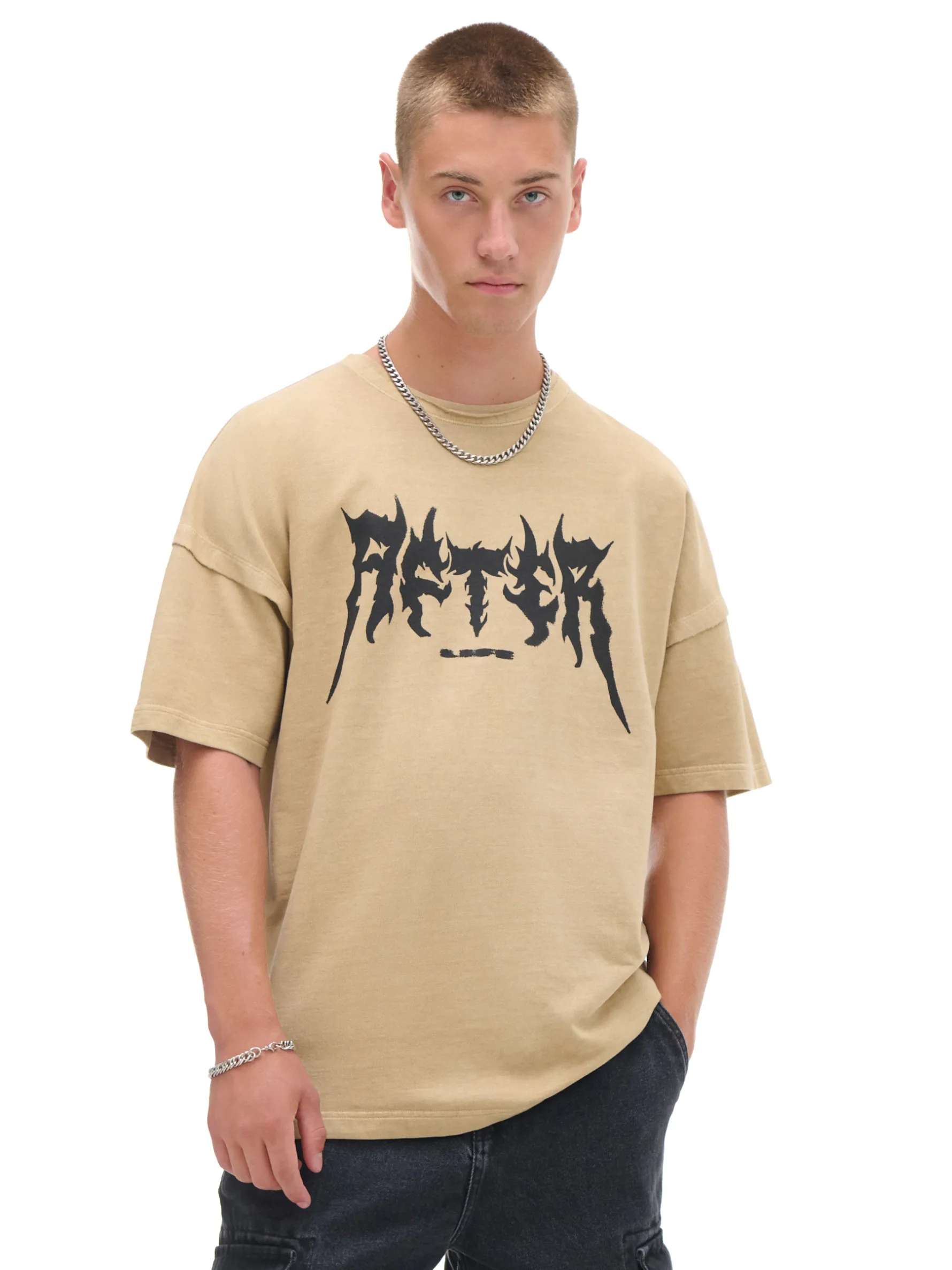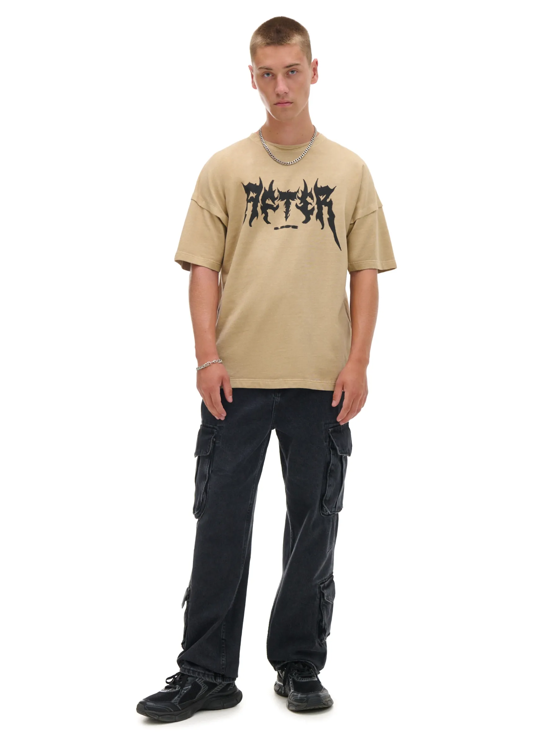 Męski T-shirt, uszyty z bawełny. Podkręć swój vibe i włącz go do swojej garderoby! 100% bawełny swobodny, luźny krój krótkie rękawy napis z przodu Wzrost modela: 185 cm