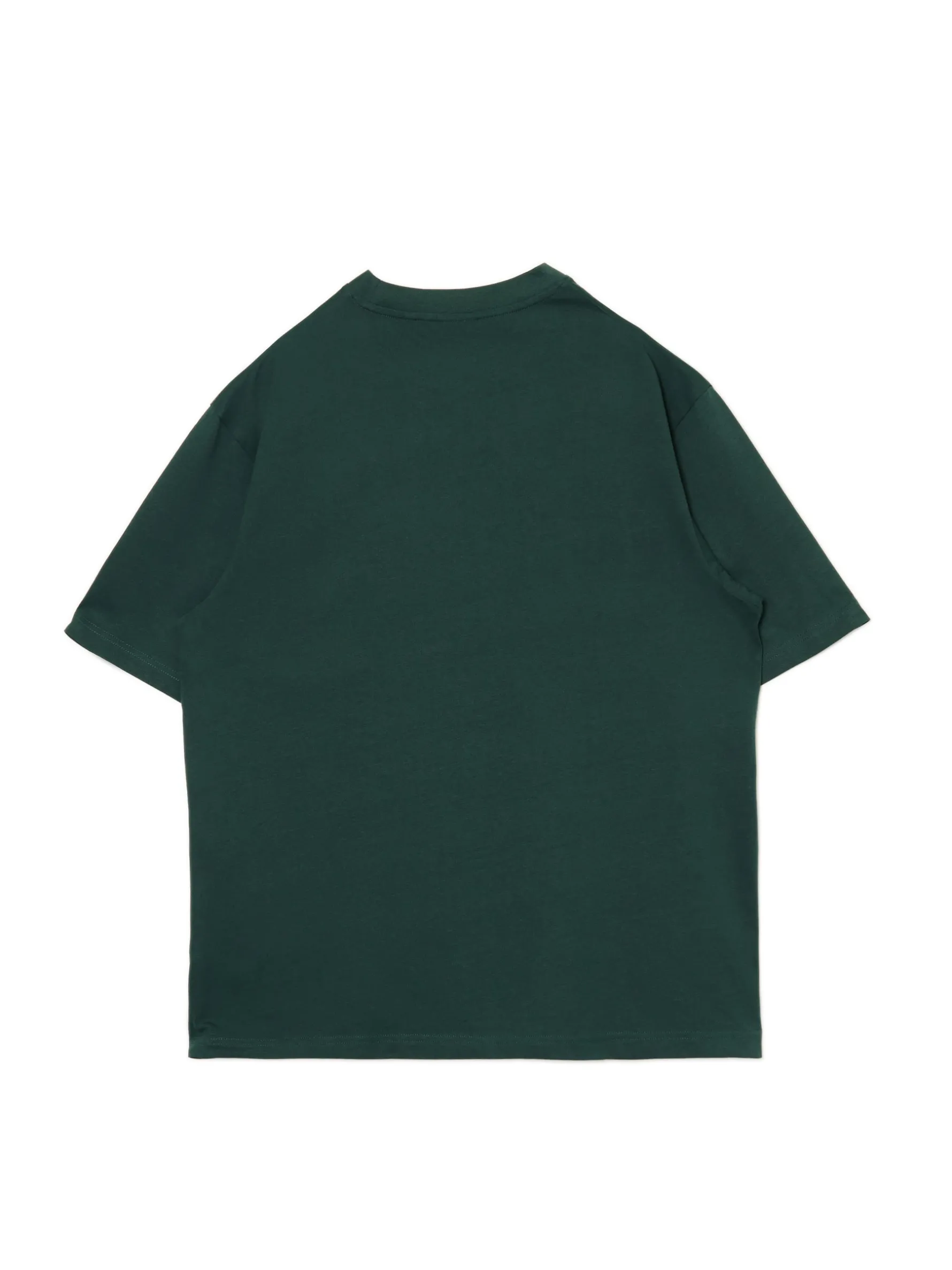 Ciemnozielona koszulka męska typu basic, uszyta z bawełnianej dzianiny. Krój comfort z obniżoną linią ramion, dostępne inne warianty kolorystyczne. 100% bawełny wygodny krój comfort krótkie, swobodne rękawy zabudowany dekolt uniwersalny basicowy styl Model prezentuje produkt w rozmiarze M/L. Wzrost modela: 185 cm