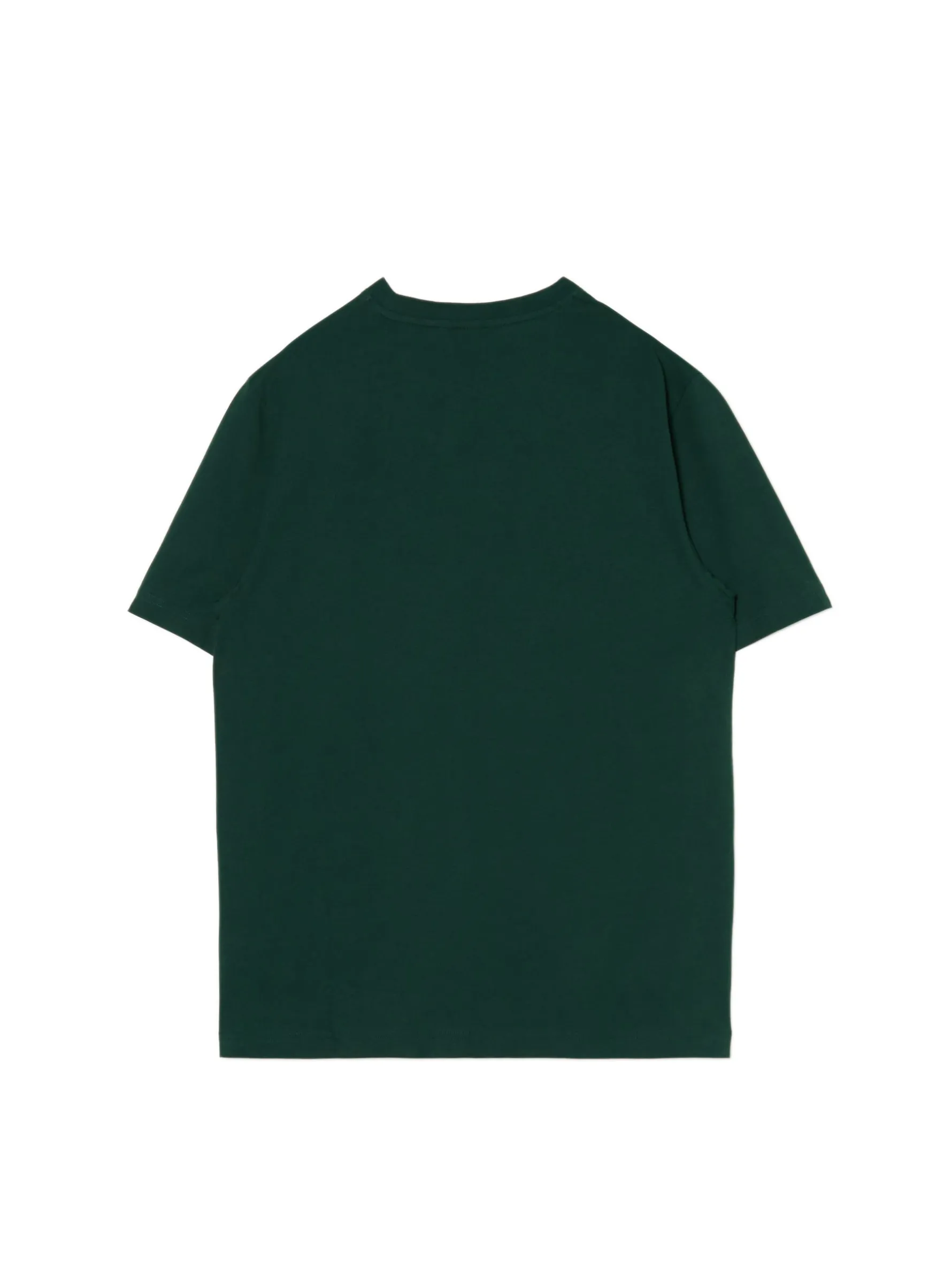 Męska koszulka w kolorze ciemnozielonym, uszyta w 100% z bawełny. regularny krój krótkie rękawy uniwersalny basicowy styl naszywka z napisem Cropp Wzrost modela: 185 cm