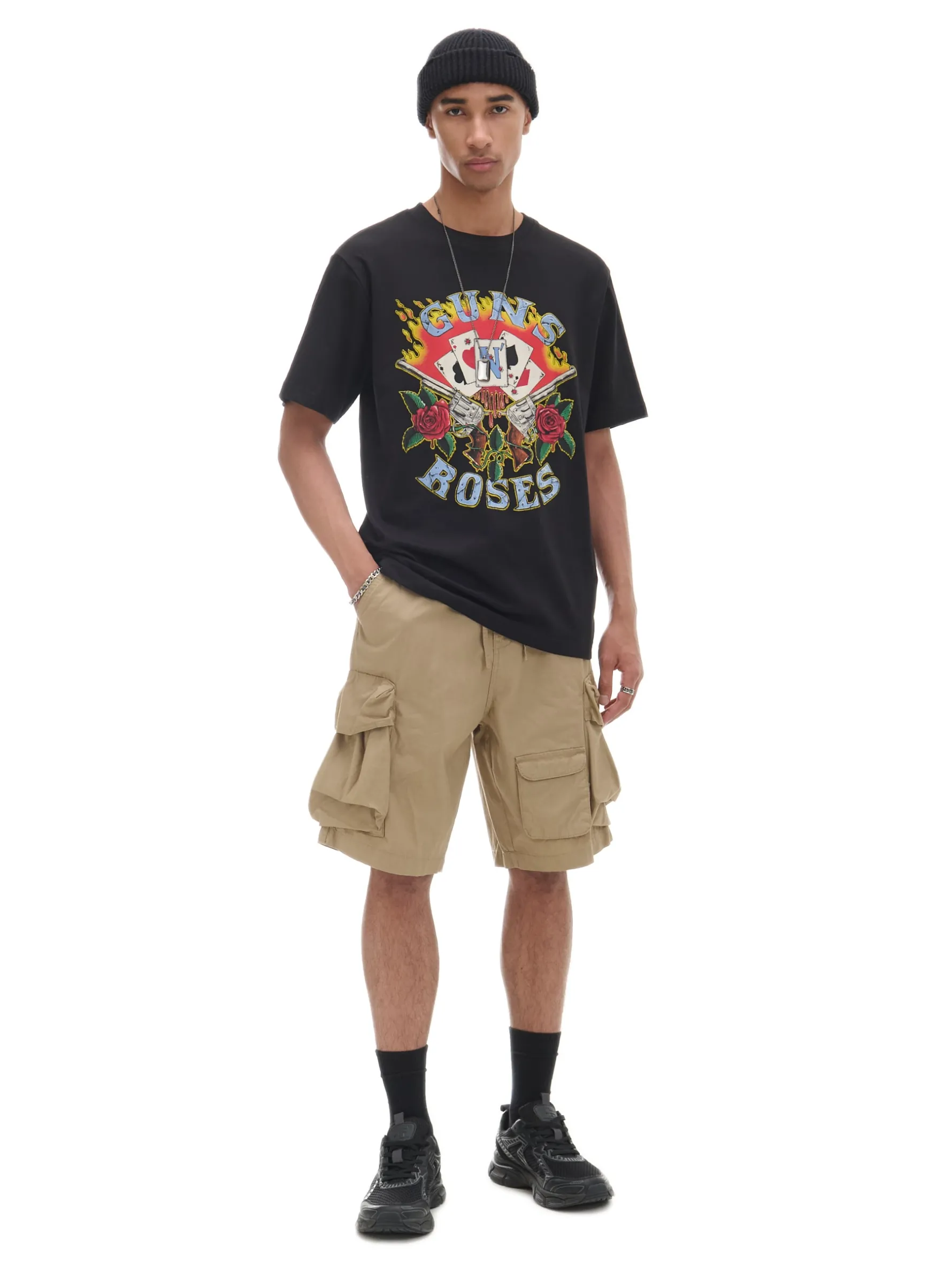 Męski T-shirt w kolorze czarnym, uszyty z bawełny. Po obu stronach licencjonowany nadruk z hard rockowym zespołem Guns N’ Roses. 100% bawełny regularny krój krótkie, swobodne rękawy nadruk z muzycznym motywem Wzrost modela: 185 cm © 2024 Gundam Merchandising LP, Under License to Bravado Merchandising. All Rights Reserved.