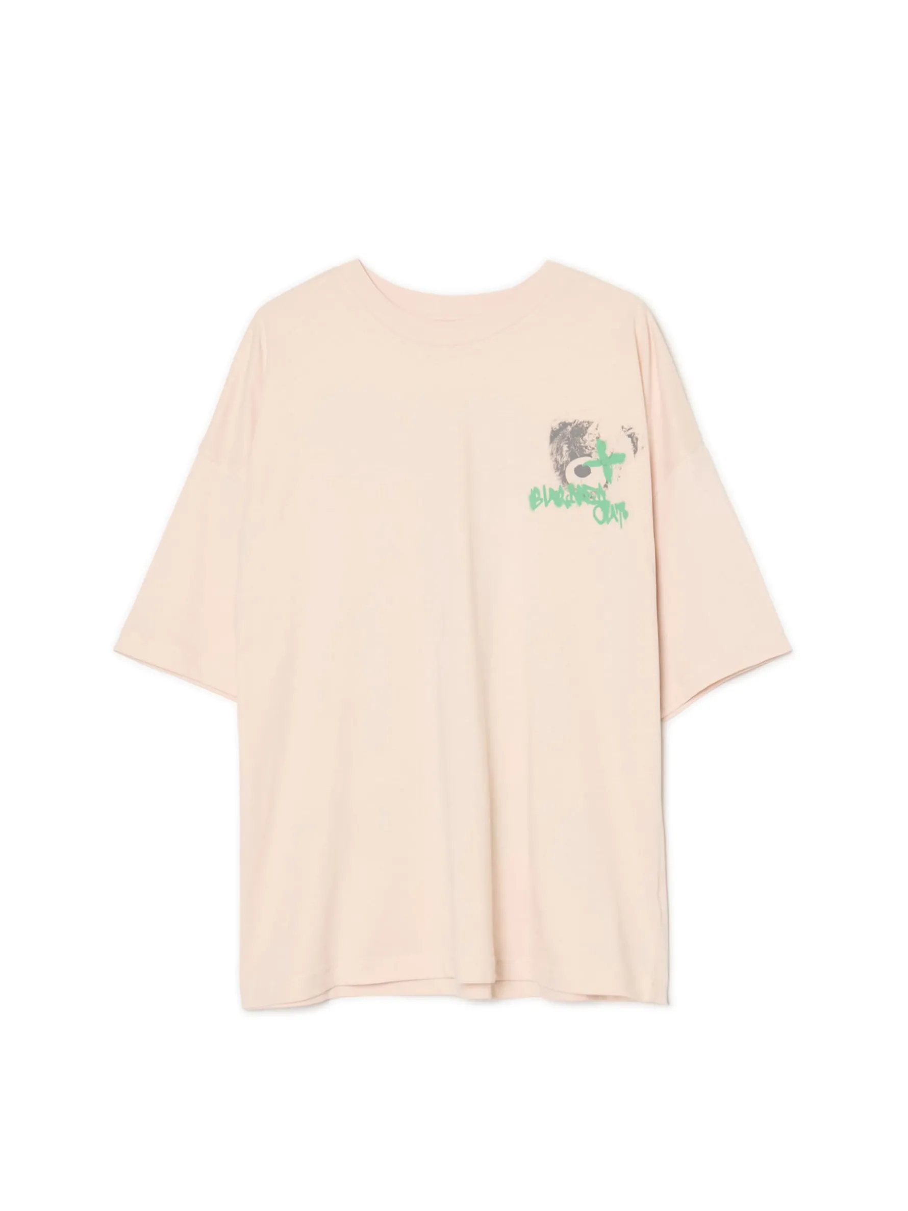 Bawełniany męski T-shirt z krótkim rękawem i nadrukiem po obu stronach z motywem pluszowego misia. 100% bawełny obszerny krój boxy krótkie, szerokie rękawy mały nadruk na piersi, duży nadruk na plecach oryginalny print