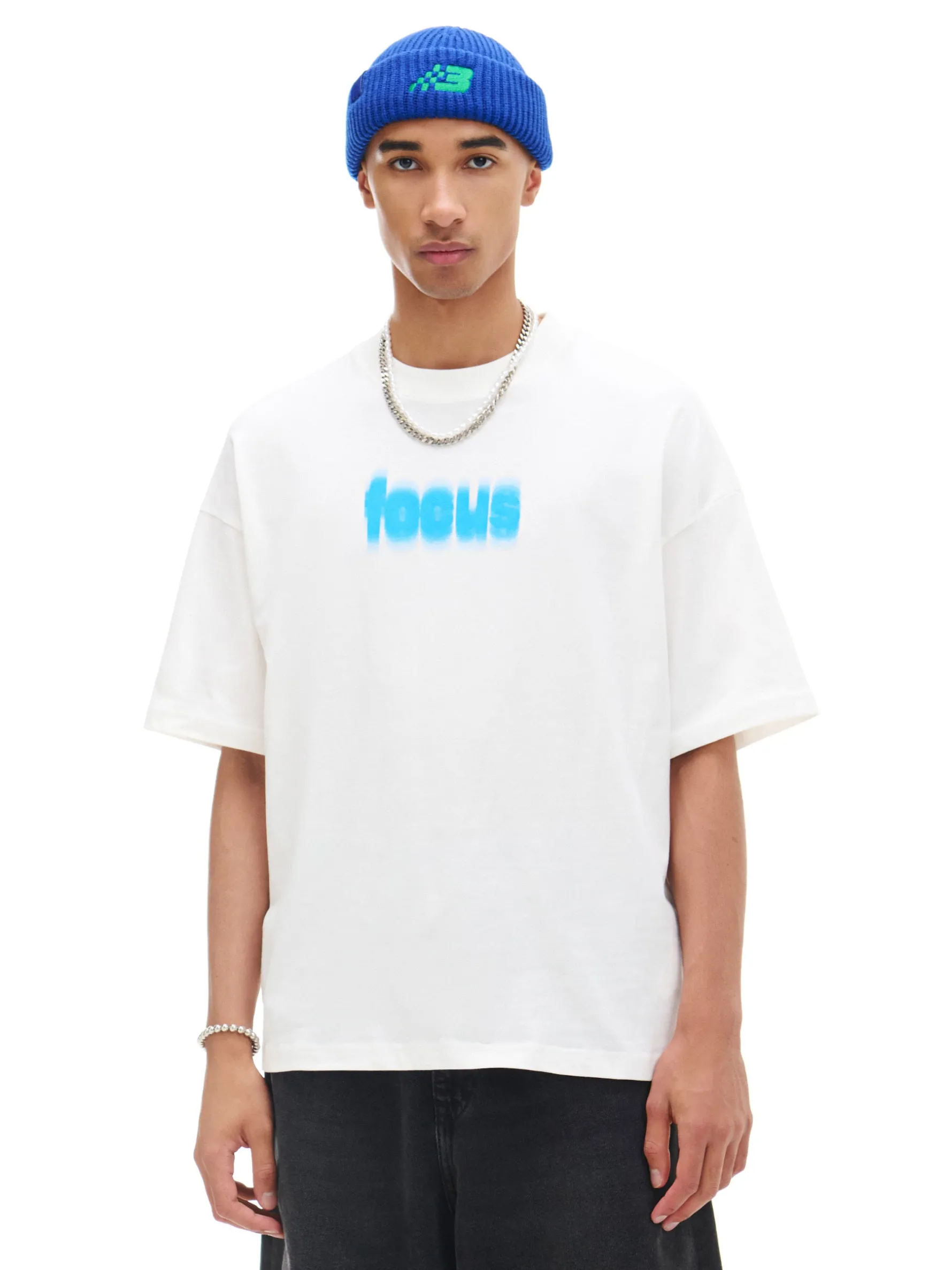 Męska koszulka o bardzo wygodnym kroju typu boxy. Uszyta w 100% z bawełny! półokrągły dekolt z lamówką krótkie, szerokie rękawy z przodu niewielki napis FOCUS z efektem rozmycia Wzrost modela: 185 cm