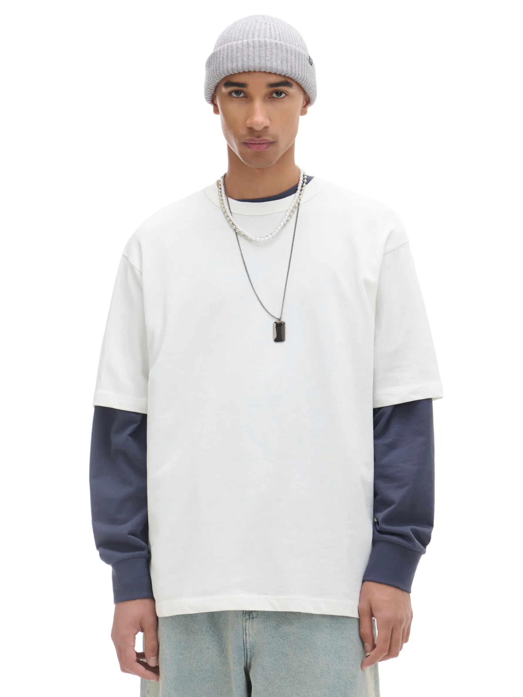 Męska koszulka o kroju basic z krótkim rękawem, uszyta z gładkiej, bawełnianej dzianiny. 100% bawełny koszulka typu basic luźny krój z obniżoną linią ramion krótkie, szerokie rękawy Wzrost modela: 185 cm