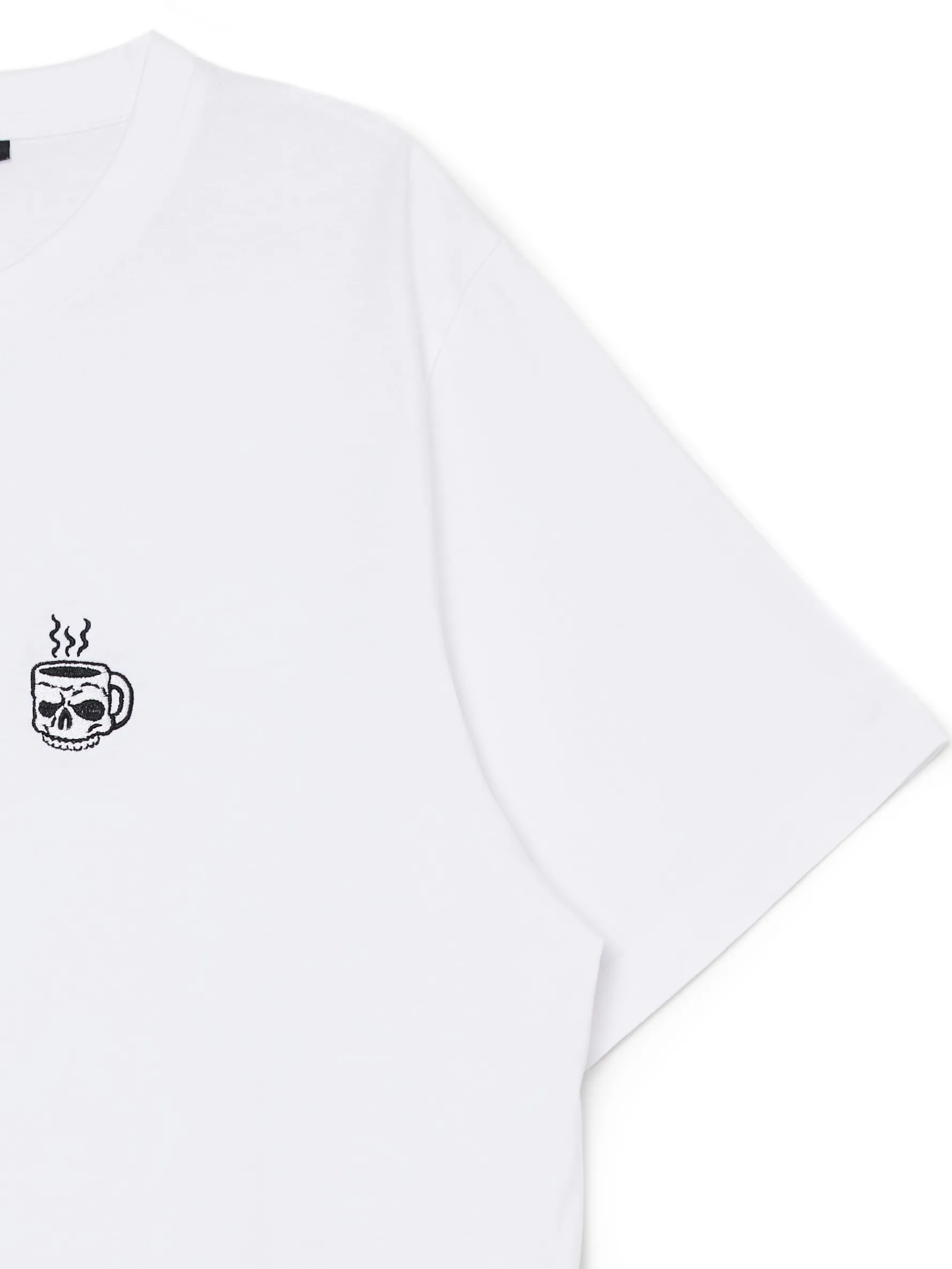 Biała koszulka męska o regularnym kroju, uszyta z bawełnianej dzianiny. Z przodu niewielk haft.