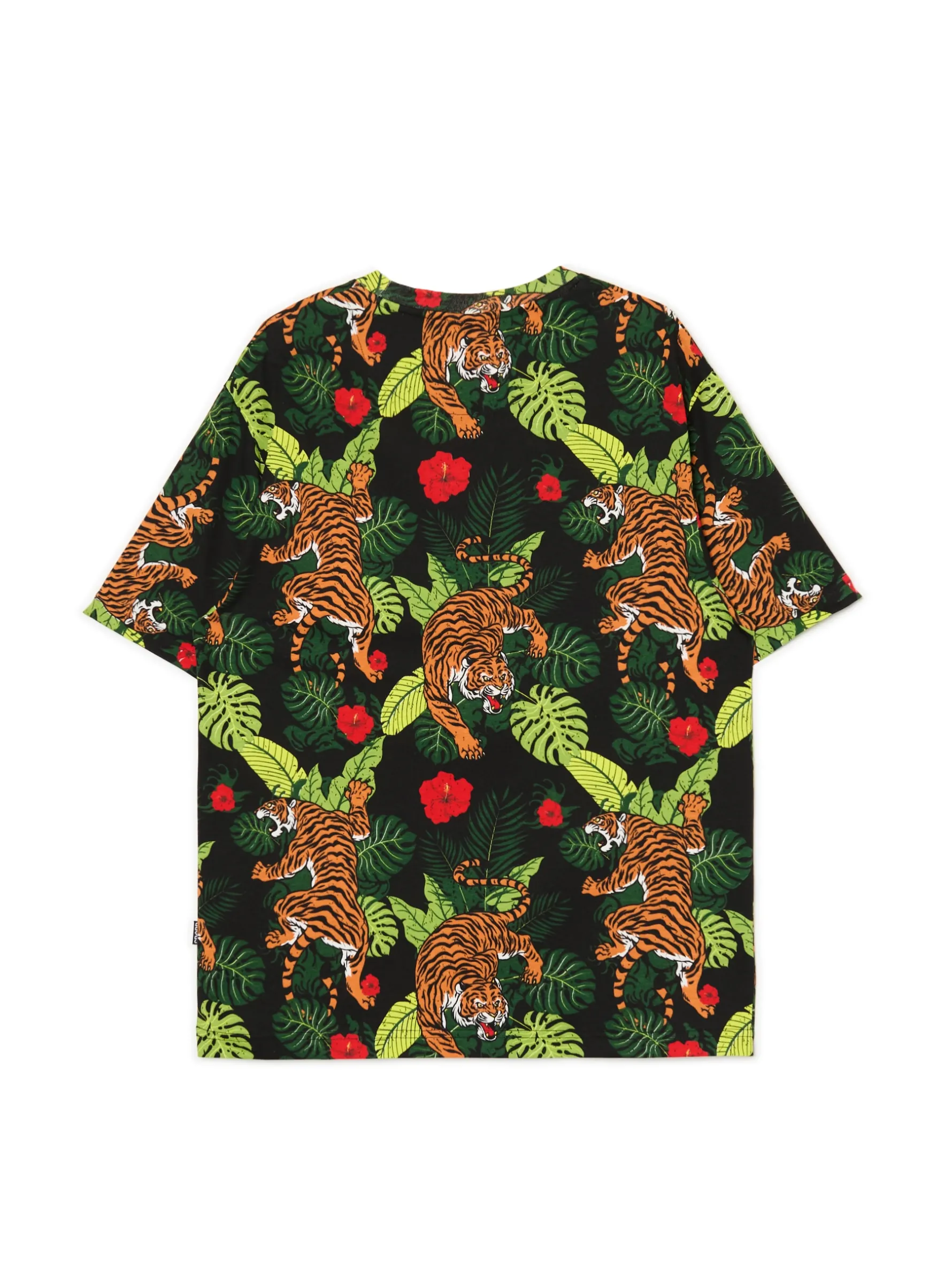 Męska koszulka z krótkim rękawem uszyta z bawełny z roślinnym i zwierzęcym nadrukiem na całym materiale. 100% bawełny regularny krój krótkie, swobodne rękawy nadruk z motywem roślinnym na całej powierzchni zwierzęcy wzór