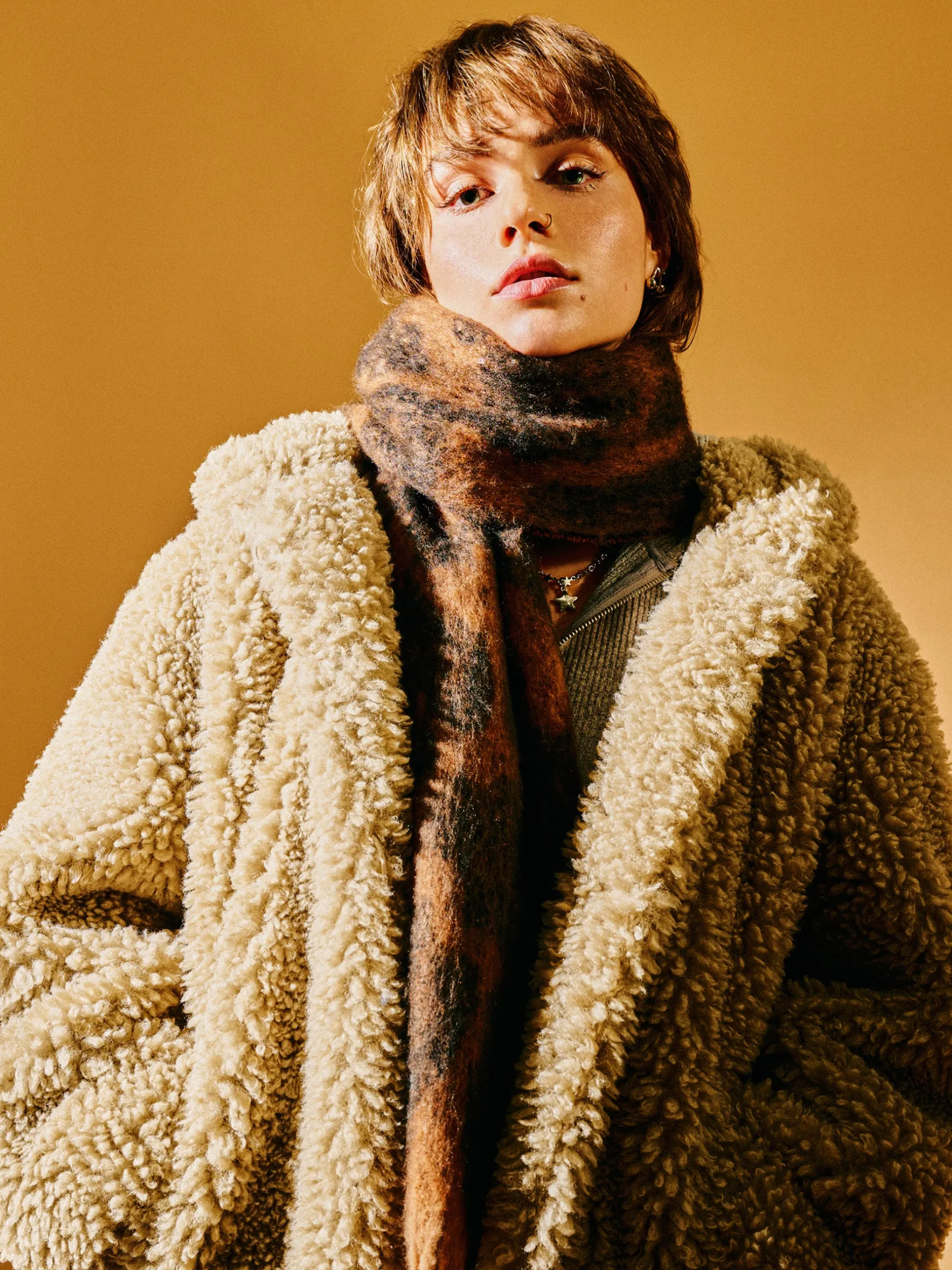 Jak przytulnie i ciepło, to tylko z otulającym płaszczem z kapturem, uszytym ze sztucznego baranka. Wyposażony w duży kaptur, praktyczne kieszenie i zapięcie na guziki. Ten outerwear fituje z różnymi stylizacjami, potwierdzone info! wykończenie na podszyciu ze sztucznego baranka wewnątrz lekkie ocieplenie i podszewka jednorzędowe zapięcie na guziki miękki kaptur długie, proste rękawy otwarte kieszenie po bokach
